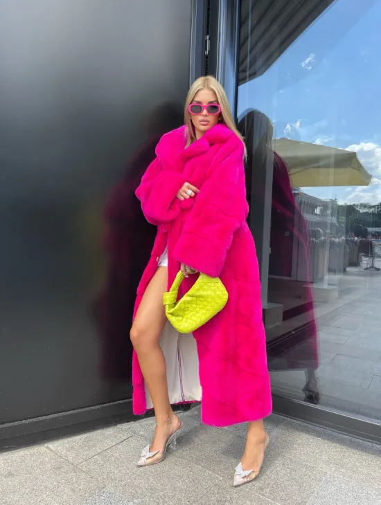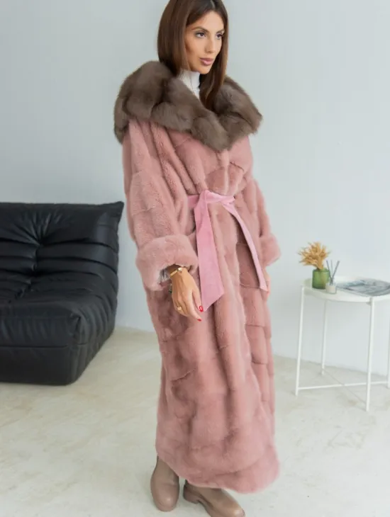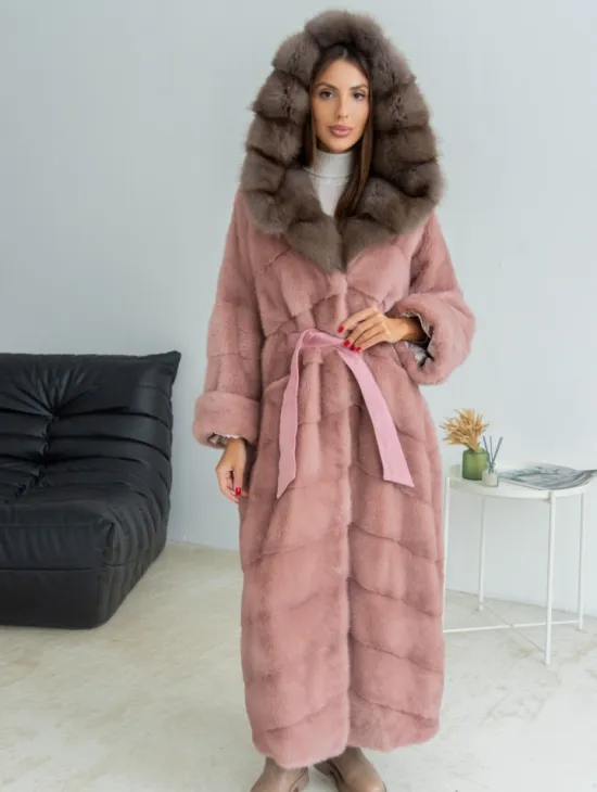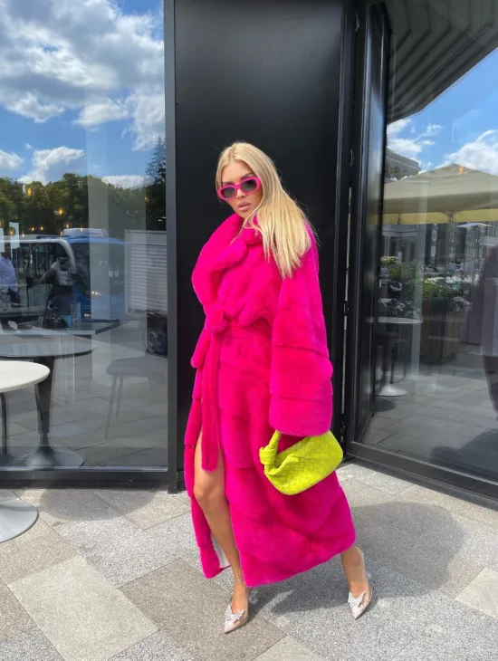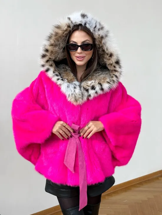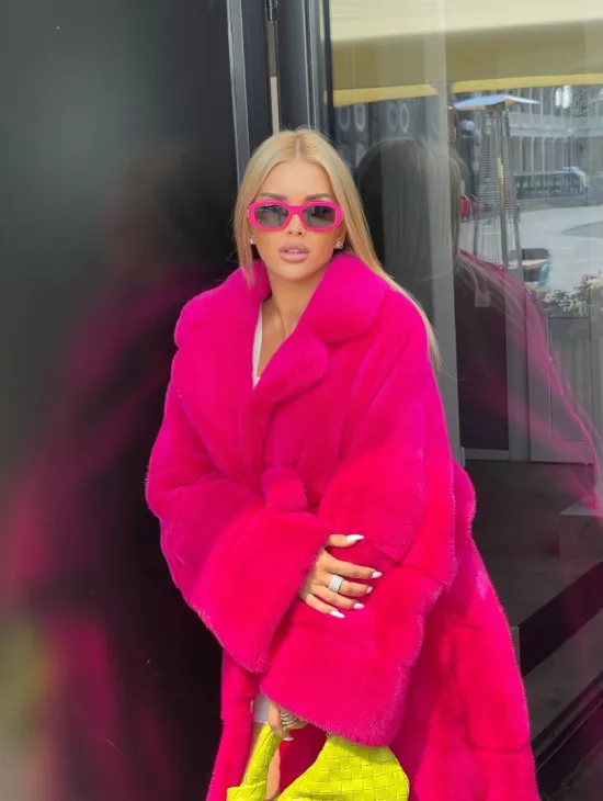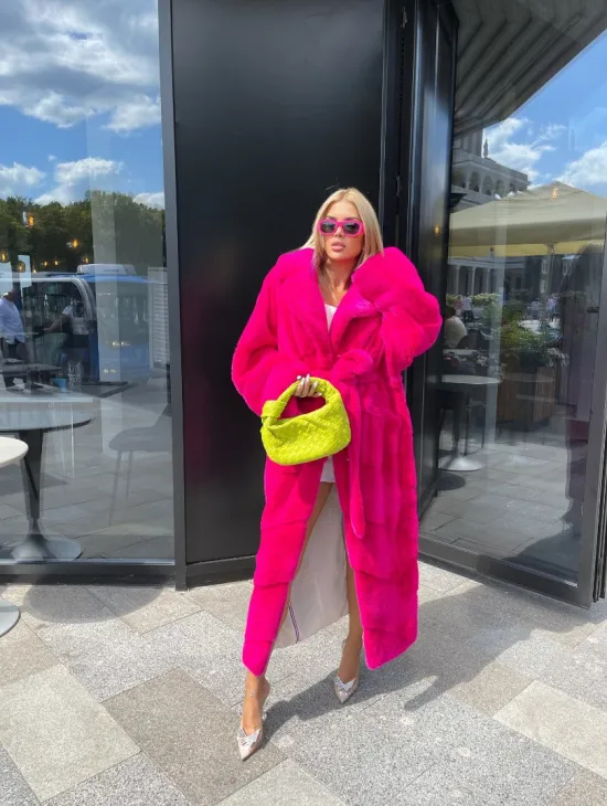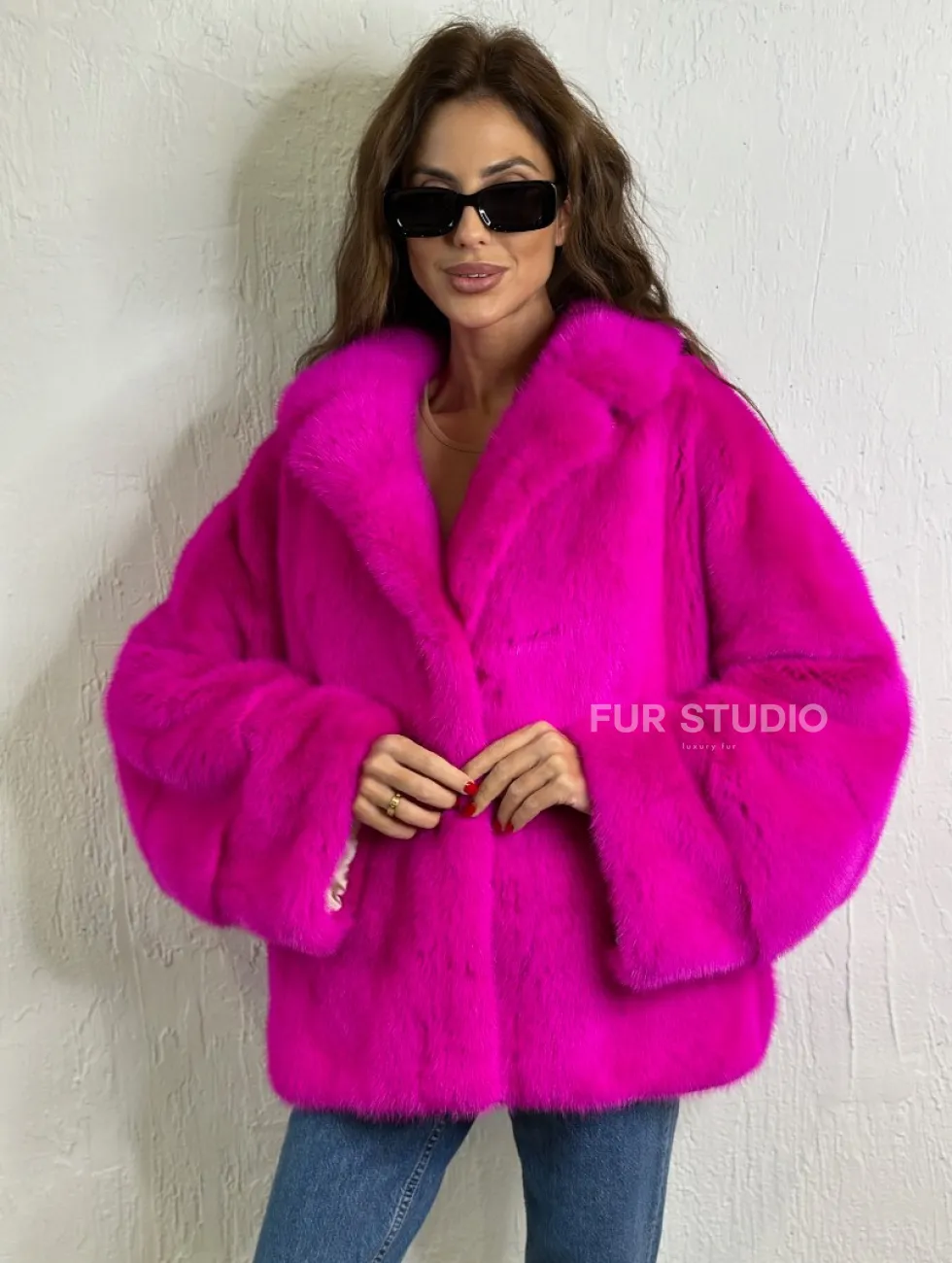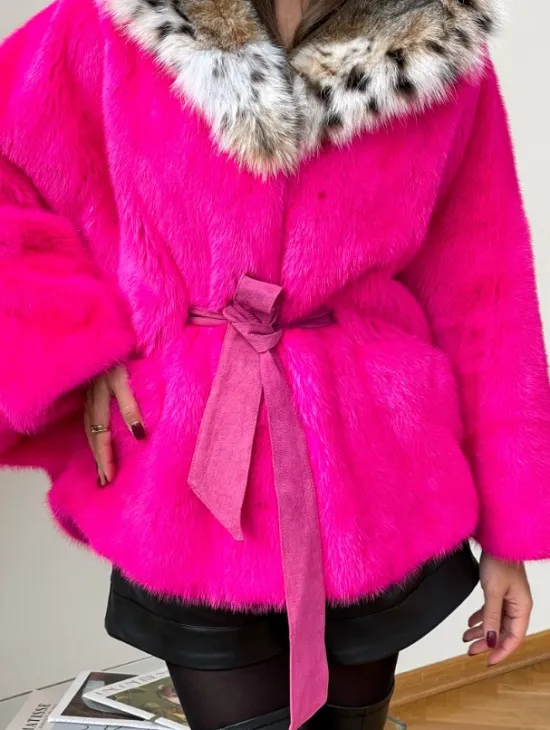 Мех данной шубы аукционная норка , цвет розовый. Предлагается в размерах от 40 до 50. Длина модели 60-65 см, что выгодно подчеркивает фигуру девушек. Эта модель идеально подойдет для девушек и женщин, предпочитающих роскошные натуральные меха.