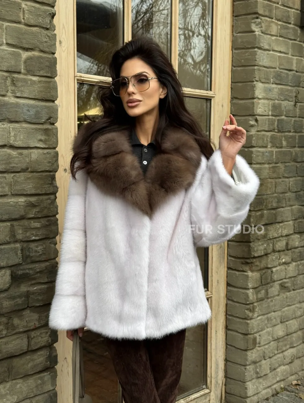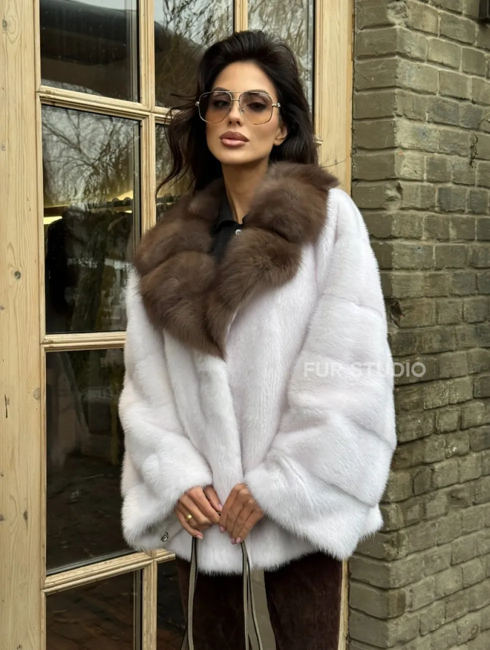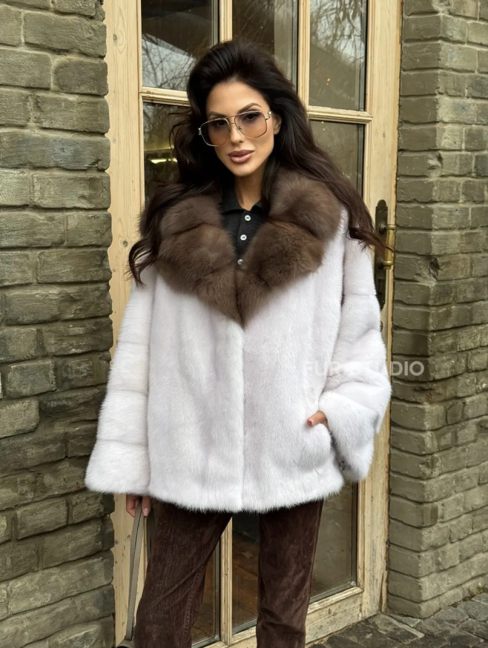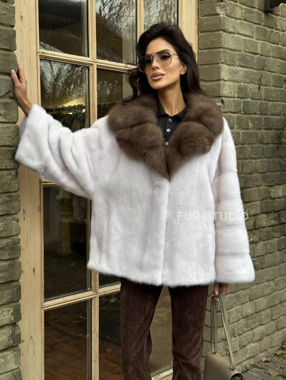 Короткая белая шубка с воротником из натуральной куницы доступна для покупки в нашем шоуруме Furs Studio в Москве. У нас так же есть доставка во все города России. Добавьте немного роскоши в свой гардероб с этой шубой, которая будет служить вам многие годы.