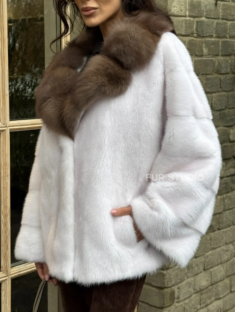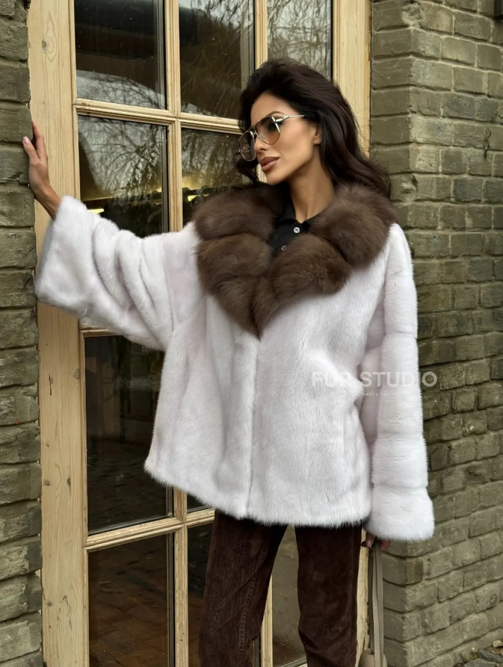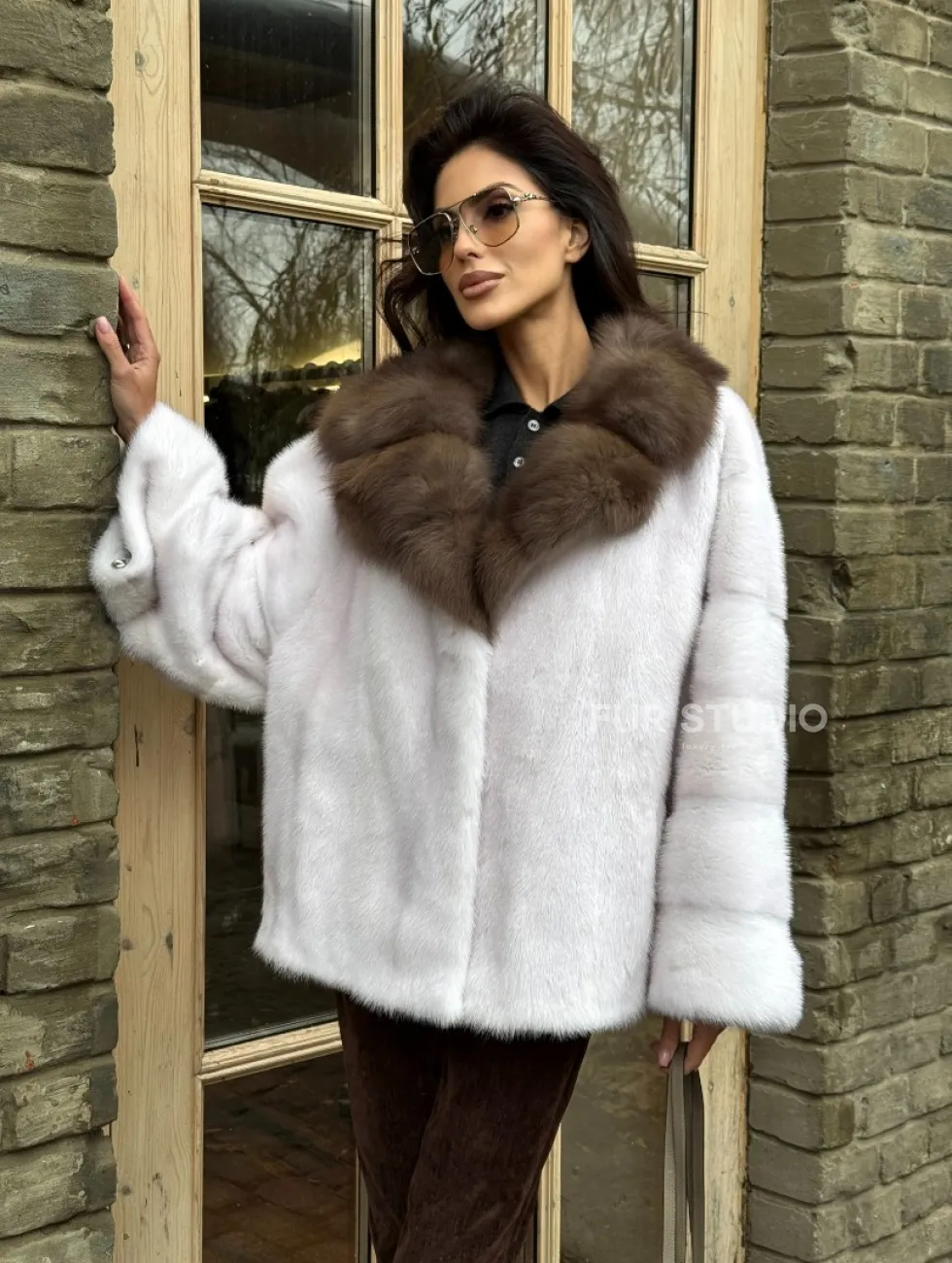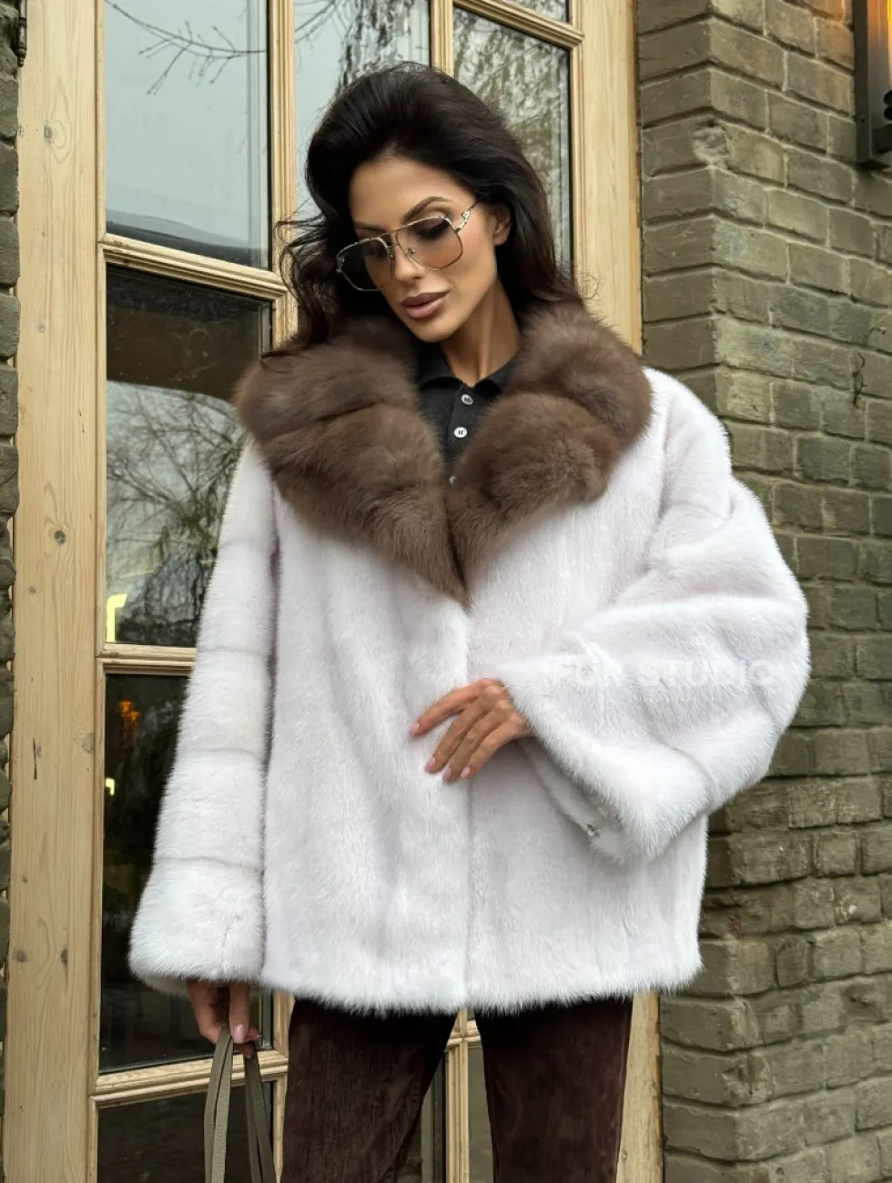 Короткая белая шубка с воротником из натуральной куницы доступна для покупки в нашем шоуруме Furs Studio в Москве. У нас так же есть доставка во все города России. Добавьте немного роскоши в свой гардероб с этой шубой, которая будет служить вам многие годы.