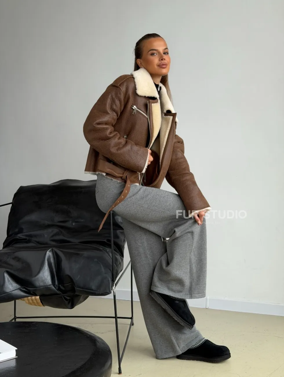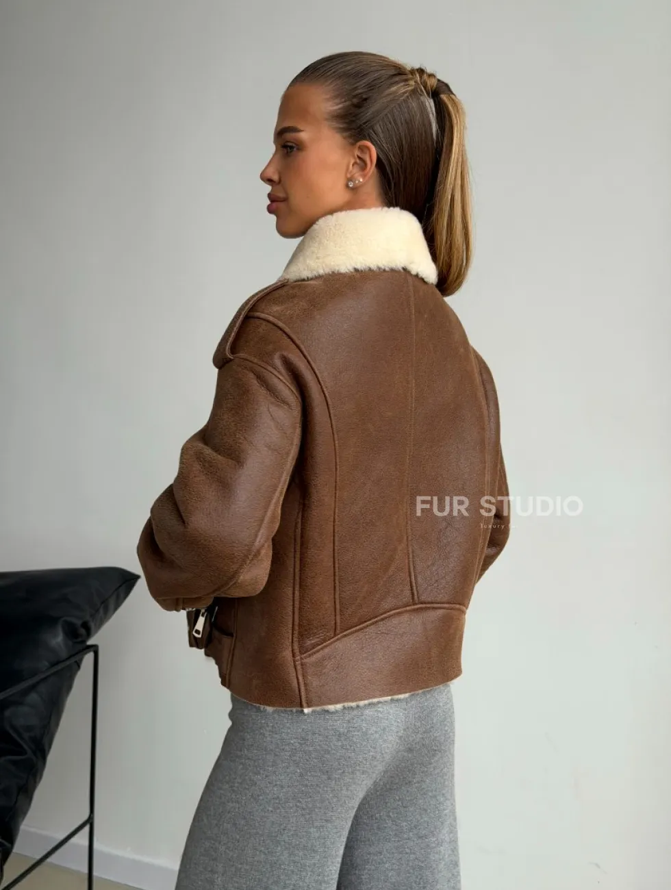 Короткая косуха-дубленка из овчины. Модель предлагается в размерах от 42 до 48. Оптимальная длина моделей 50-55 см подчеркивает линии вашей фигуры. Эта дубленка станет неотъемлемой частью гардероба для тех, кто предпочитает роскошь и утонченность натуральной кожи.
