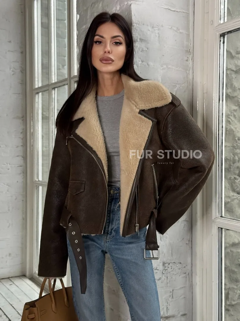 Короткая молодежная косуха-дублёнка из натуральной овчины доступна для покупки в нашем шоуруме Furs Studio в Москве, а также предлагается удобная доставка во все города России. Обогатите свой гардероб этой дубленкой, которая прослужит вам многие годы, добавив немного роскоши в ваш повседневный образ.