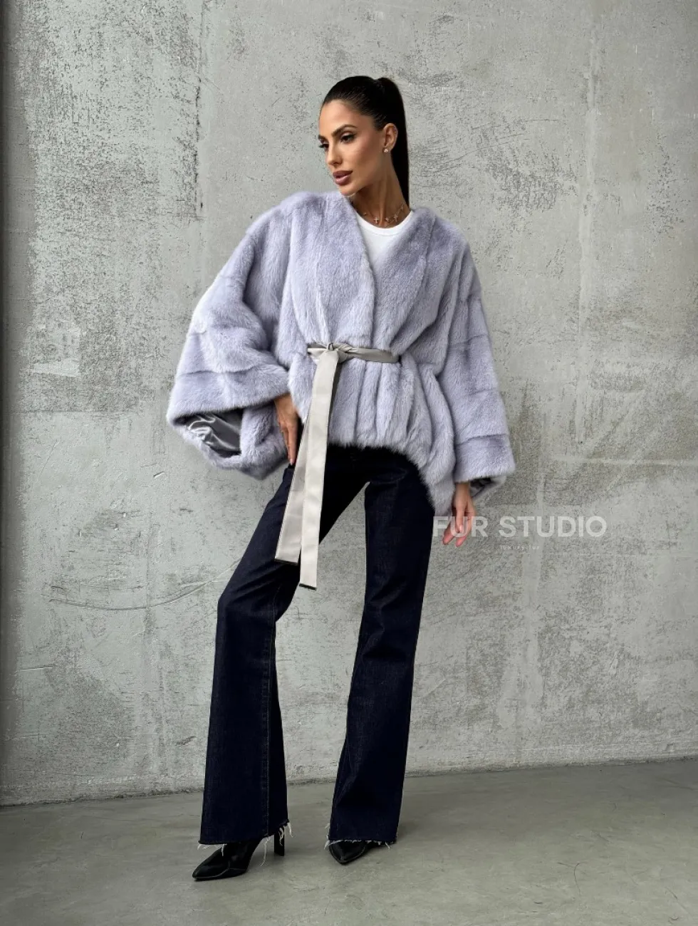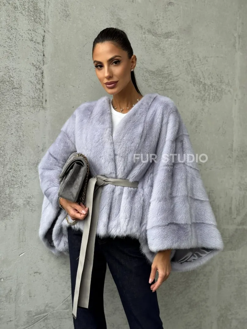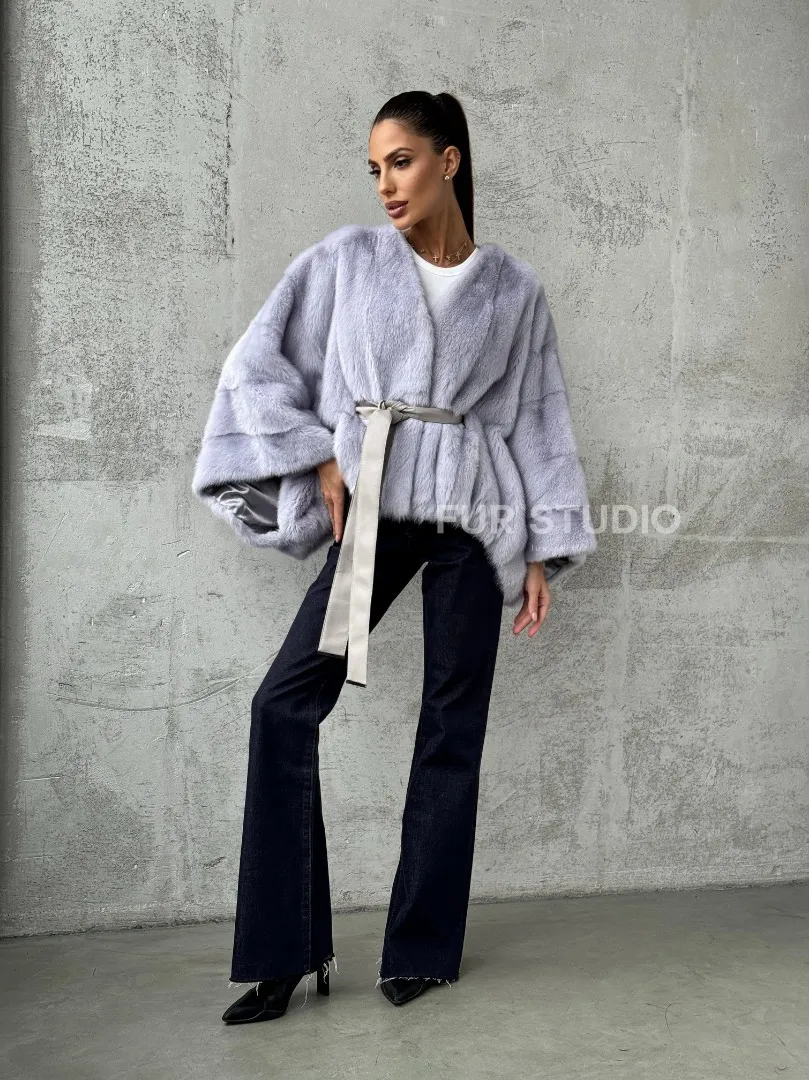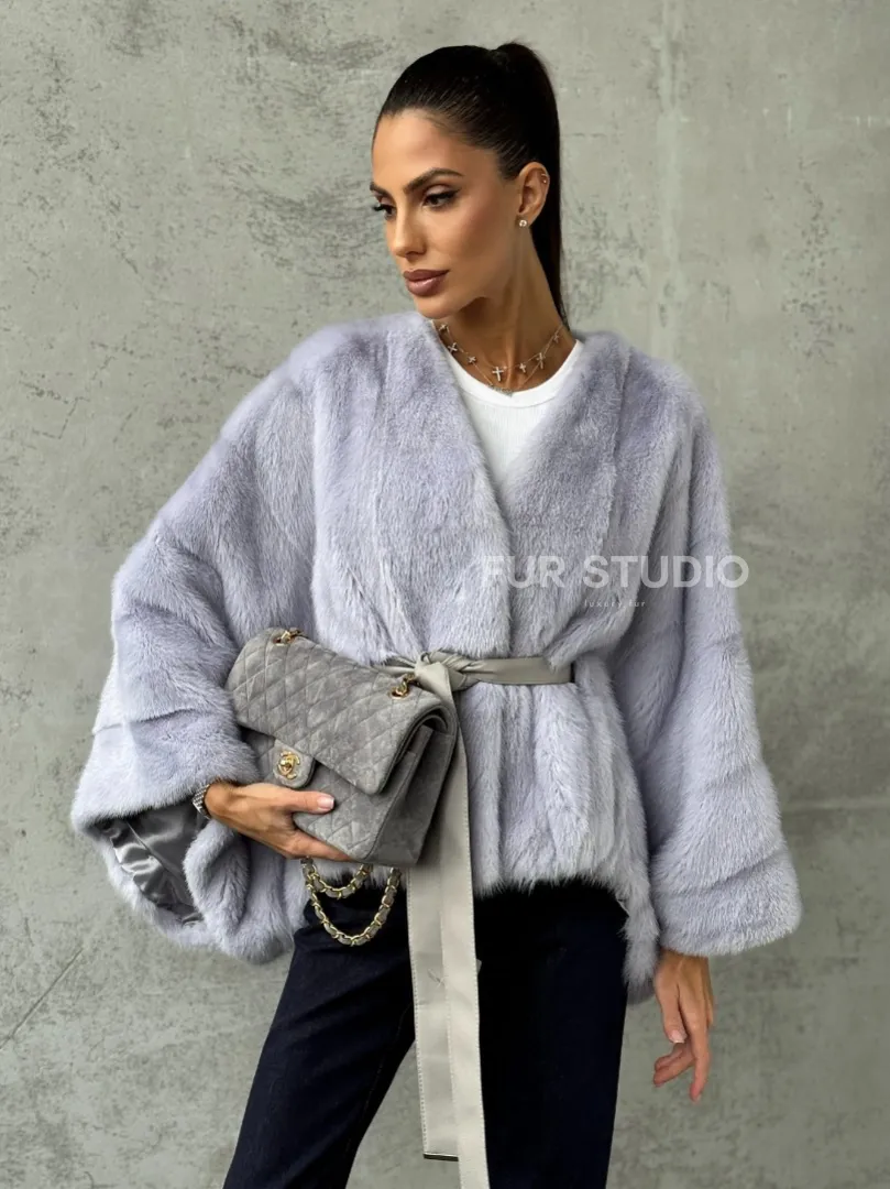 Мех данной шубы аукционная норка, цвет голубой. Предлагается в размерах от 40 до 58 (oversize). Длина модели 50-55 см, что выгодно подчеркивает фигуру девушек. Эта модель идеально подойдет для девушек и женщин, предпочитающих роскошные натуральные меха.