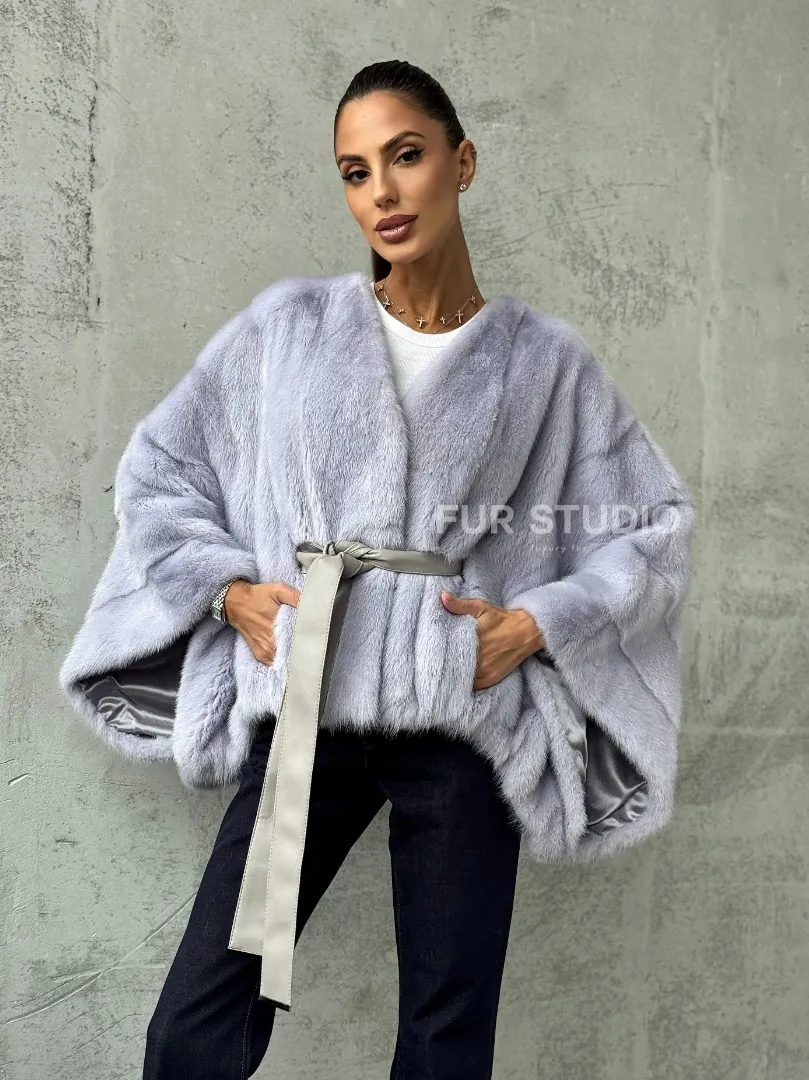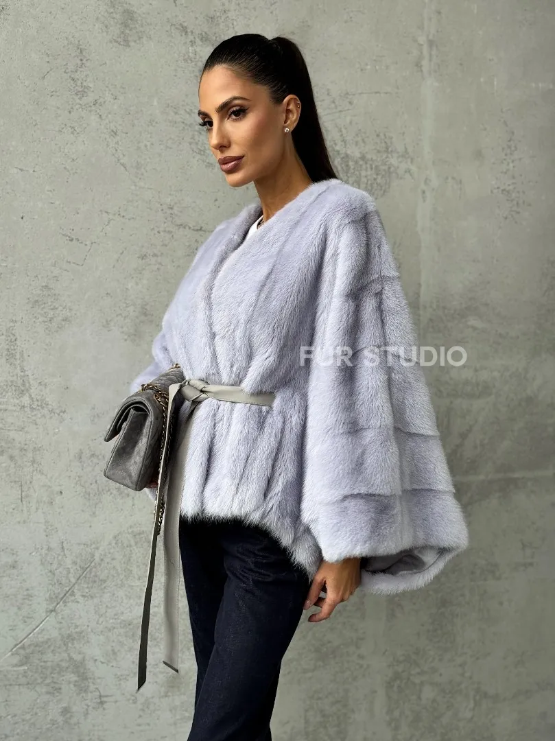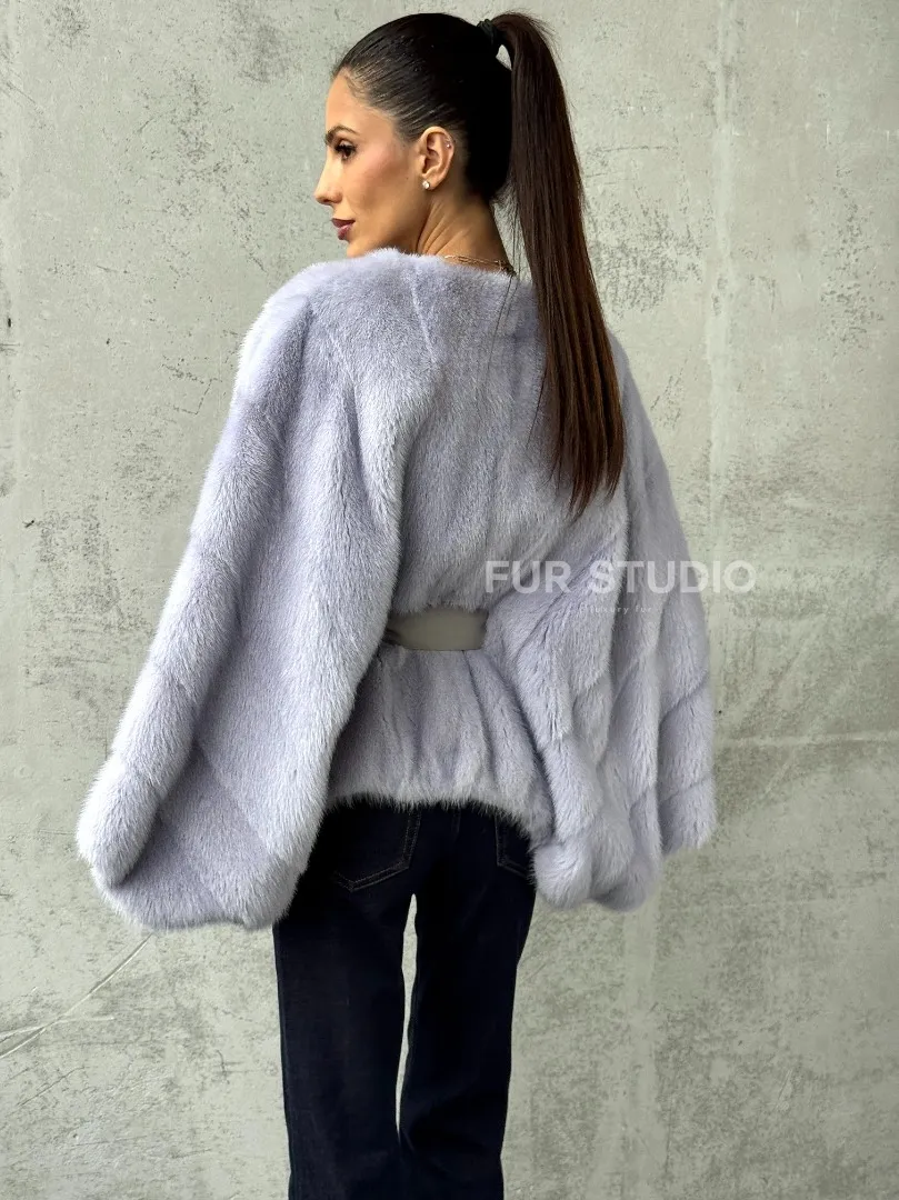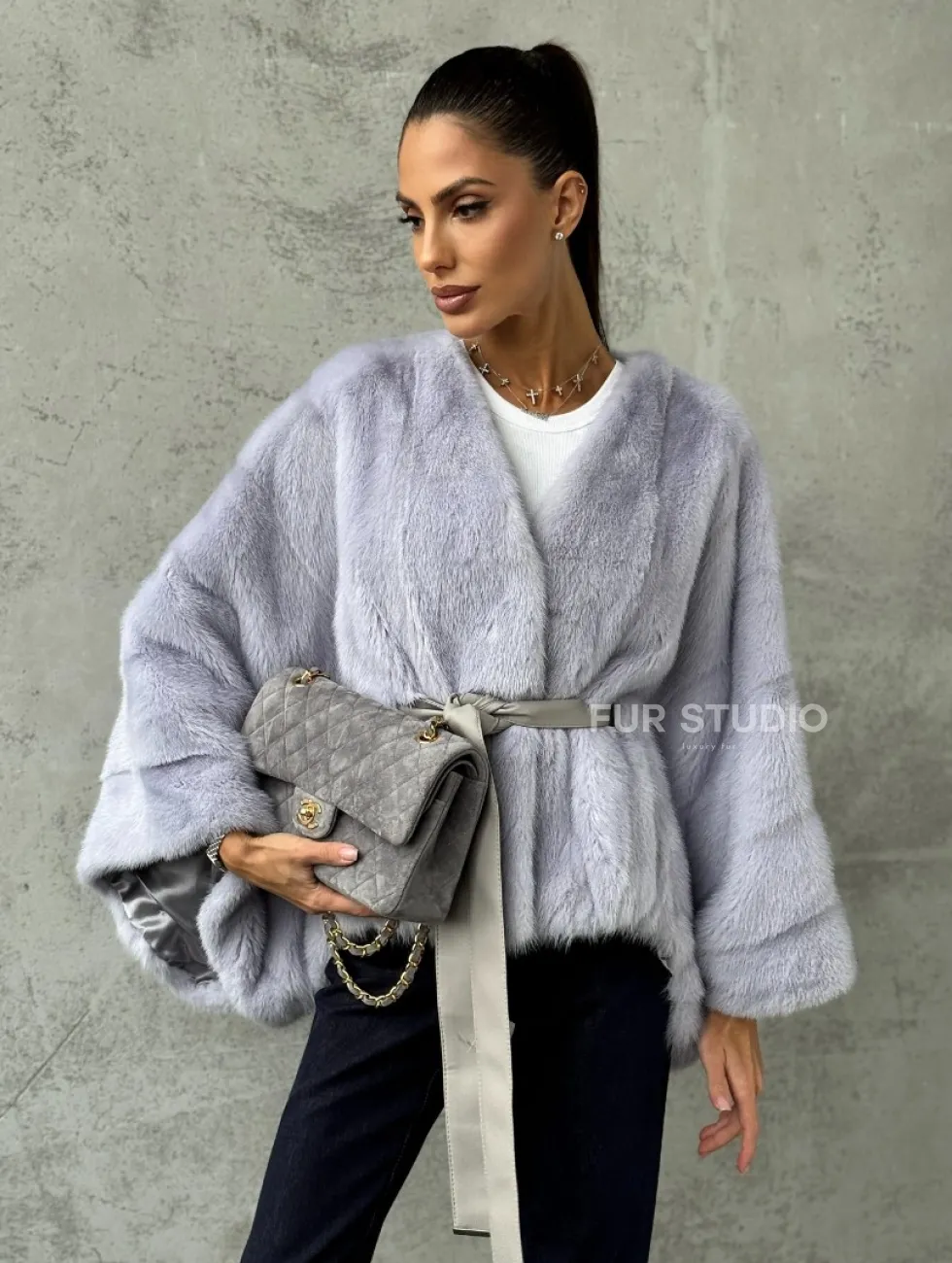 Мех данной шубы аукционная норка, цвет голубой. Предлагается в размерах от 40 до 58 (oversize). Длина модели 50-55 см, что выгодно подчеркивает фигуру девушек. Эта модель идеально подойдет для девушек и женщин, предпочитающих роскошные натуральные меха.