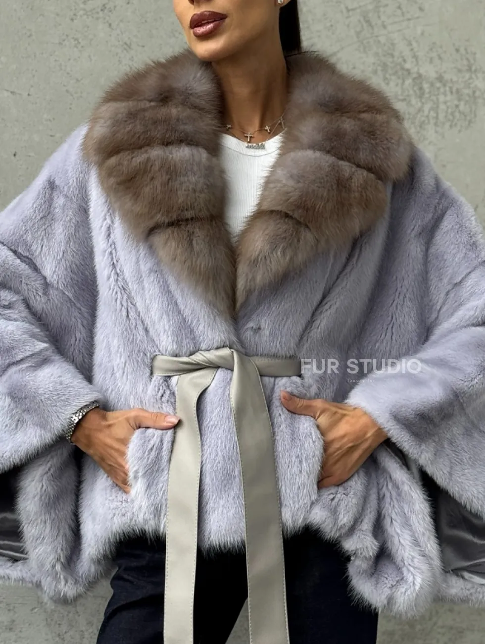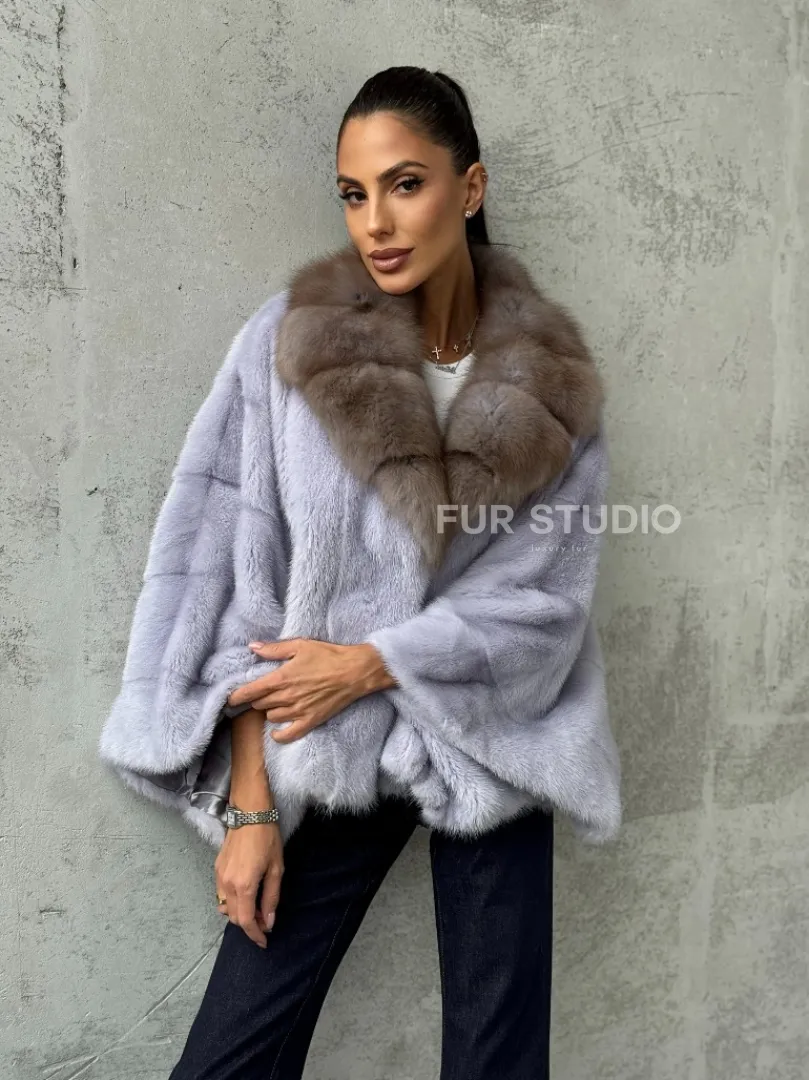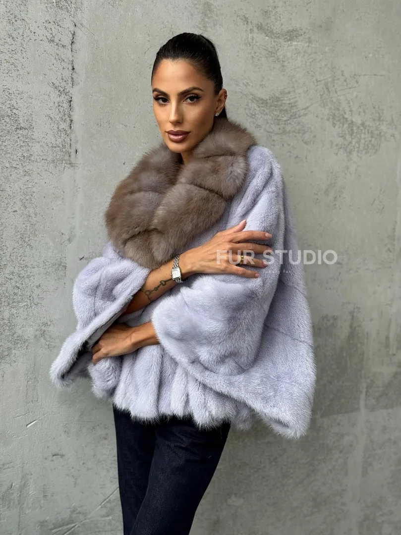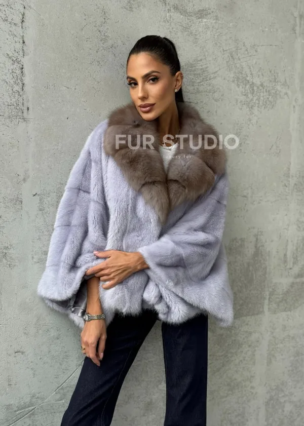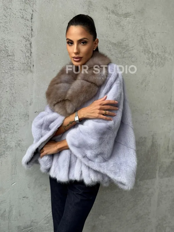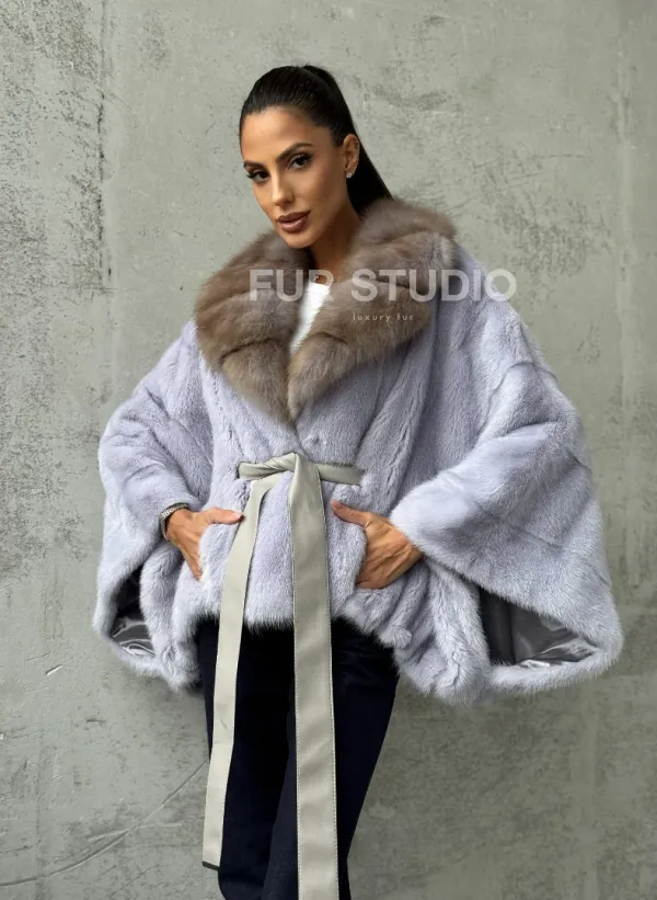 Мех данной шубы аукционная норка, цвет голубой. Предлагается в размерах от 42 до 58 (oversize). Длина модели 50-55 см, что выгодно подчеркивает фигуру девушек. Эта модель идеально подойдет для девушек и женщин, предпочитающих роскошные натуральные меха.