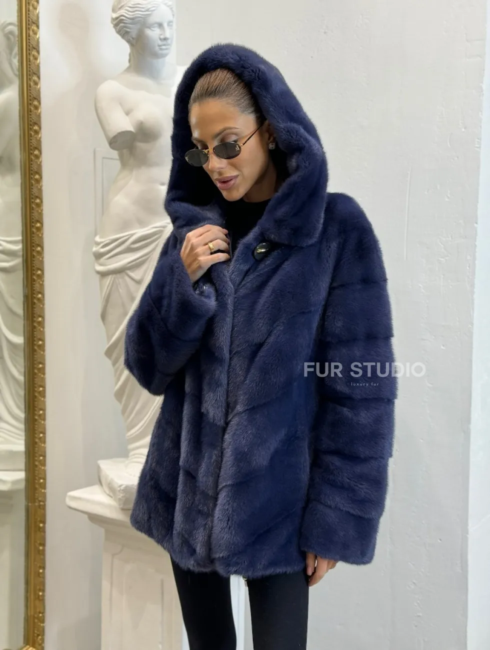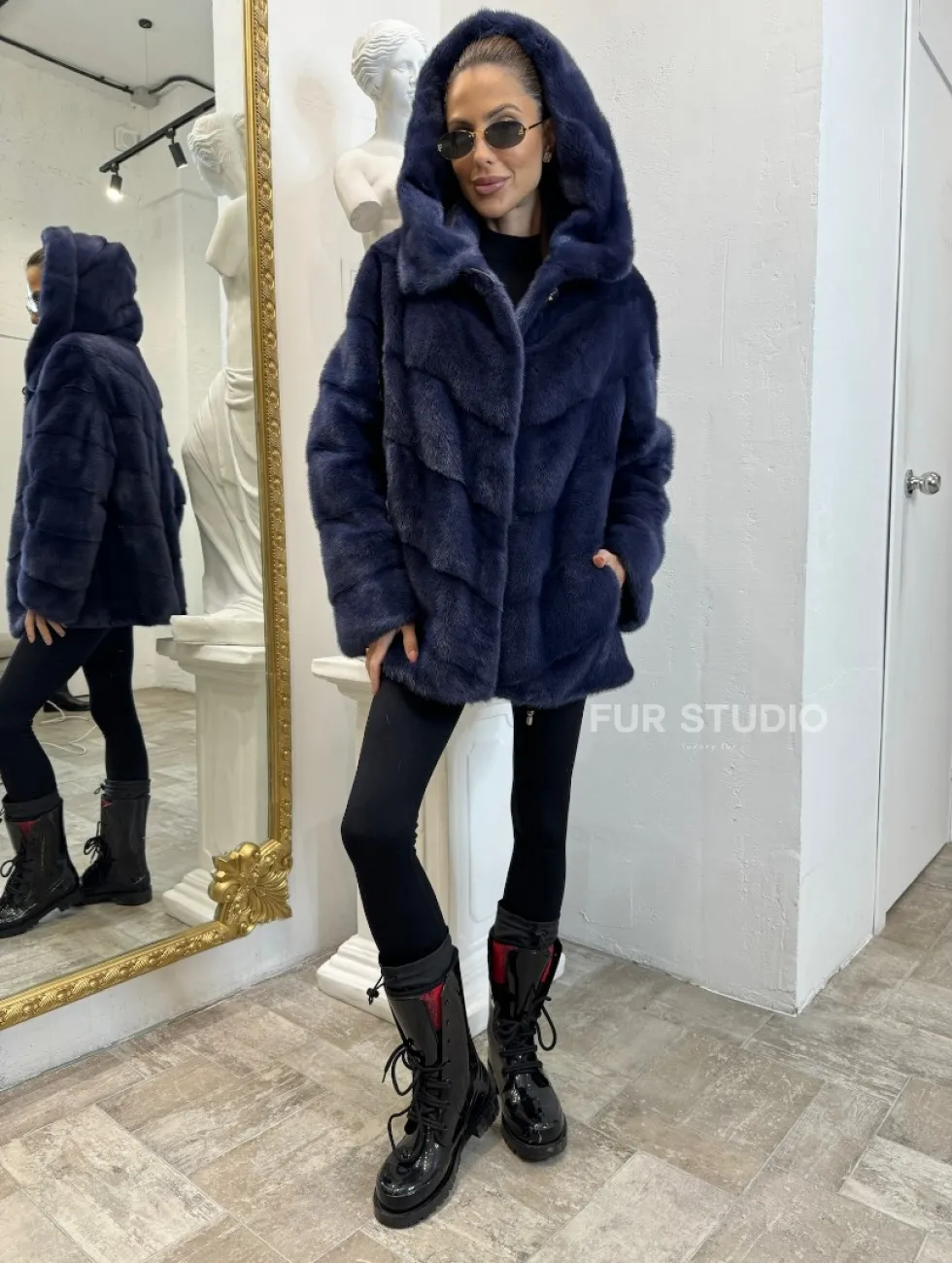Модель прекрасно сочетается с любым гардеробом: от стиля casual до вечерних нарядов. Добавьте в образ брендовую сумочку, и вы можете покорять мир. Купить короткую шубу из импортной норки с капюшоном могут женщины, которые имеют безукоризненный вкус и чувство стиля.