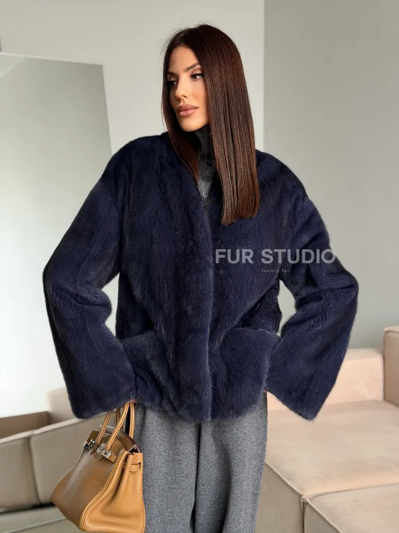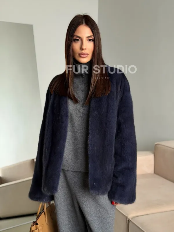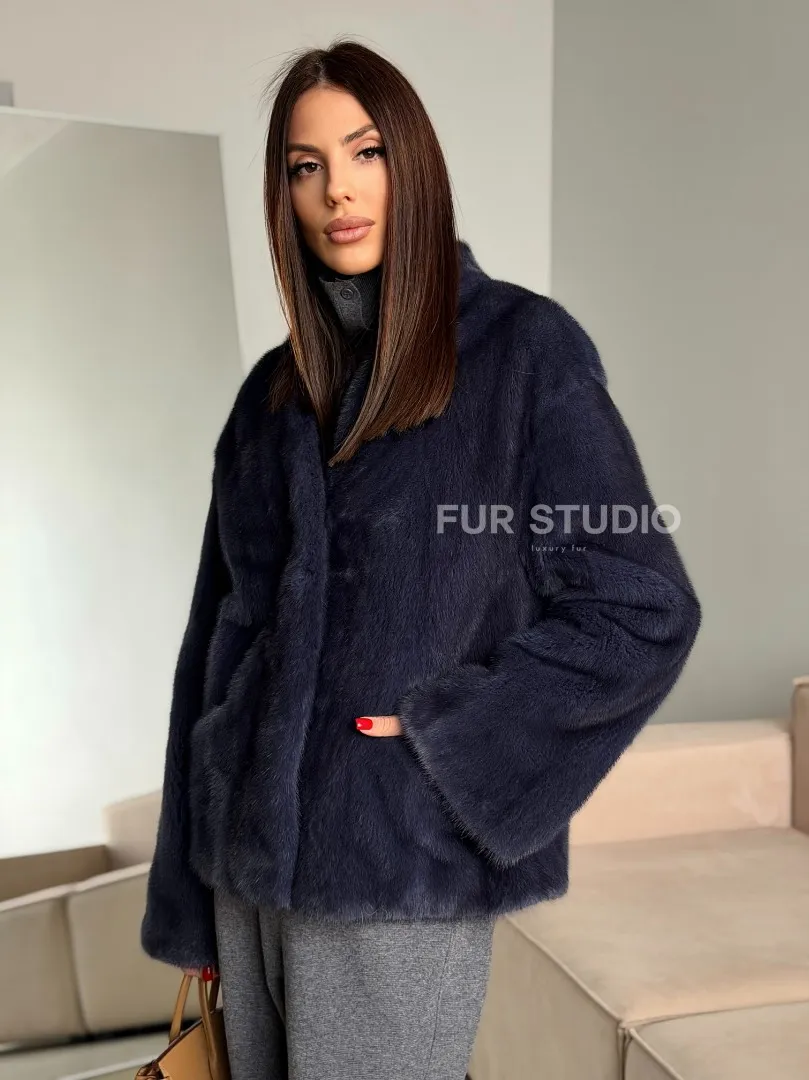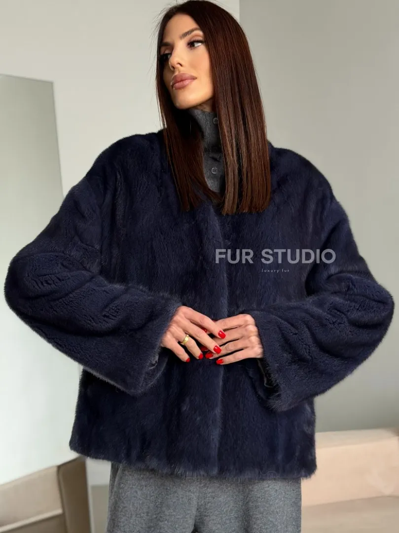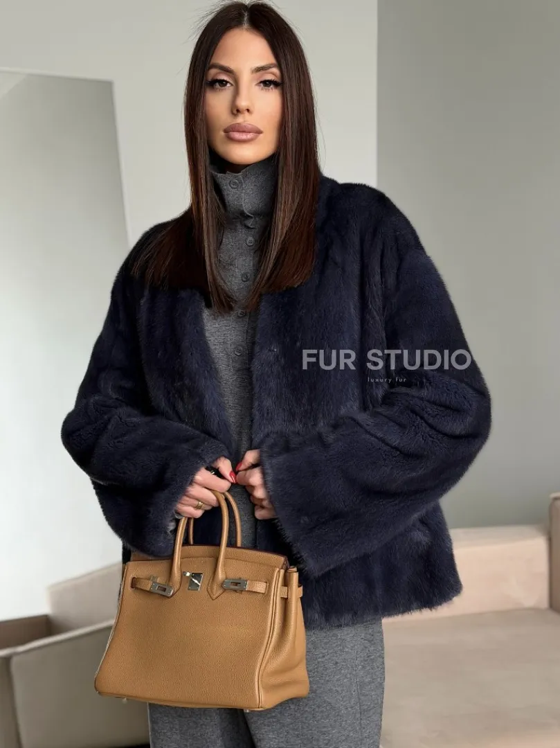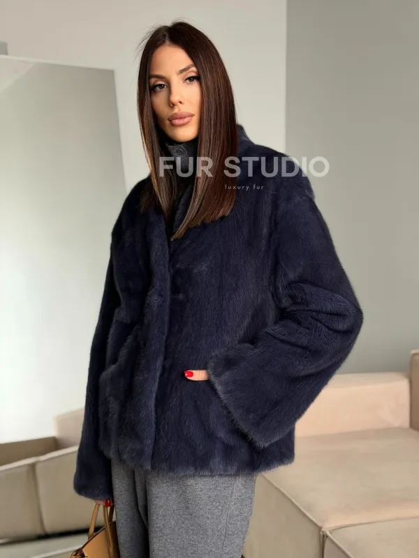 Короткий норковый жакет - синий графит доступна для покупки в нашем шоуруме Furs Studio в Москве. У нас так же есть доставка во все города России. Добавьте немного роскоши в свой гардероб с этой шубой, которая будет служить вам многие годы.