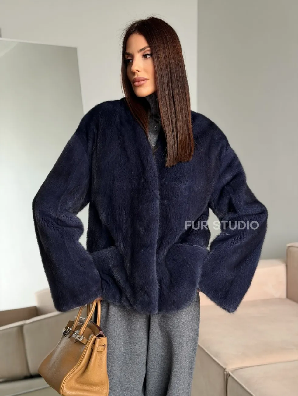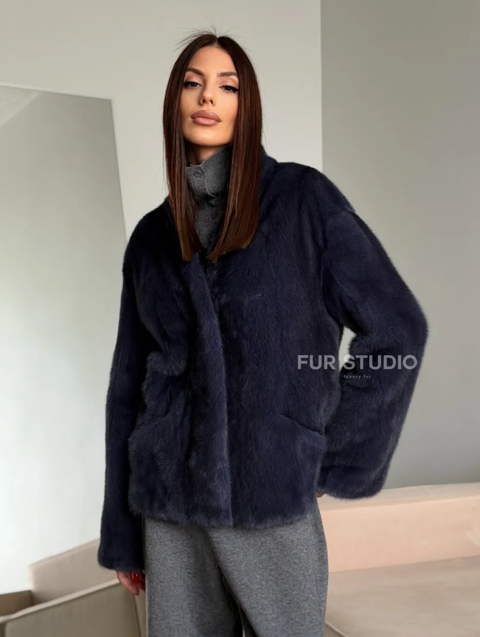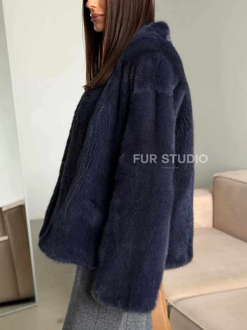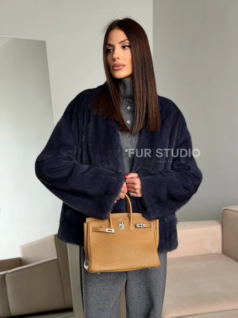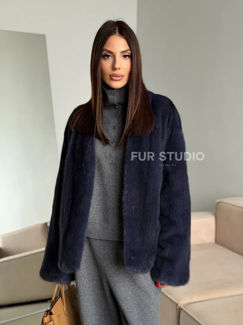 Короткий норковый жакет - синий графит доступна для покупки в нашем шоуруме Furs Studio в Москве. У нас так же есть доставка во все города России. Добавьте немного роскоши в свой гардероб с этой шубой, которая будет служить вам многие годы.