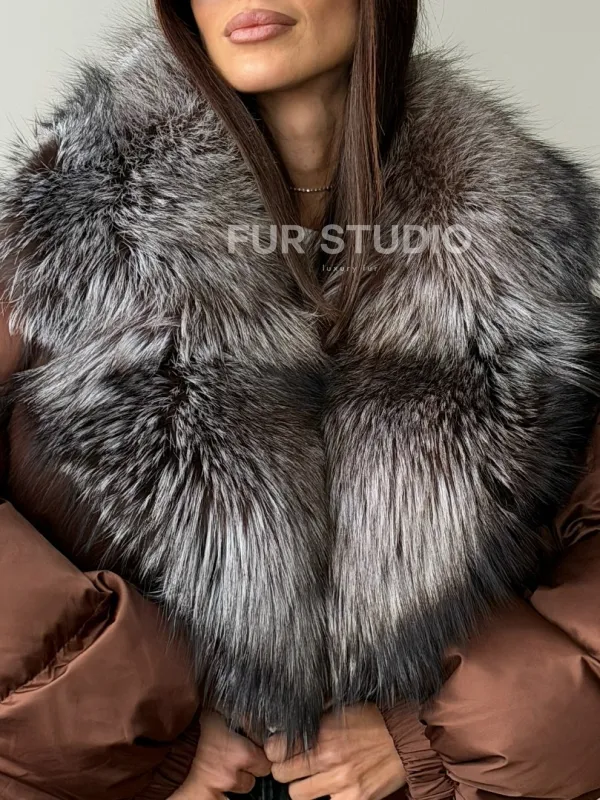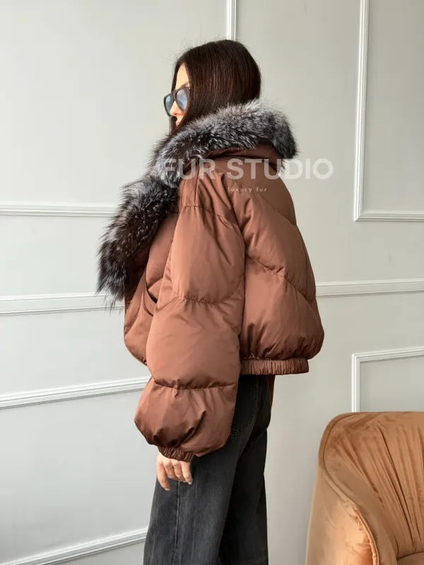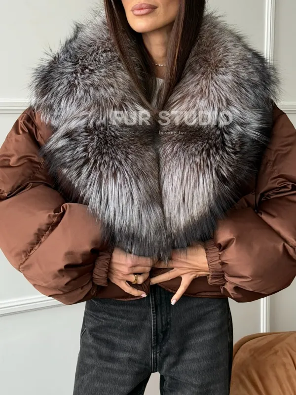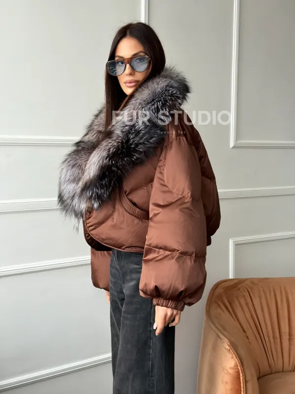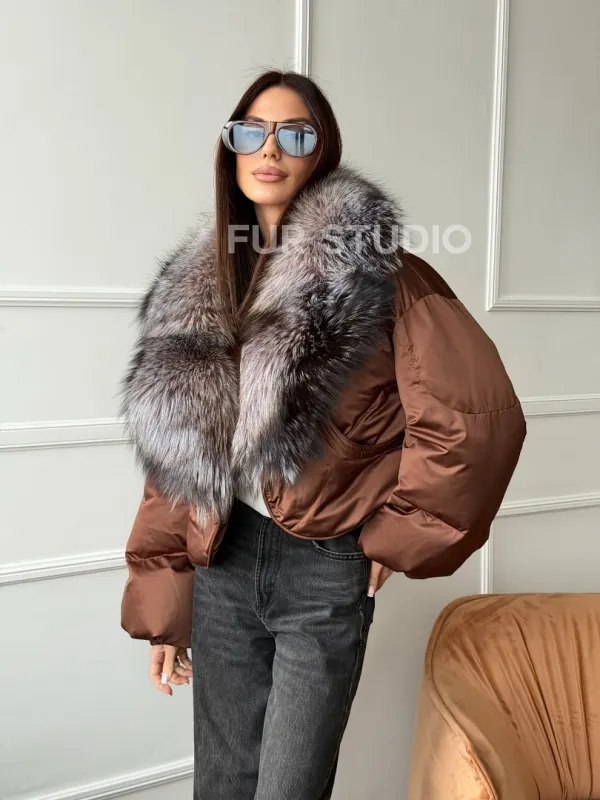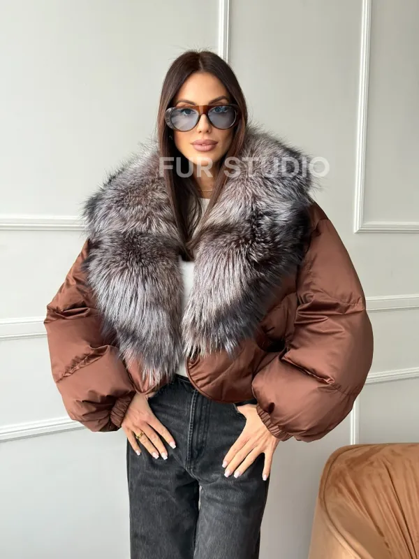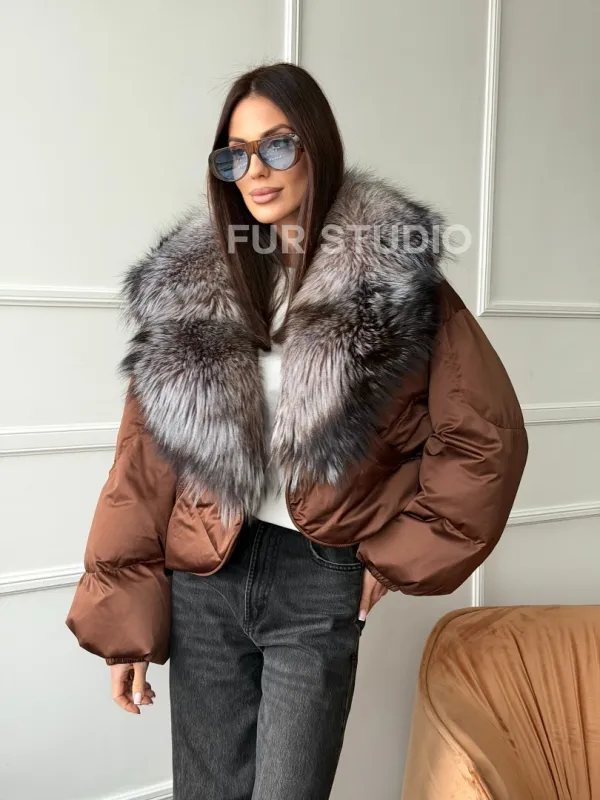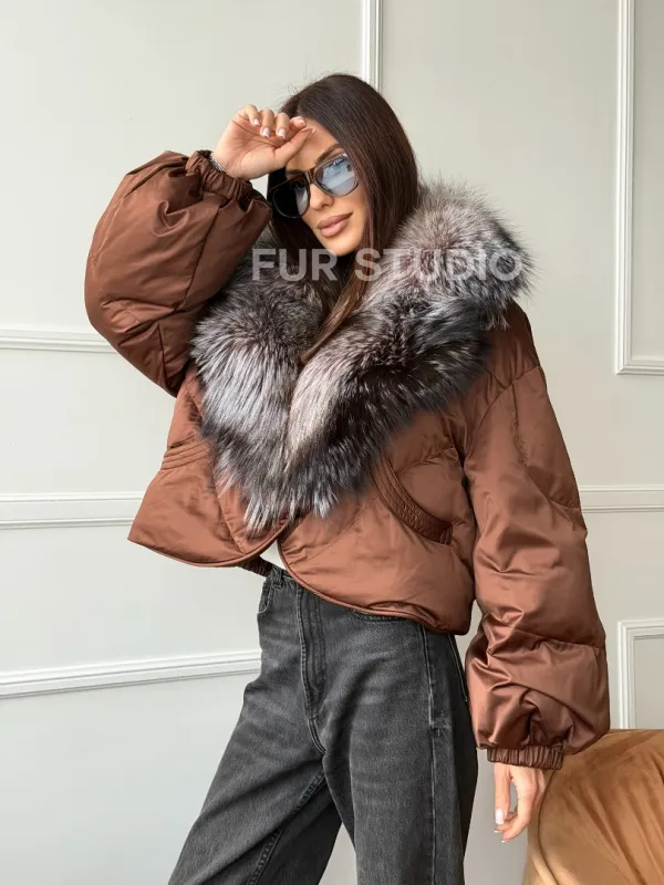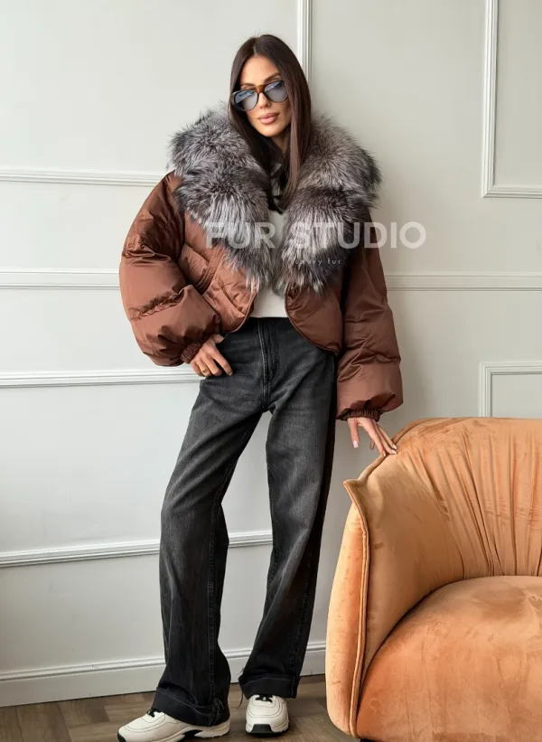 Короткий пуховик с мехом чернобурки 102757