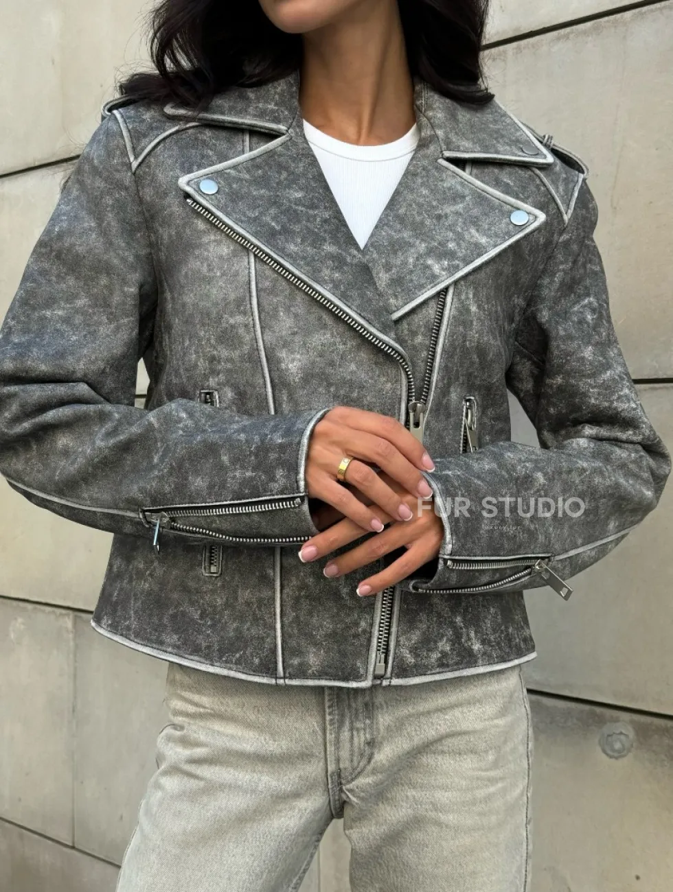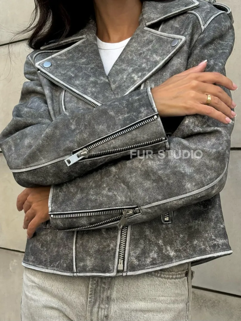 Косуха из натуральной кожи VINTAGE COLLECTION доступна для покупки в нашем шоуруме Furs Studio в Москве, где также предоставляется удобная доставка во все города России.