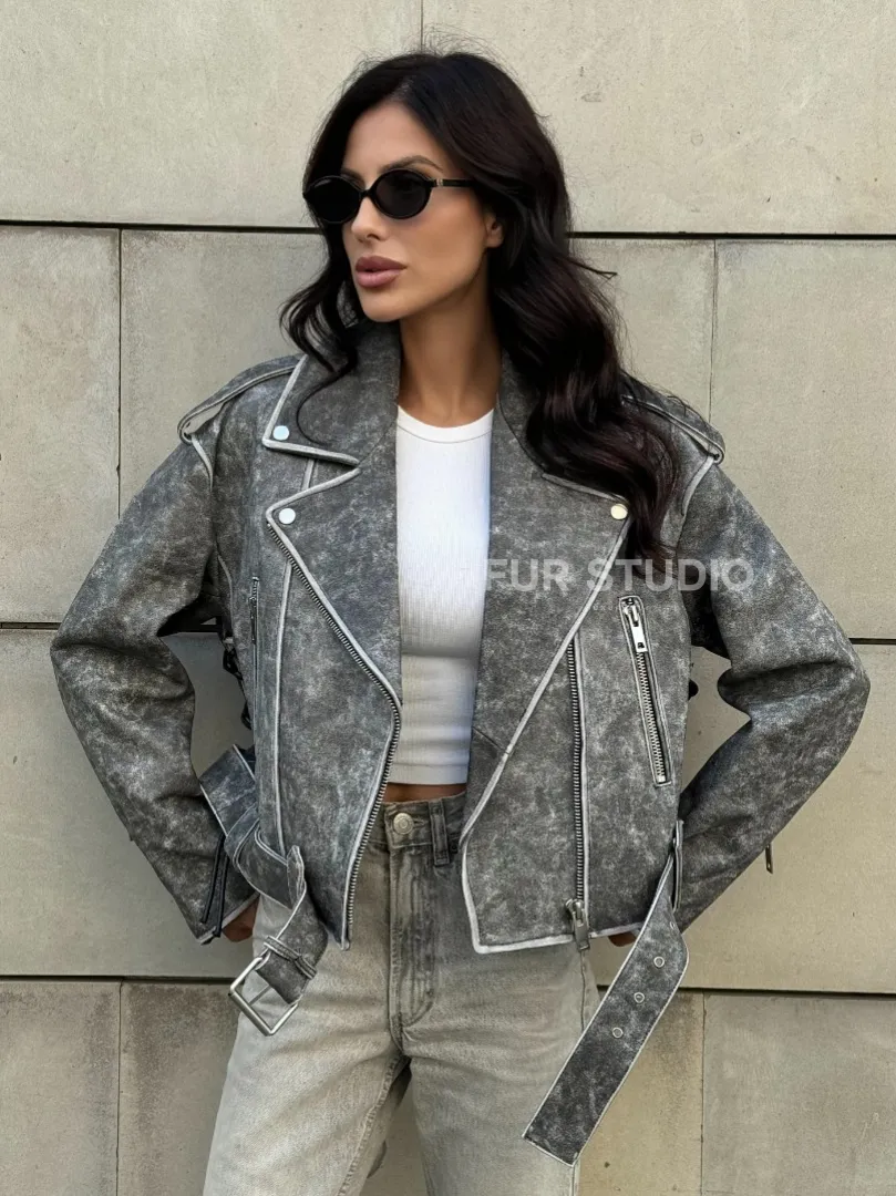 Восхититесь элегантностью и несравненным комфортом с нашей эксклюзивной коллекцией кожаных изделий. Изготовленная из первоклассной натуральной кожи, Косуха из натуральной кожи Vintage со шнуровкой - цвет серый не только согреет вас в прохладные дни, но и подчеркнет ваш изысканный вкус. Уникальный дизайн и высокое качество делают наши представленные образцы идеальным выбором для утончённых образов.