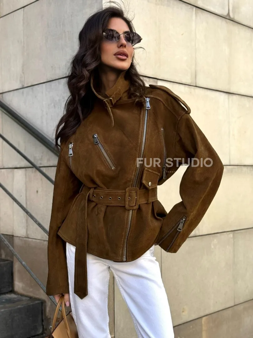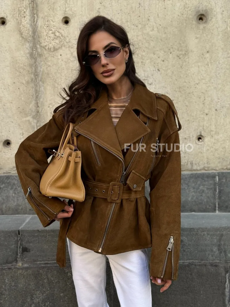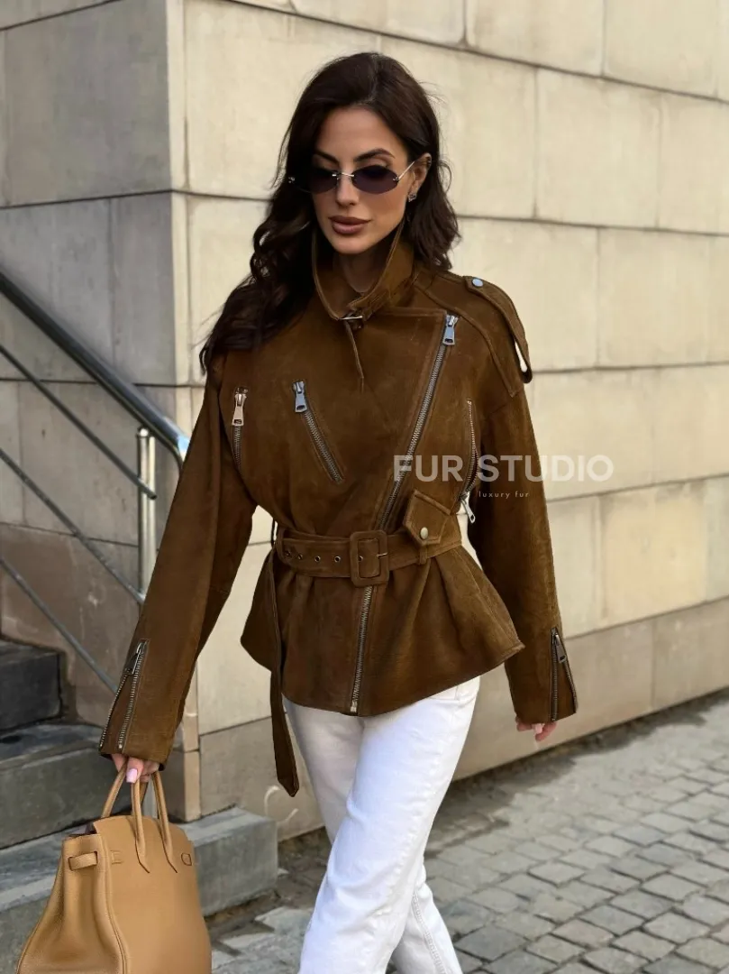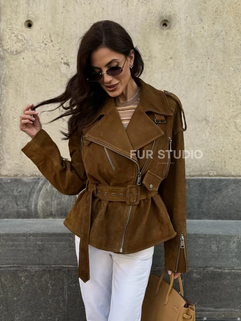 Восхититесь элегантностью и несравненным комфортом с нашей эксклюзивной коллекцией кожаных изделий. Изготовленная из первоклассной натуральной кожи, Косуха из натуральной замши под пояс "весна 2026" не только согреет вас в прохладные дни, но и подчеркнет ваш изысканный вкус. Уникальный дизайн и высокое качество делают наши представленные образцы идеальным выбором для утончённых образов.