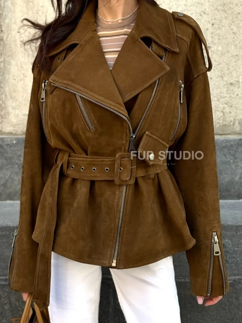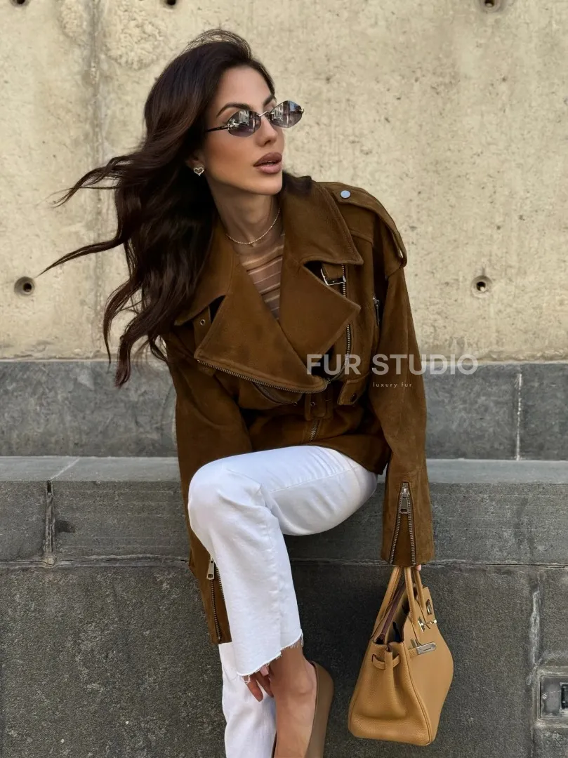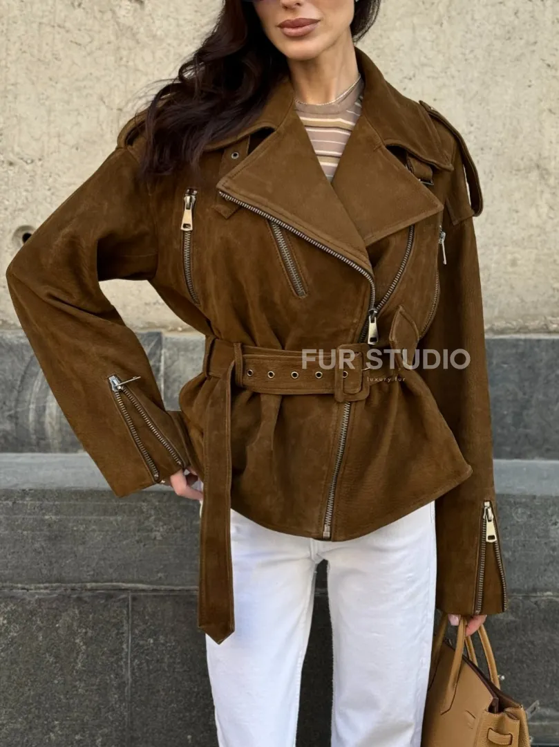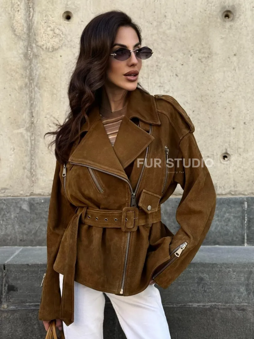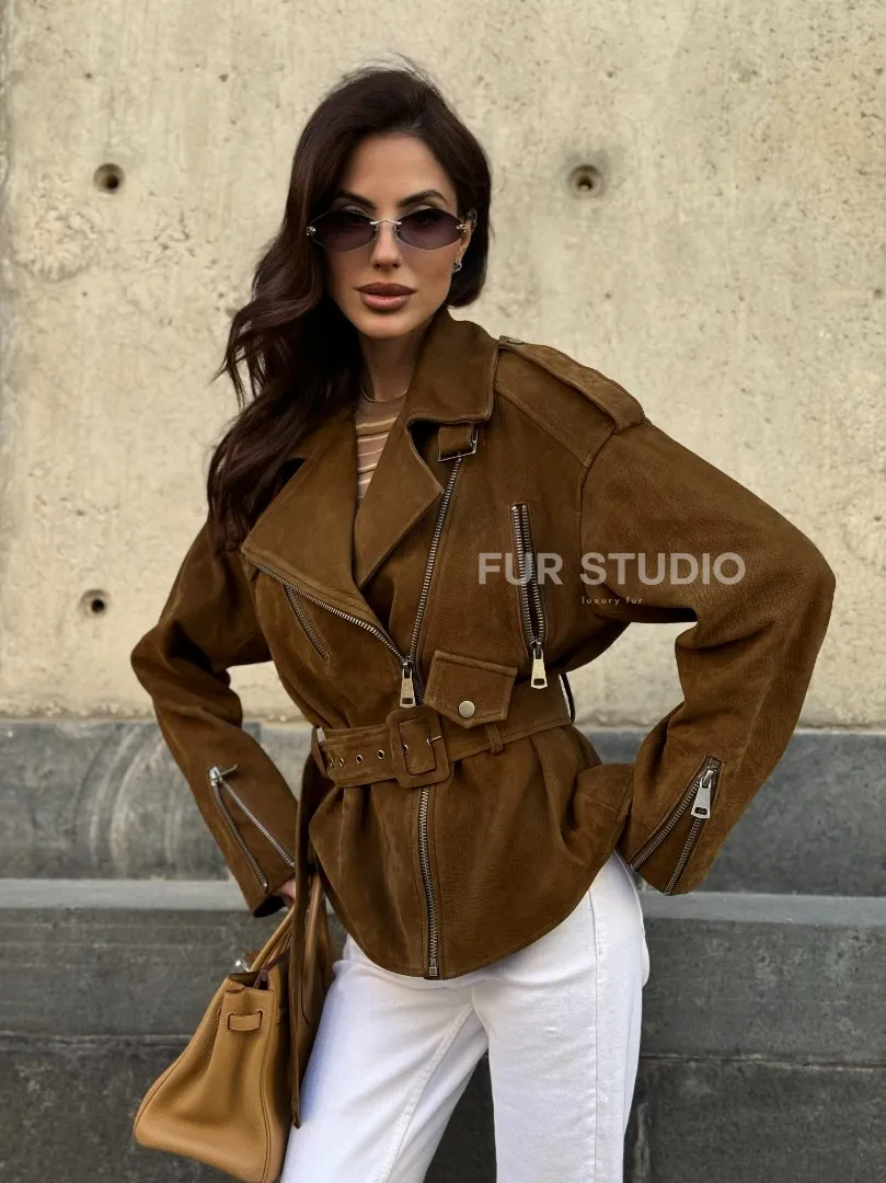 Восхититесь элегантностью и несравненным комфортом с нашей эксклюзивной коллекцией кожаных изделий. Изготовленная из первоклассной натуральной кожи, Косуха из натуральной замши под пояс "весна 2026" не только согреет вас в прохладные дни, но и подчеркнет ваш изысканный вкус. Уникальный дизайн и высокое качество делают наши представленные образцы идеальным выбором для утончённых образов.