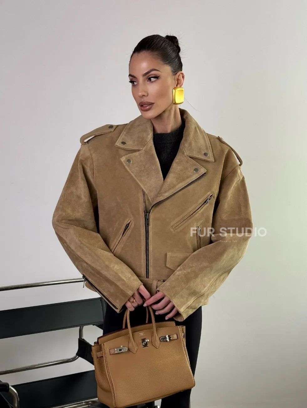 Восхититесь элегантностью и несравненным комфортом с нашей эксклюзивной коллекцией кожаных изделий. Изготовленная из первоклассной натуральной кожи, Косуха «Прямой Оверсайз» из мягкой кожи (замши) Camel не только согреет вас в прохладные дни, но и подчеркнет ваш изысканный вкус. Уникальный дизайн и высокое качество делают наши представленные образцы идеальным выбором для утончённых образов.