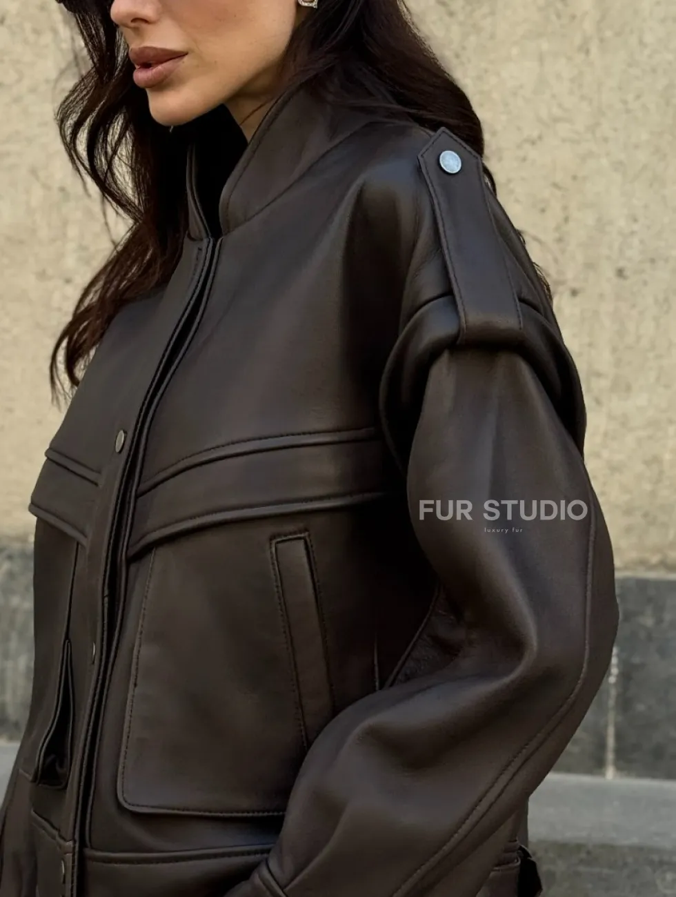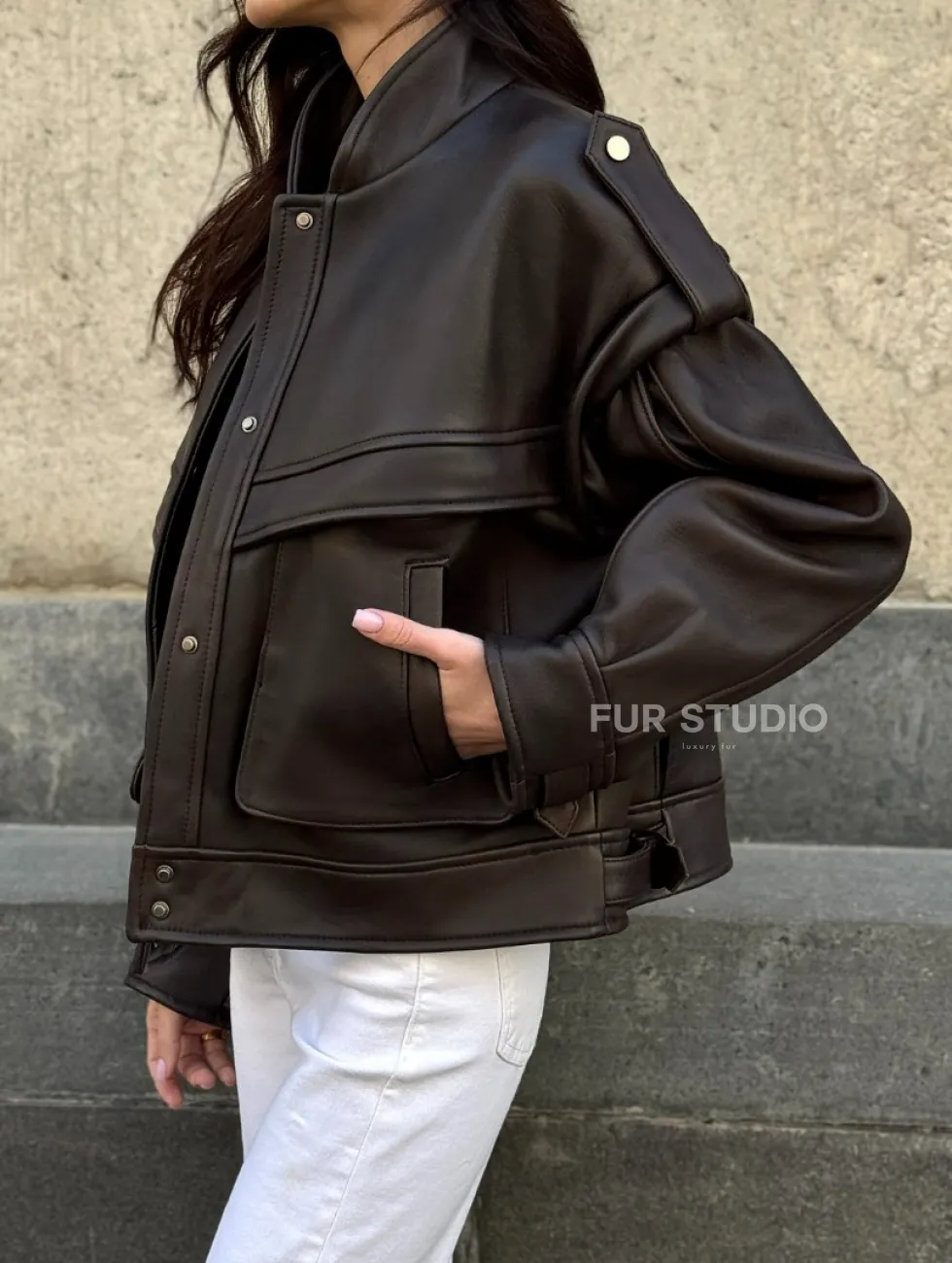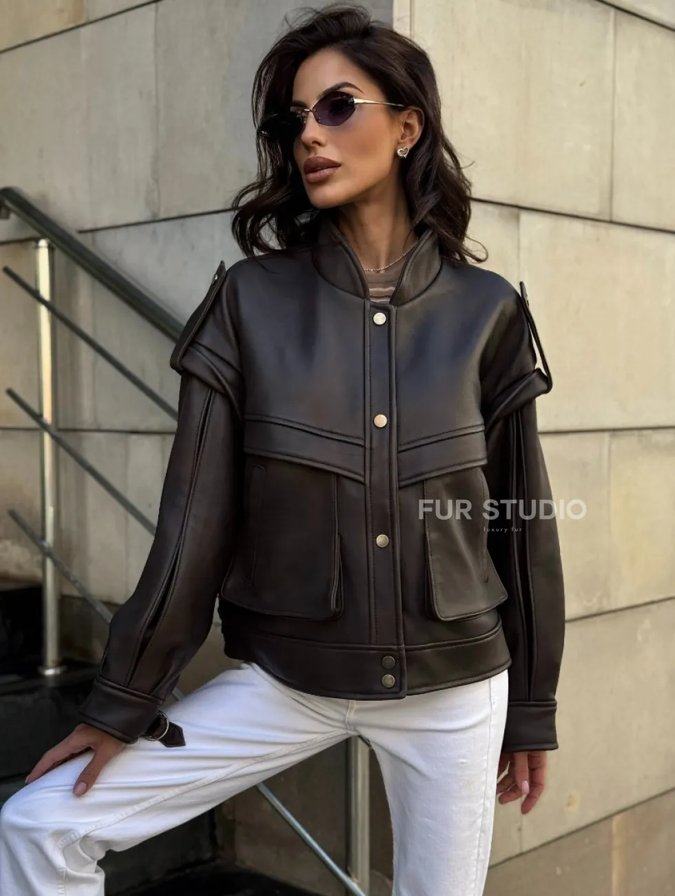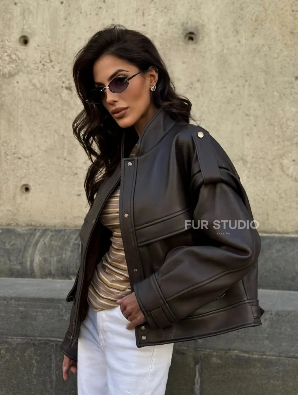 Кожаная коричневая куртка Retro Vintage доступна для покупки в нашем шоуруме Furs Studio в Москве, где также предоставляется удобная доставка во все города России.