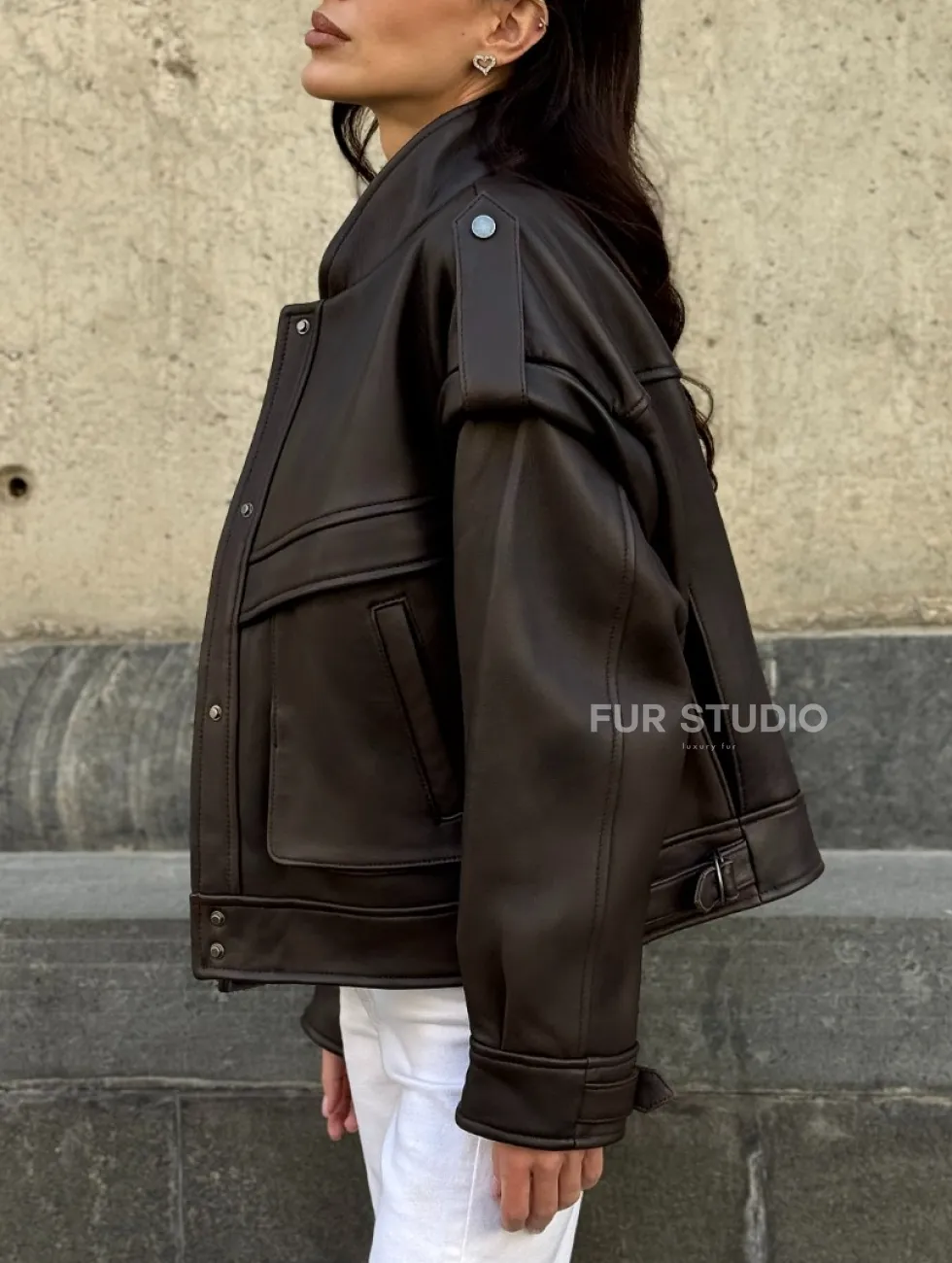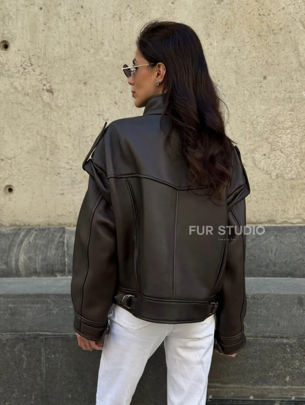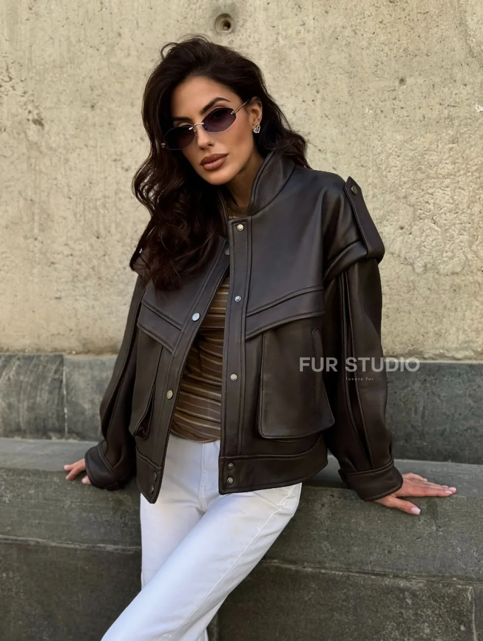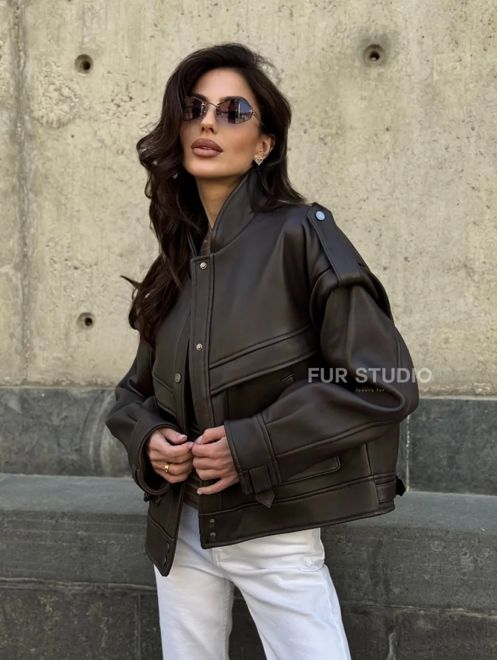 Кожаная коричневая куртка Retro Vintage доступна для покупки в нашем шоуруме Furs Studio в Москве, где также предоставляется удобная доставка во все города России.