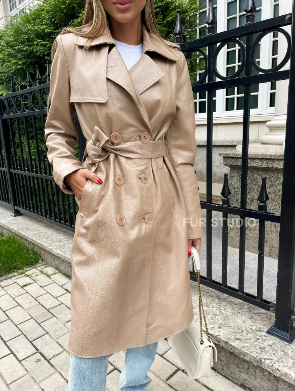 Восхититесь элегантностью и несравненным комфортом с нашей эксклюзивной коллекцией кожаных изделий. Изготовленная из первоклассной натуральной кожи, Кожаный тренч на пуговицах не только согреет вас в прохладные дни, но и подчеркнет ваш изысканный вкус. Уникальный дизайн и высокое качество делают наши представленные образцы идеальным выбором для утончённых образов.
