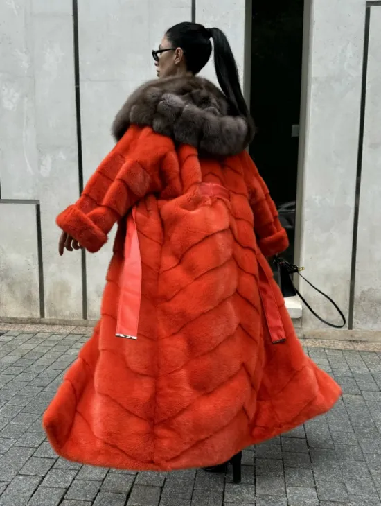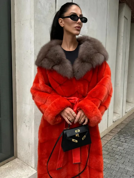 Мех данной шубы аукционная норка , цвет красный. Предлагается в размерах от 42 до 50 ( инд.пошив от 50 до 58 ). Длина модели 115-120 см, что выгодно подчеркивает фигуру девушек. Эта модель идеально подойдет для девушек и женщин, предпочитающих роскошные натуральные меха.