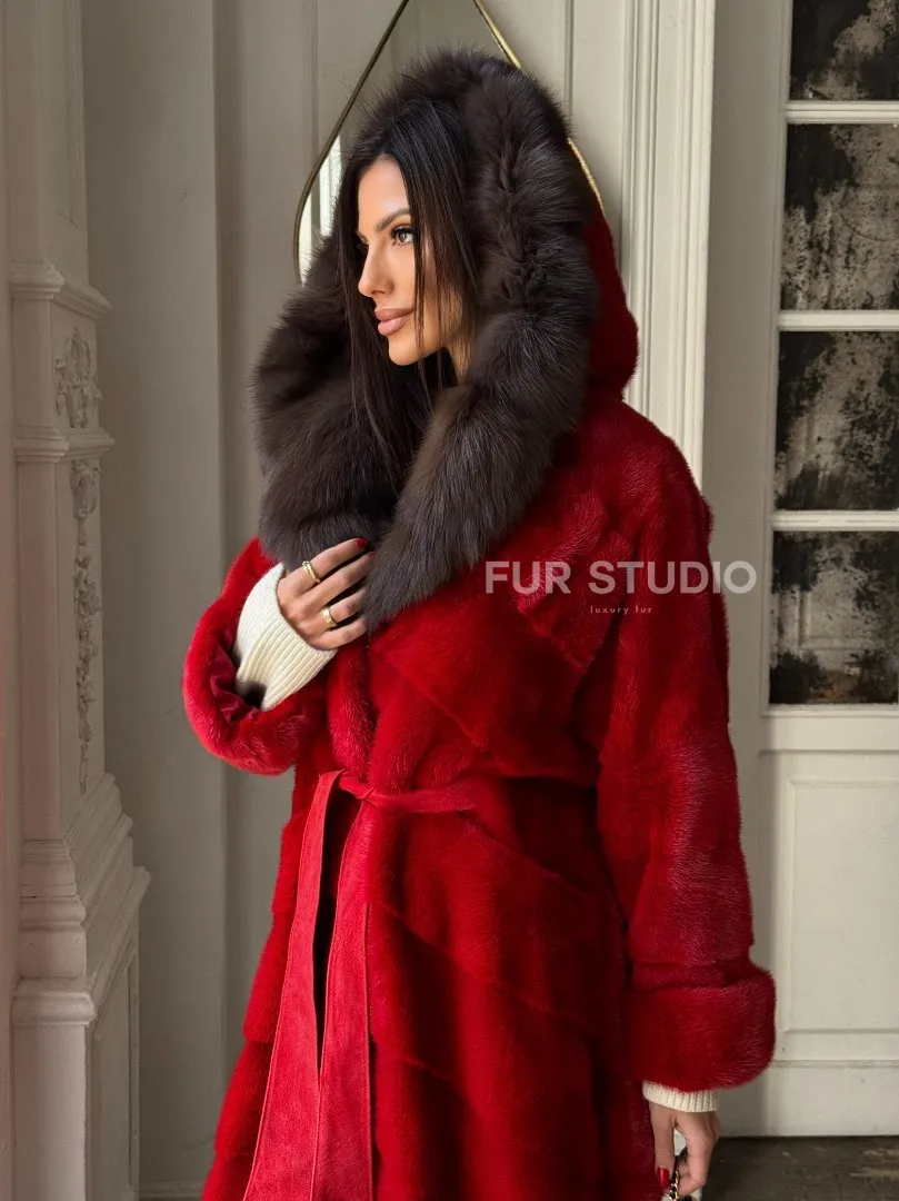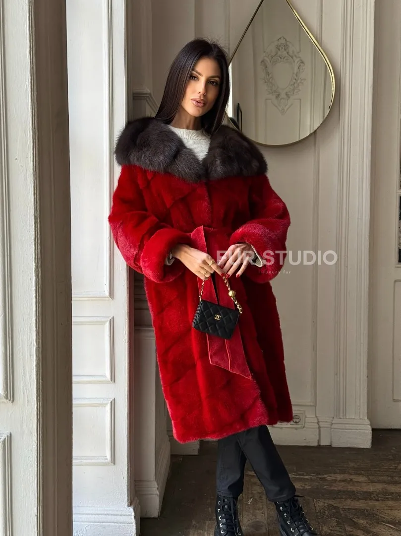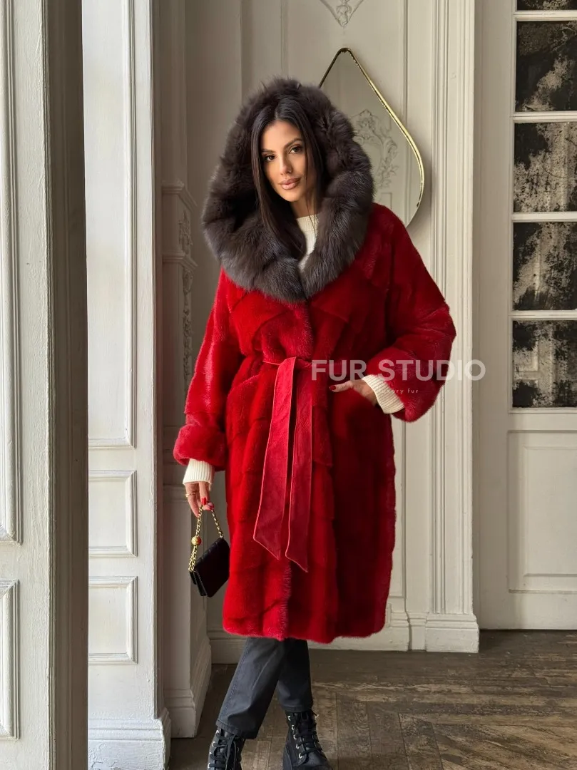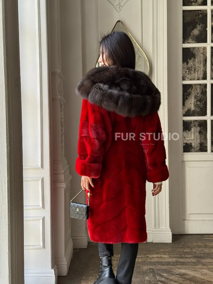 Красное меховое кимоно из аукционной норки с капюшоном куница доступна для покупки в нашем шоуруме Furs Studio в Москве. У нас так же есть доставка во все города России. Добавьте немного роскоши в свой гардероб с этой шубой, которая будет служить вам многие годы.