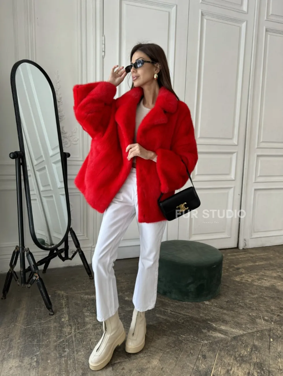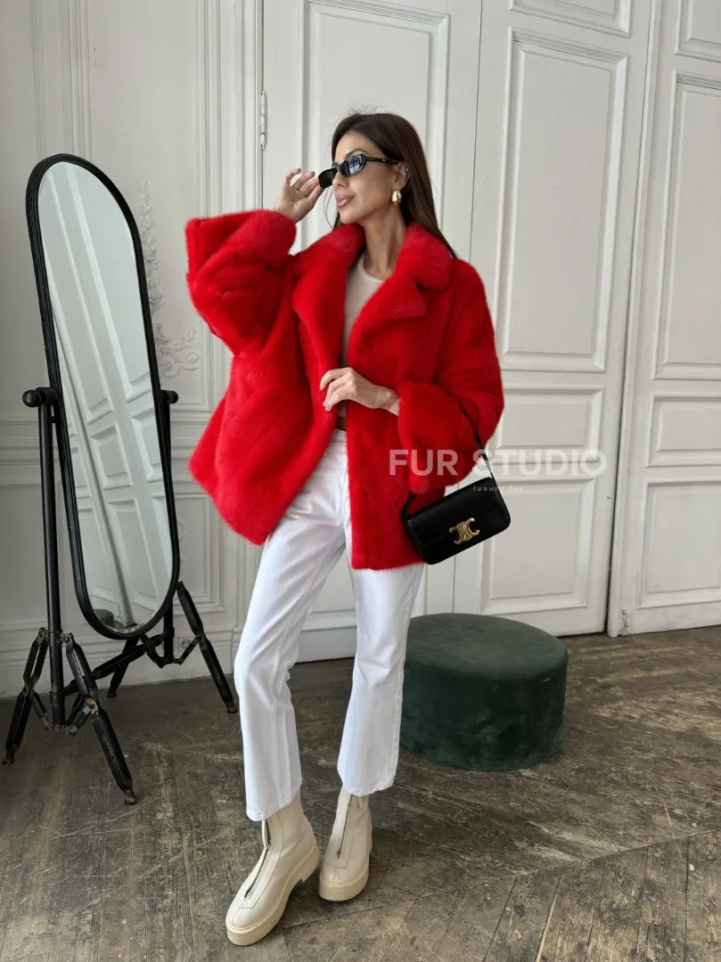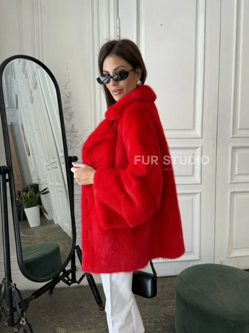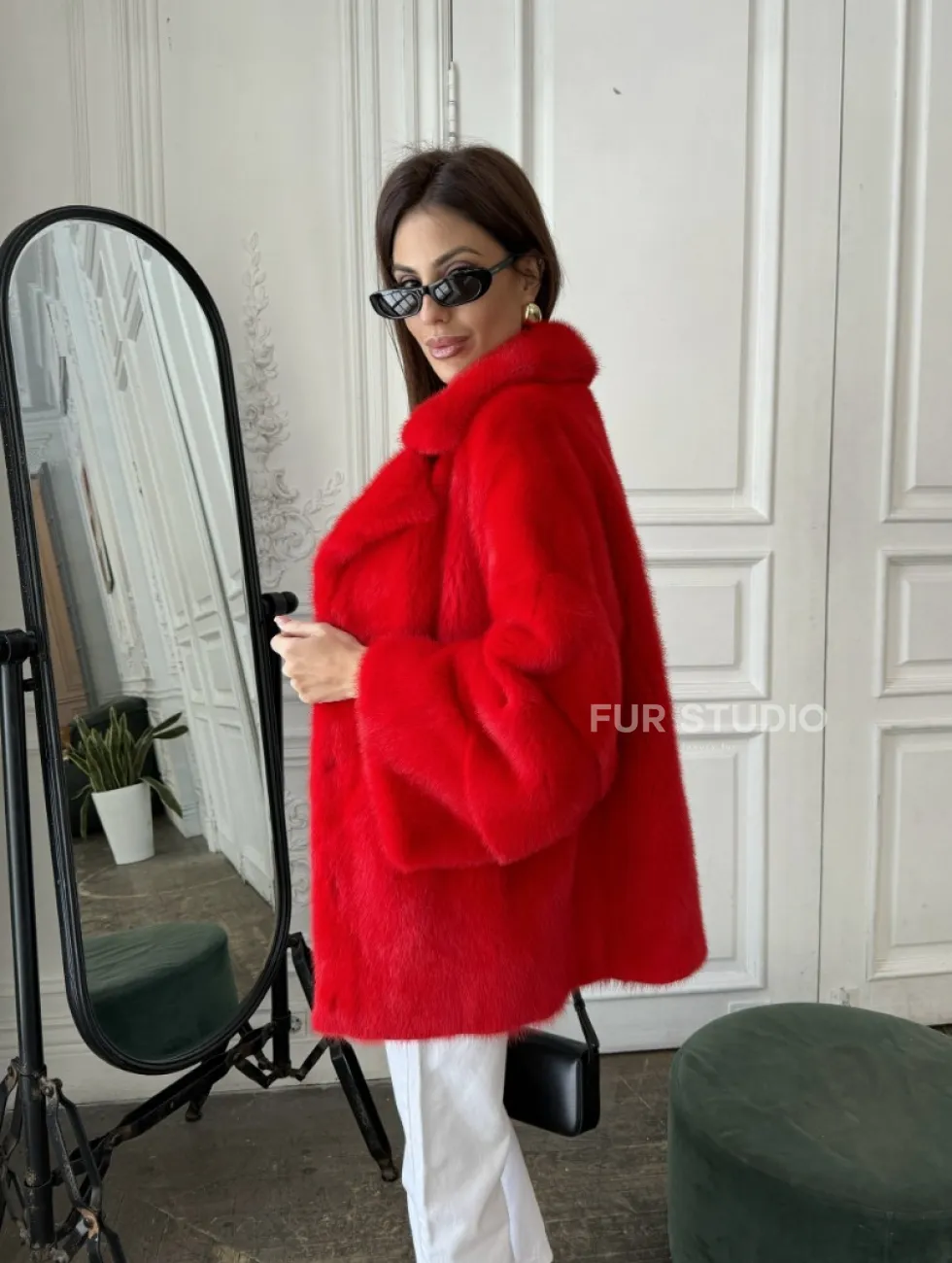 Красный норковый полушубок английский воротник роспуск доступна для покупки в нашем шоуруме Furs Studio в Москве. У нас так же есть доставка во все города России. Добавьте немного роскоши в свой гардероб с этой шубой, которая будет служить вам многие годы.