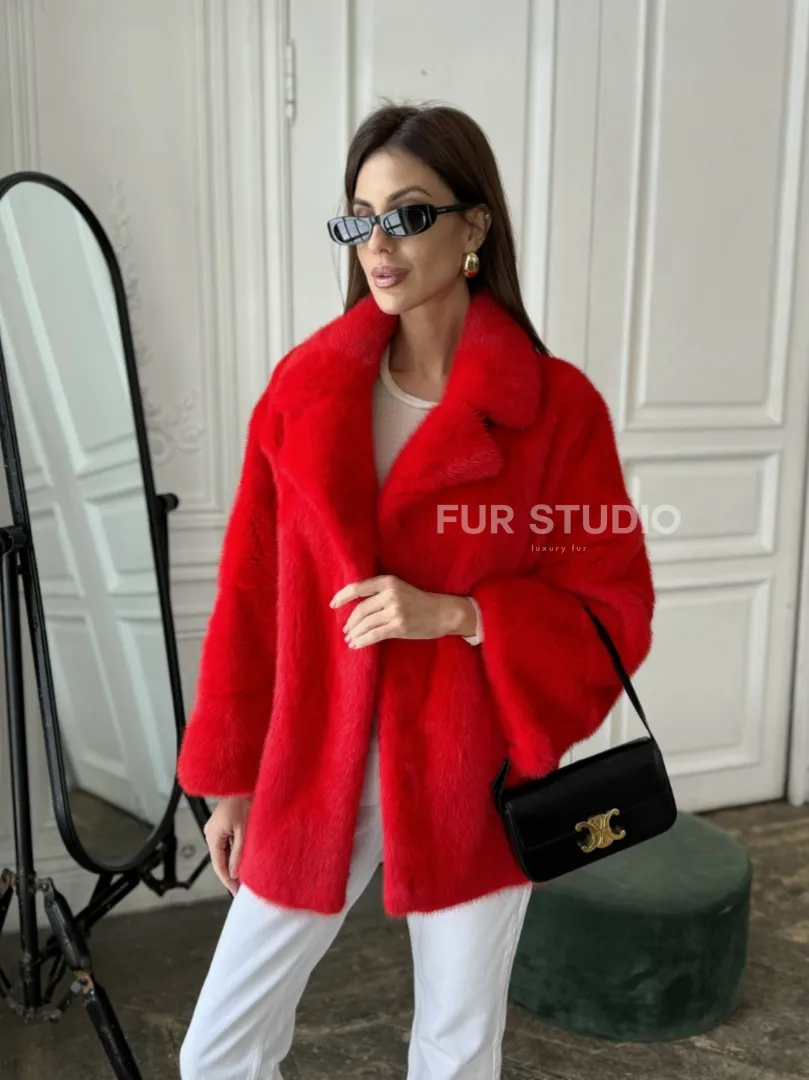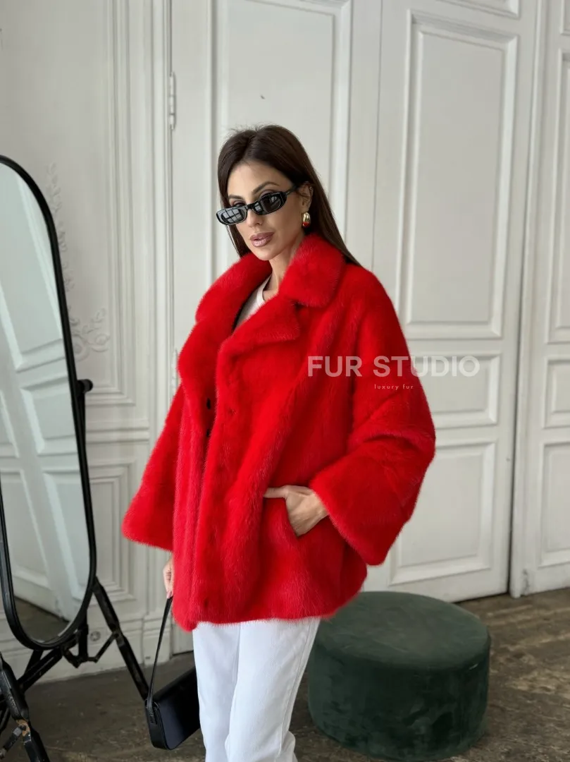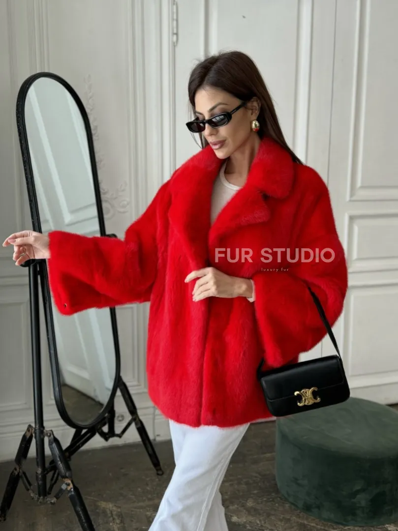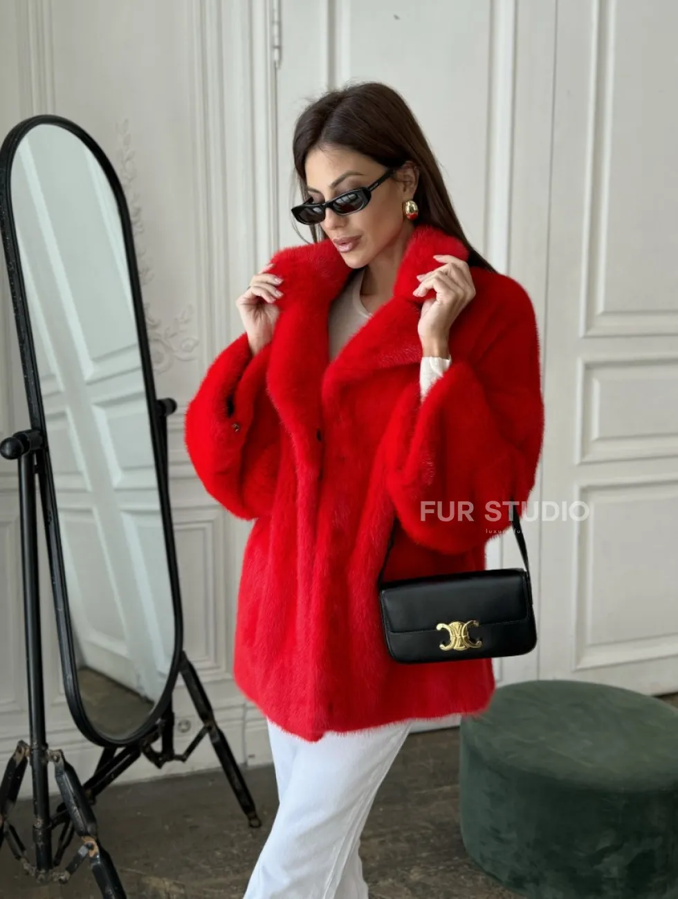 Красный норковый полушубок английский воротник роспуск доступна для покупки в нашем шоуруме Furs Studio в Москве. У нас так же есть доставка во все города России. Добавьте немного роскоши в свой гардероб с этой шубой, которая будет служить вам многие годы.