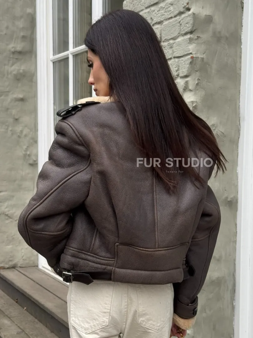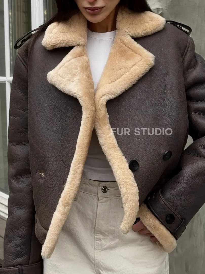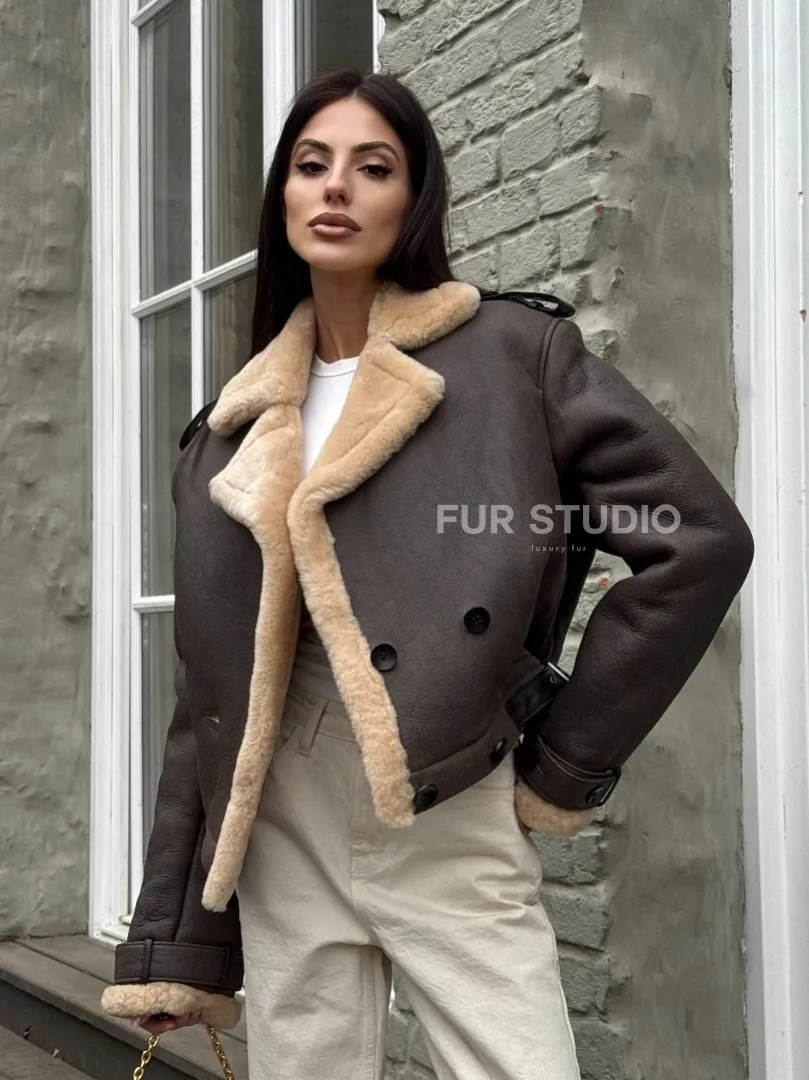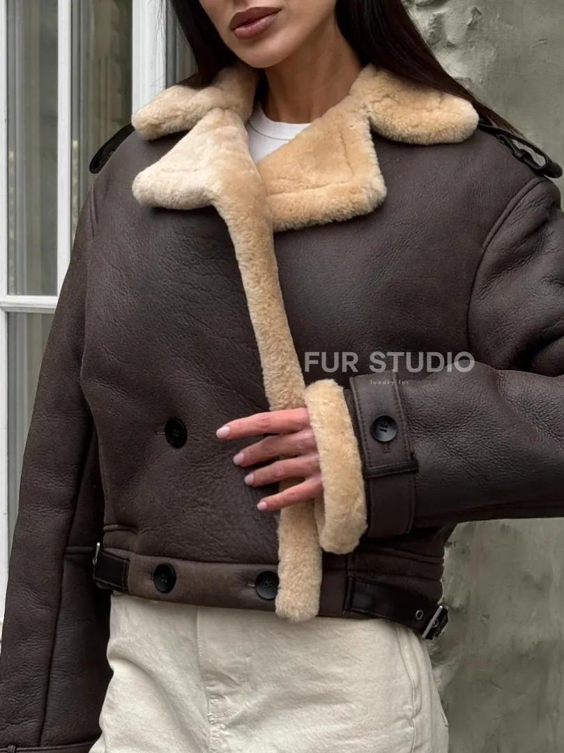 Кроп - дубленка двубортная Dark brown на пуговицах доступна для покупки в нашем шоуруме Furs Studio в Москве, а также предлагается удобная доставка во все города России. Обогатите свой гардероб этой дубленкой, которая прослужит вам многие годы, добавив немного роскоши в ваш повседневный образ.