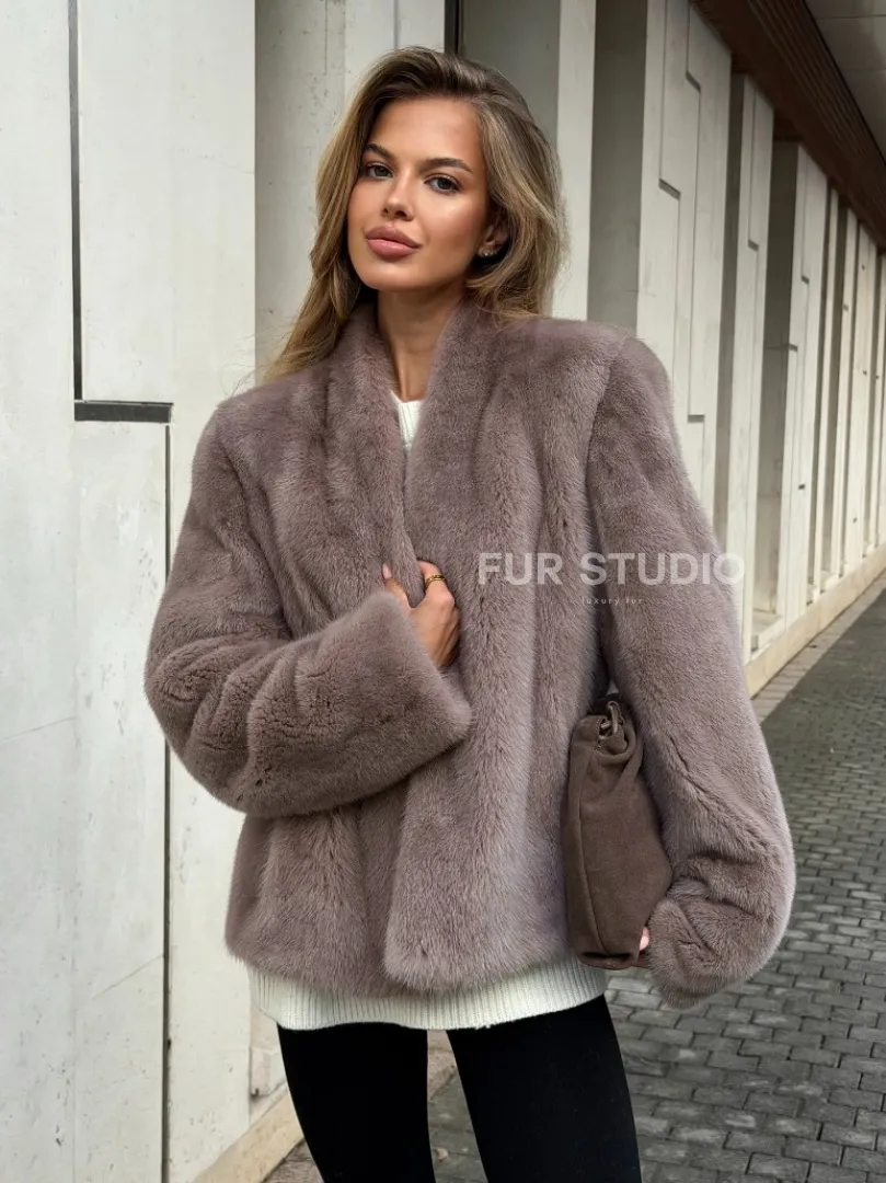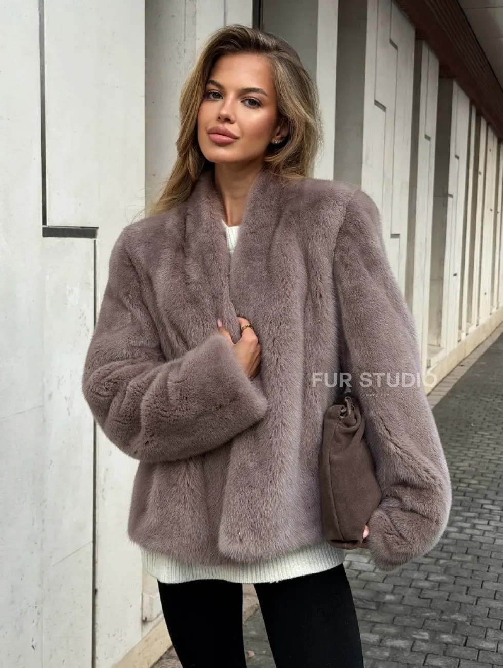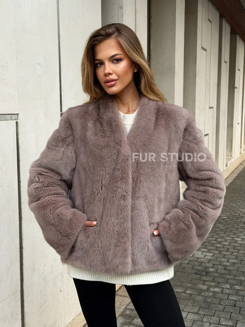 Мех данной шубы аукционная норка, цвет серый. Предлагается в размерах от 42 до 46. Длина модели 50-55 см, что выгодно подчеркивает фигуру девушек. Эта модель идеально подойдет для девушек и женщин, предпочитающих роскошные натуральные меха.