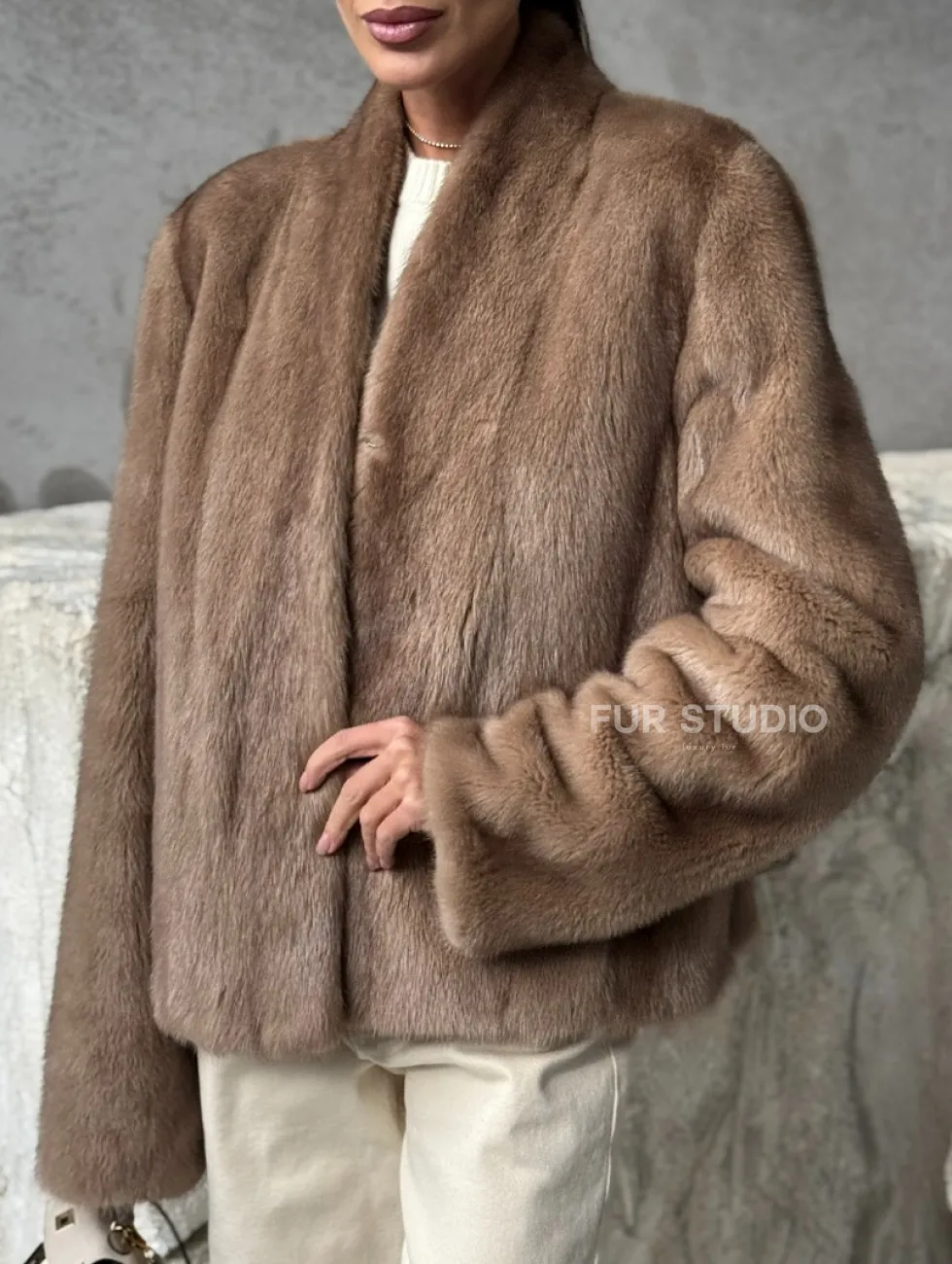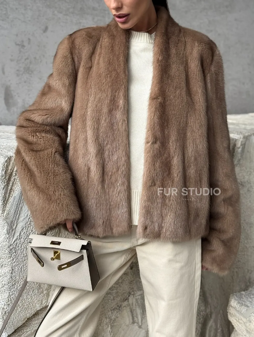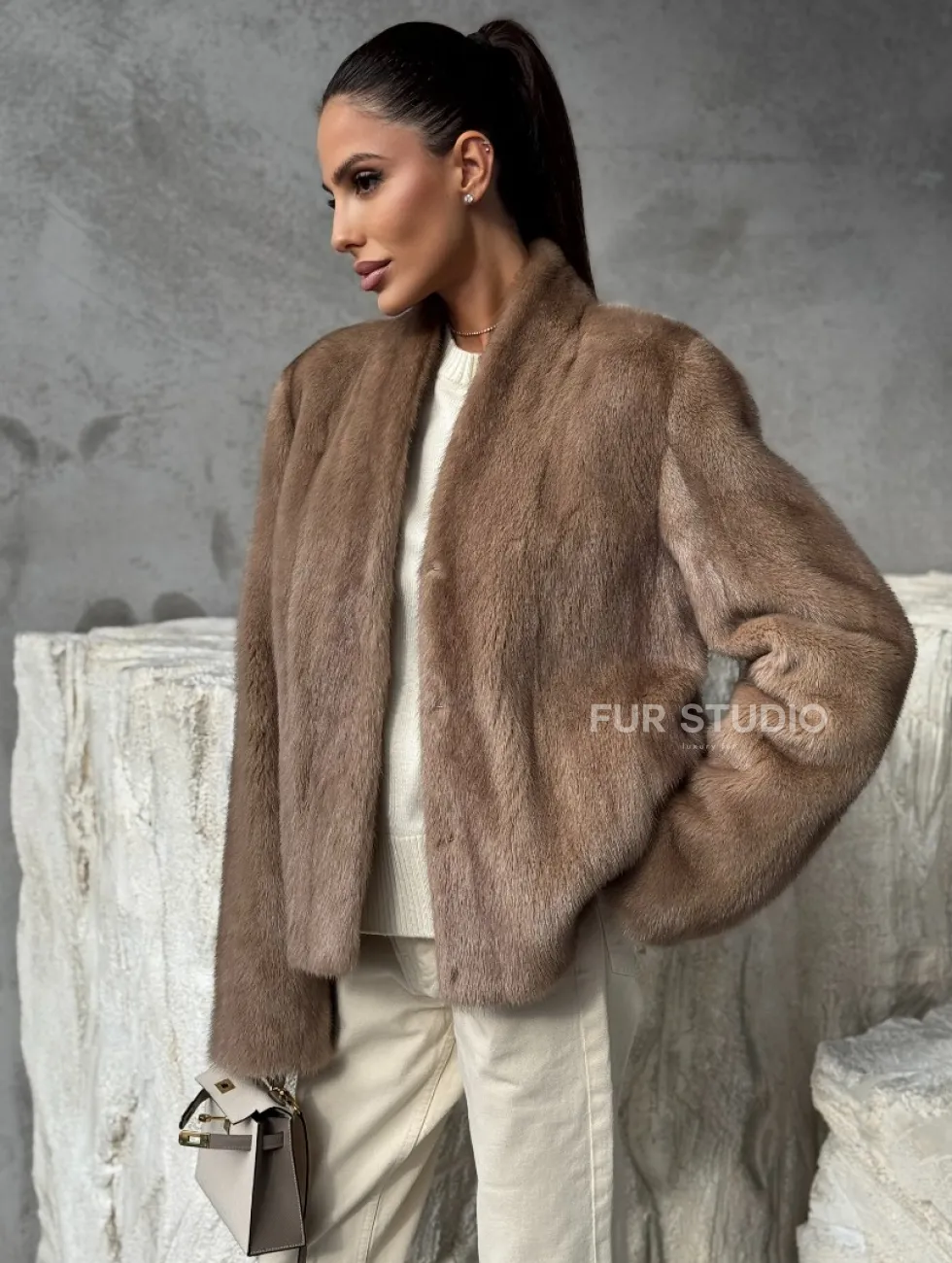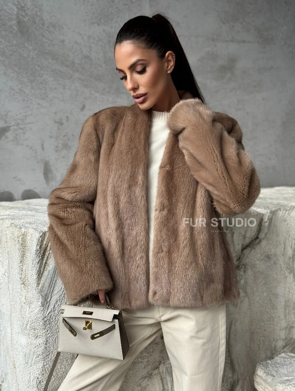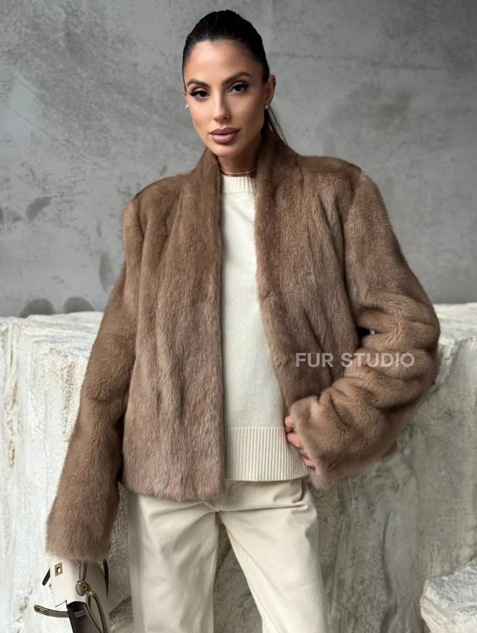 Кроп - жакет из норки Pastel с воротником V-образным 60 см доступна для покупки в нашем шоуруме Furs Studio в Москве. У нас так же есть доставка во все города России. Добавьте немного роскоши в свой гардероб с этой шубой, которая будет служить вам многие годы.