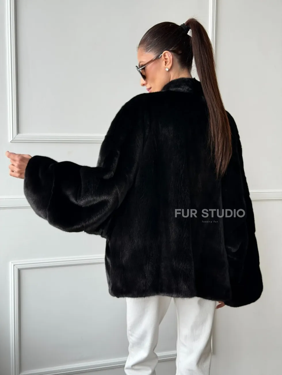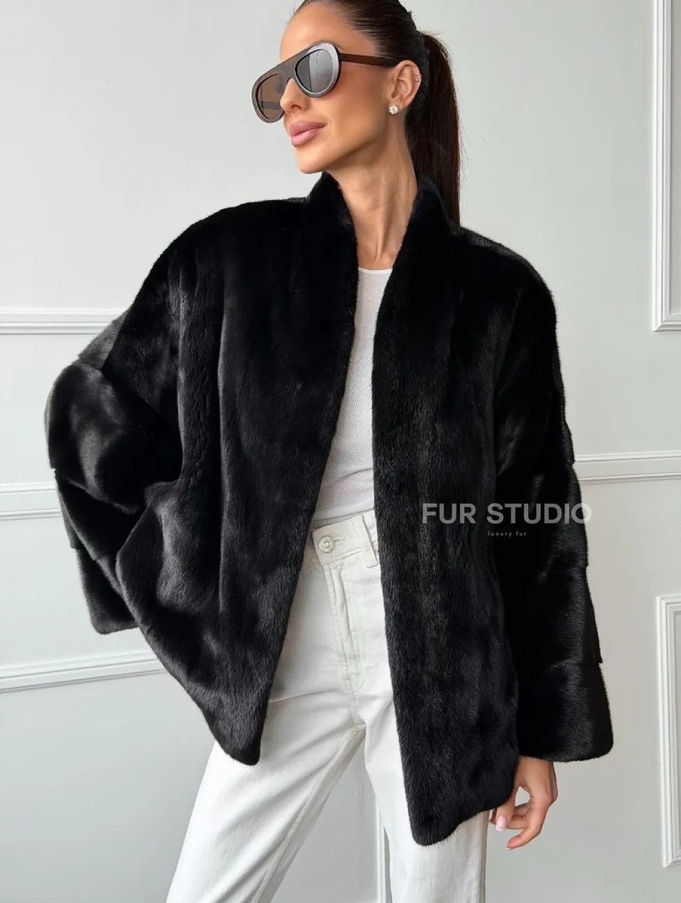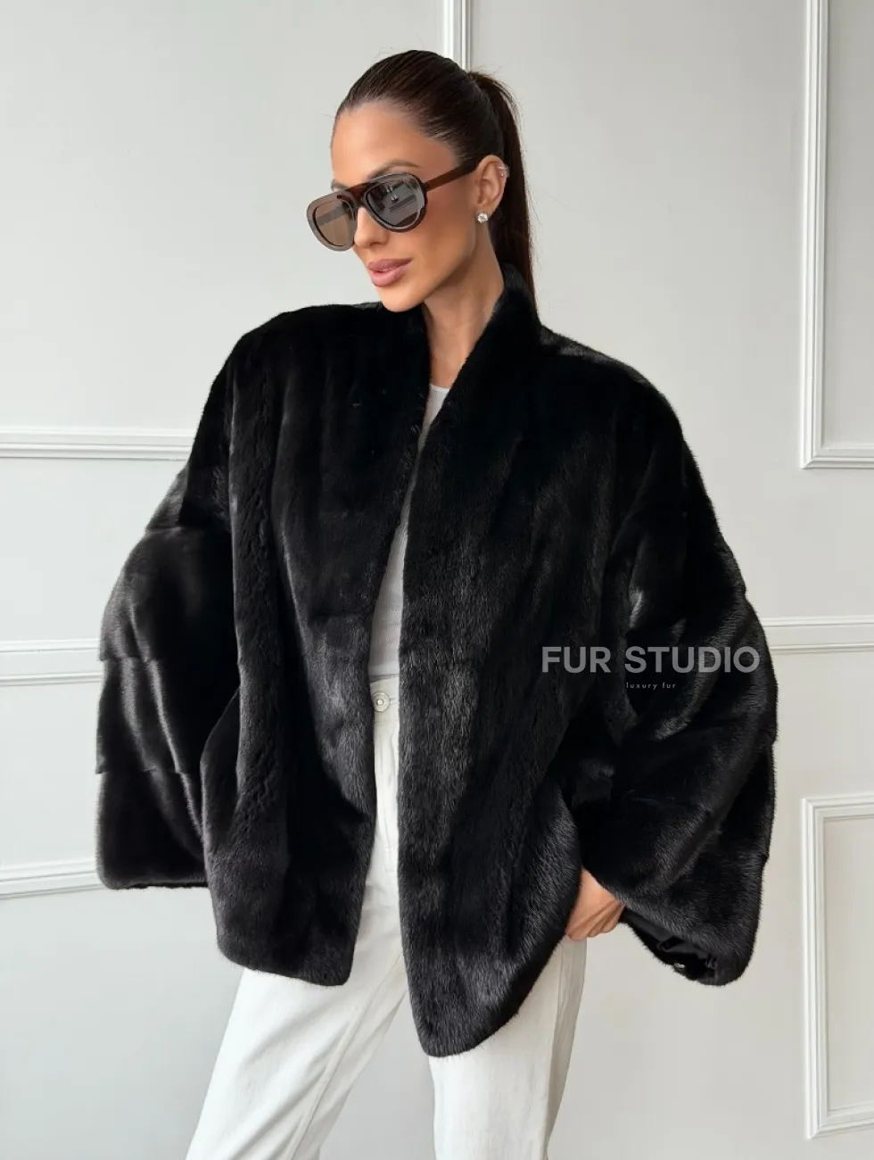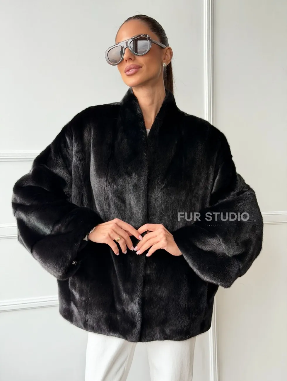 Мех данной шубы аукционная норка, цвет черный. Предлагается в размерах от 40 до 54 (oversize). Длина модели 65-70 см, что выгодно подчеркивает фигуру девушек. Эта модель идеально подойдет для девушек и женщин, предпочитающих роскошные натуральные меха.