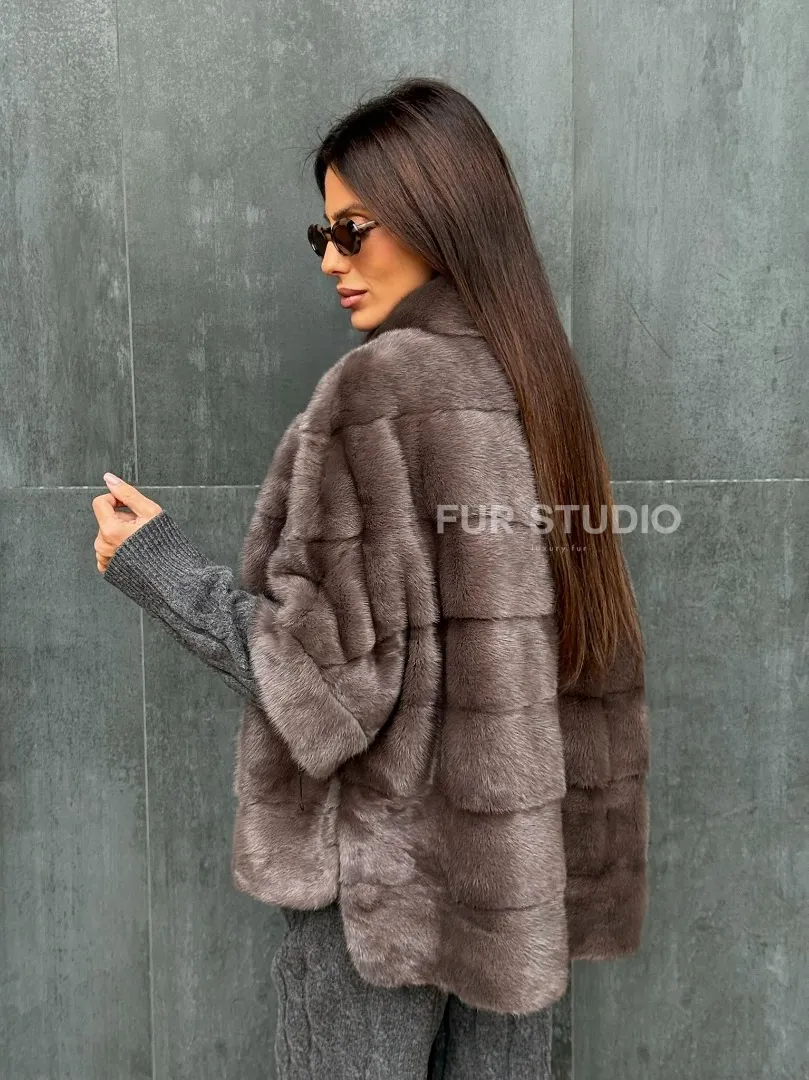 Мех данной шубы аукционная норка , цвет серый. Предлагается в размерах от 40 до 48 (oversize). Длина модели 60-65 см, что выгодно подчеркивает фигуру девушек. Эта модель идеально подойдет для девушек и женщин, предпочитающих роскошные натуральные меха.