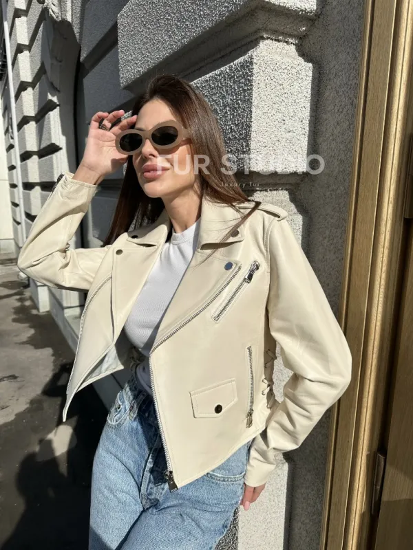 Куртка - косуха из натуральной кожи доступна для покупки в нашем шоуруме Furs Studio в Москве, где также предоставляется удобная доставка во все города России.