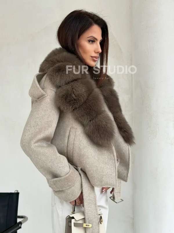 Куртка - пальто с мехом финского песца 102698