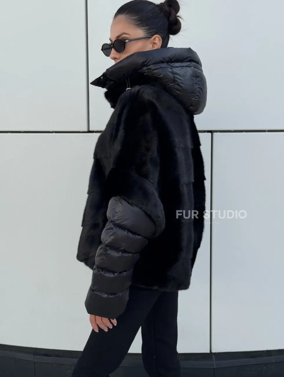 Курточка-жилет трансформер из меха норки с капюшоном доступна для покупки в нашем магазине Furs Studio в Москве, с возможностью доставки в любой город России. Добавьте немного стиля и элегантности в свой гардероб с этой курткой, которая будет вам служить многие годы, подчеркивая ваш неповторимый стиль.
