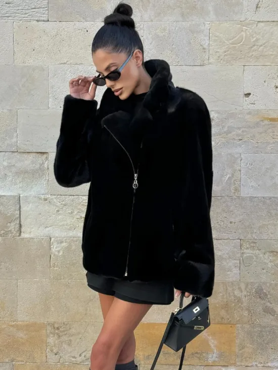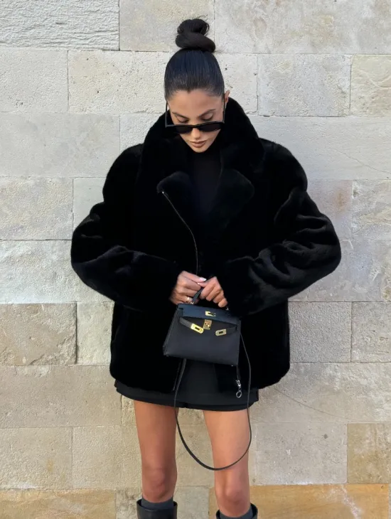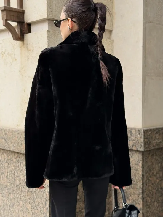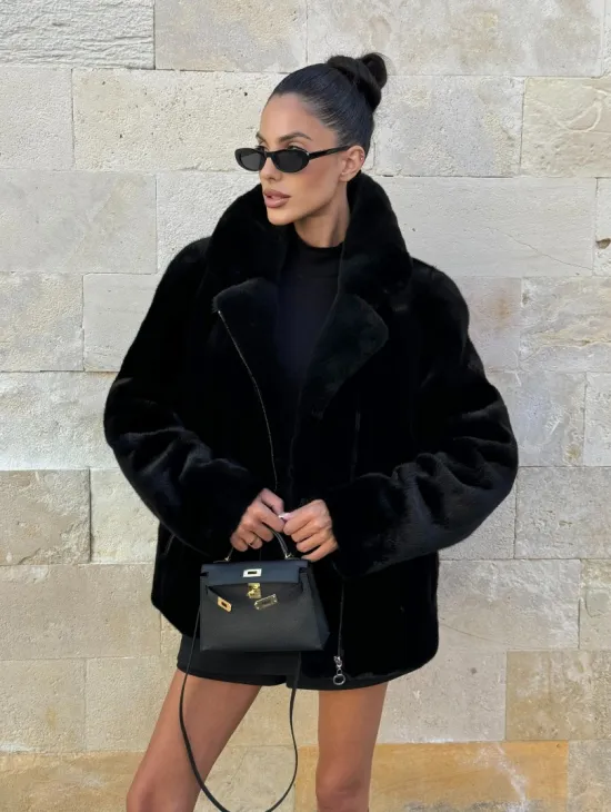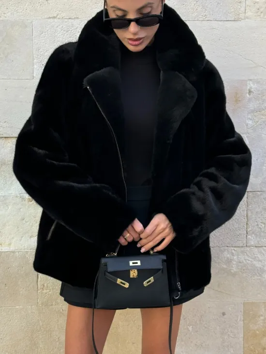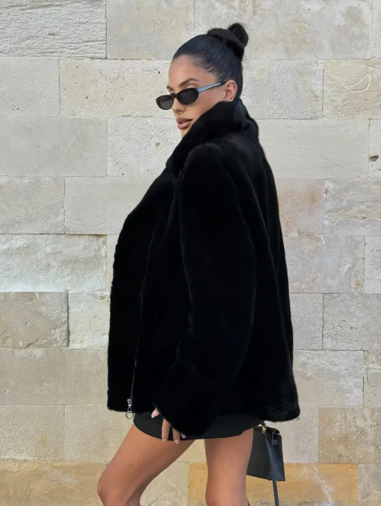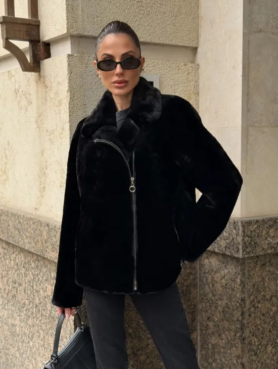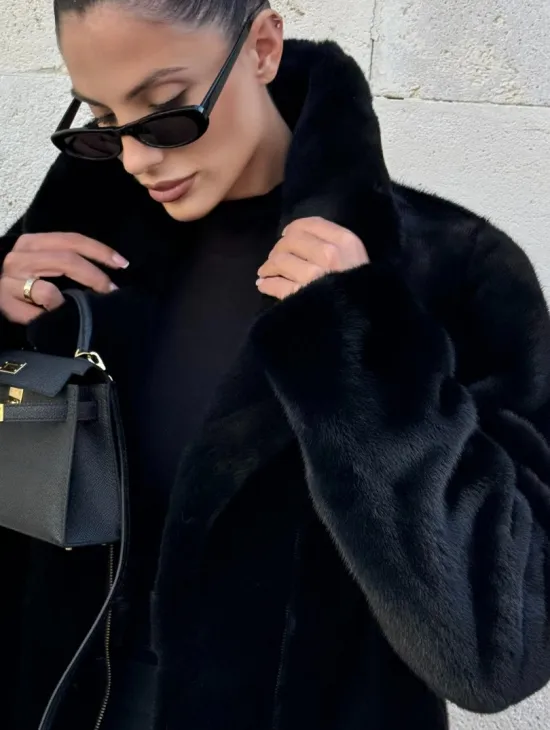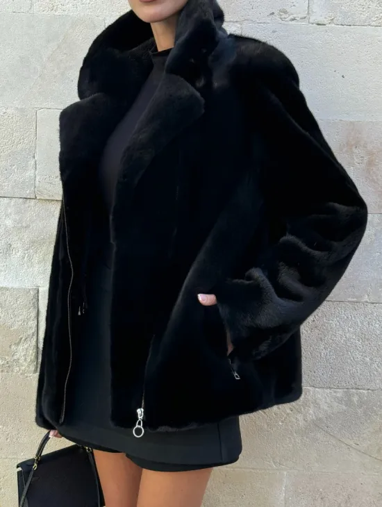 Материал выбранной модели — аукционная норка, доступна в цвете черный. Куртка предлагается в разнообразии размеров, от S до XL, а ее длина составляет 55-60 см, что выигрышно подчеркивает вашу фигуру. Этот вариант идеально подходит для тех, кто ценит роскошь и утонченность натуральных материалов.