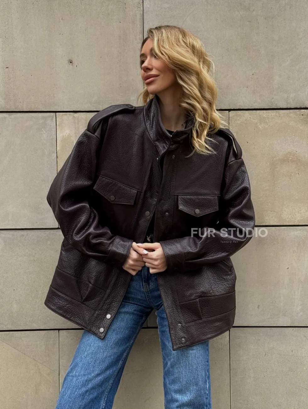 Восхититесь элегантностью и несравненным комфортом с нашей эксклюзивной коллекцией кожаных изделий. Изготовленная из первоклассной натуральной кожи, Кутка - бомбер оверсайз из натуральной кожи в стиле Y2K не только согреет вас в прохладные дни, но и подчеркнет ваш изысканный вкус. Уникальный дизайн и высокое качество делают наши представленные образцы идеальным выбором для утончённых образов.