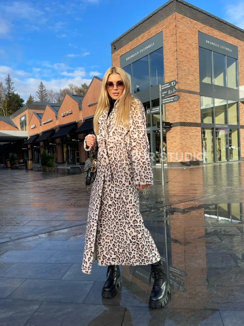 Леопардовая шуба из натуральной шерсти – модель для утонченных леди. Леопардовый принт подчеркнет стиль и неординарность владелицы. Качество шубы будет радовать хозяйку не один сезон. Длина комфортна в носке и бережно заботится о тепле ножек, что важно для любительниц коротких нарядов в прохладное время года. Натуральная шерсть позволит поддерживать комфортную температуру тела в холода.