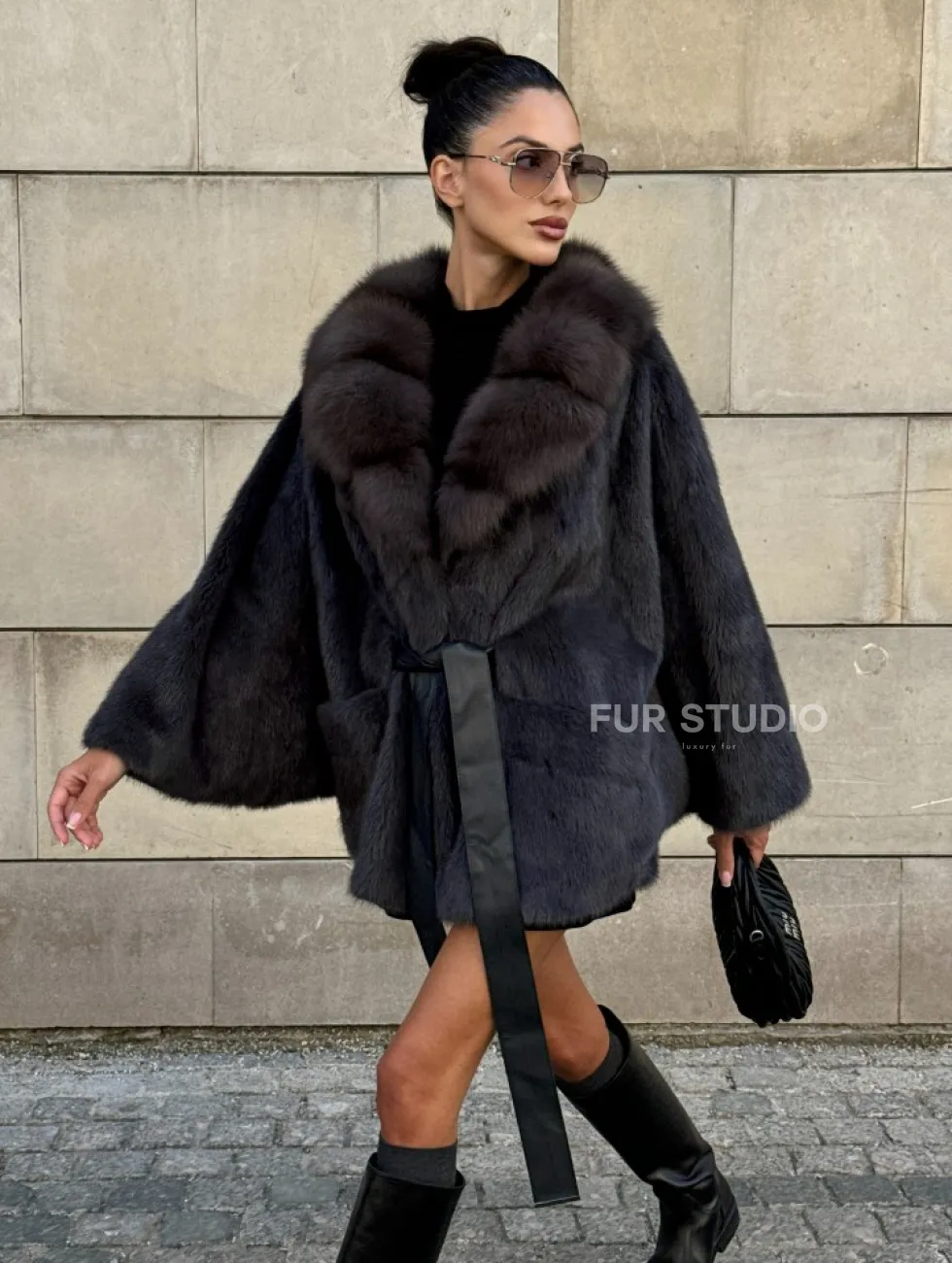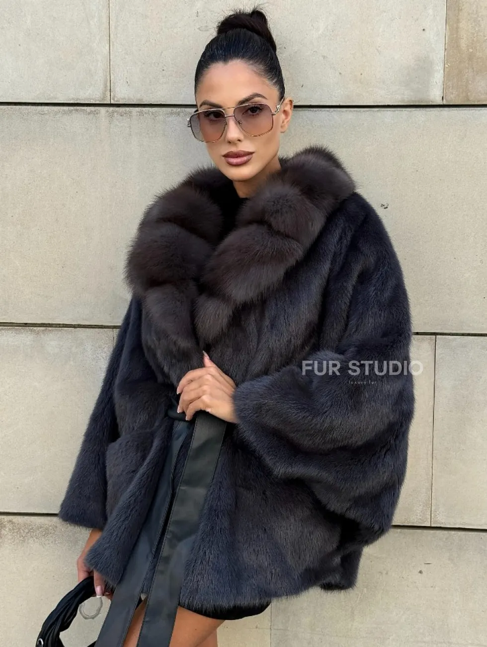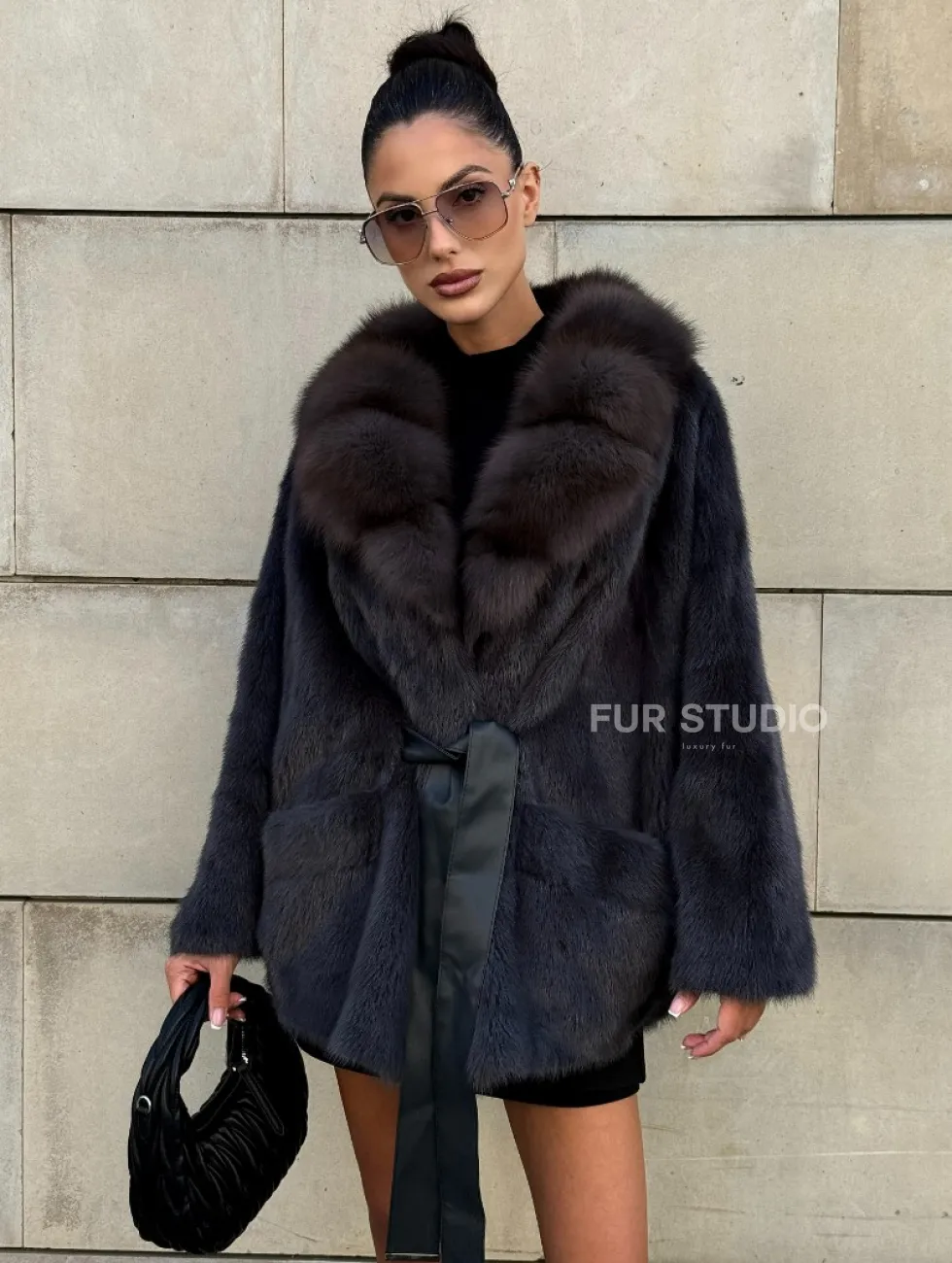 Летучая мышь из меха норки с воротником из куницы - цвет темный графит доступна для покупки в нашем шоуруме Furs Studio в Москве. У нас так же есть доставка во все города России. Добавьте немного роскоши в свой гардероб с этой шубой, которая будет служить вам многие годы.