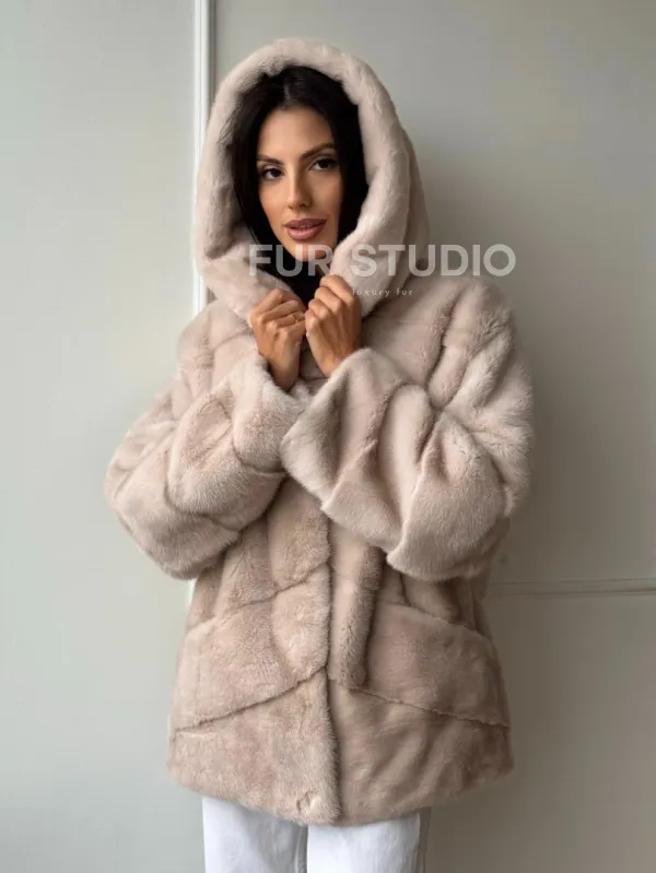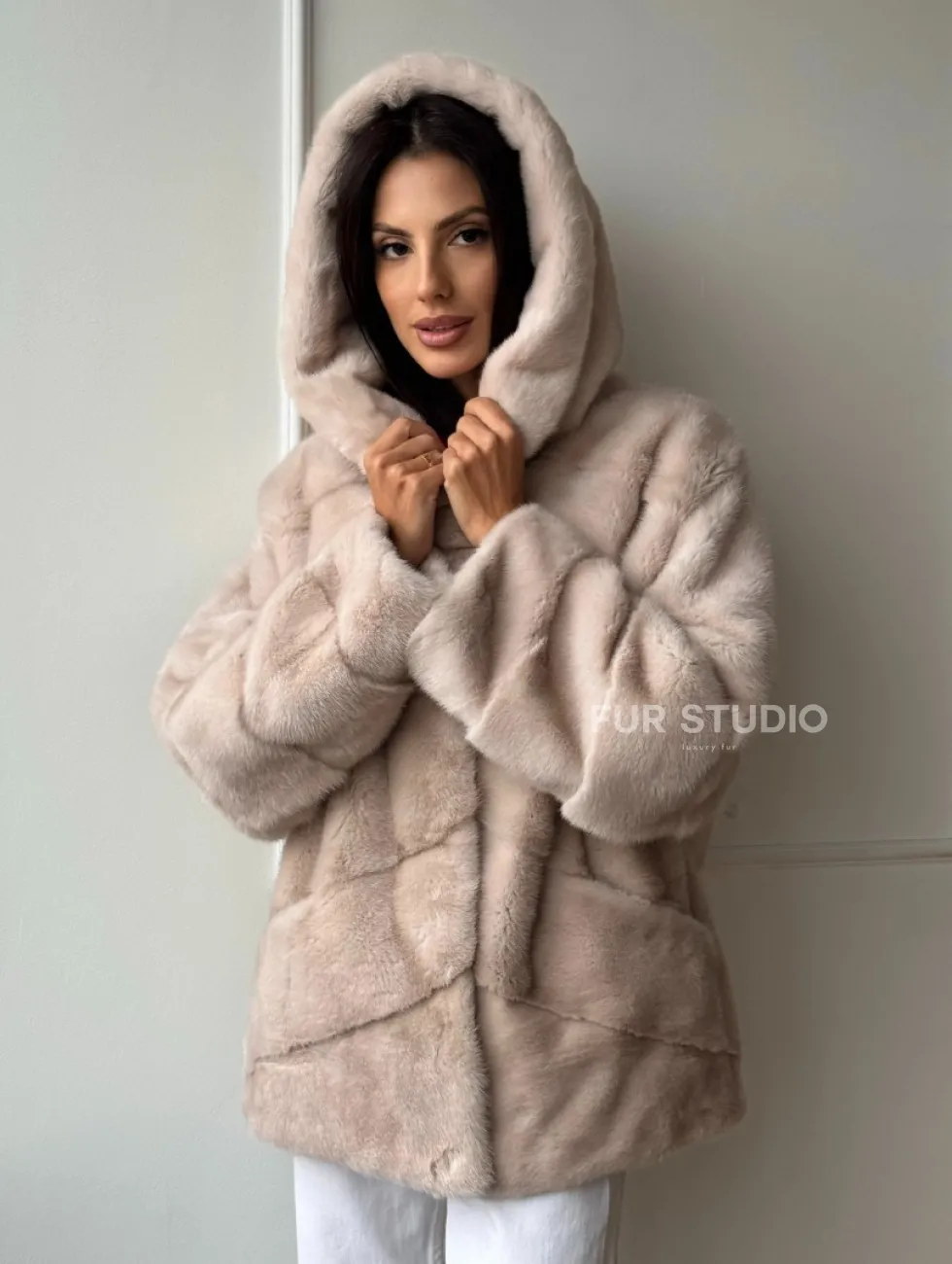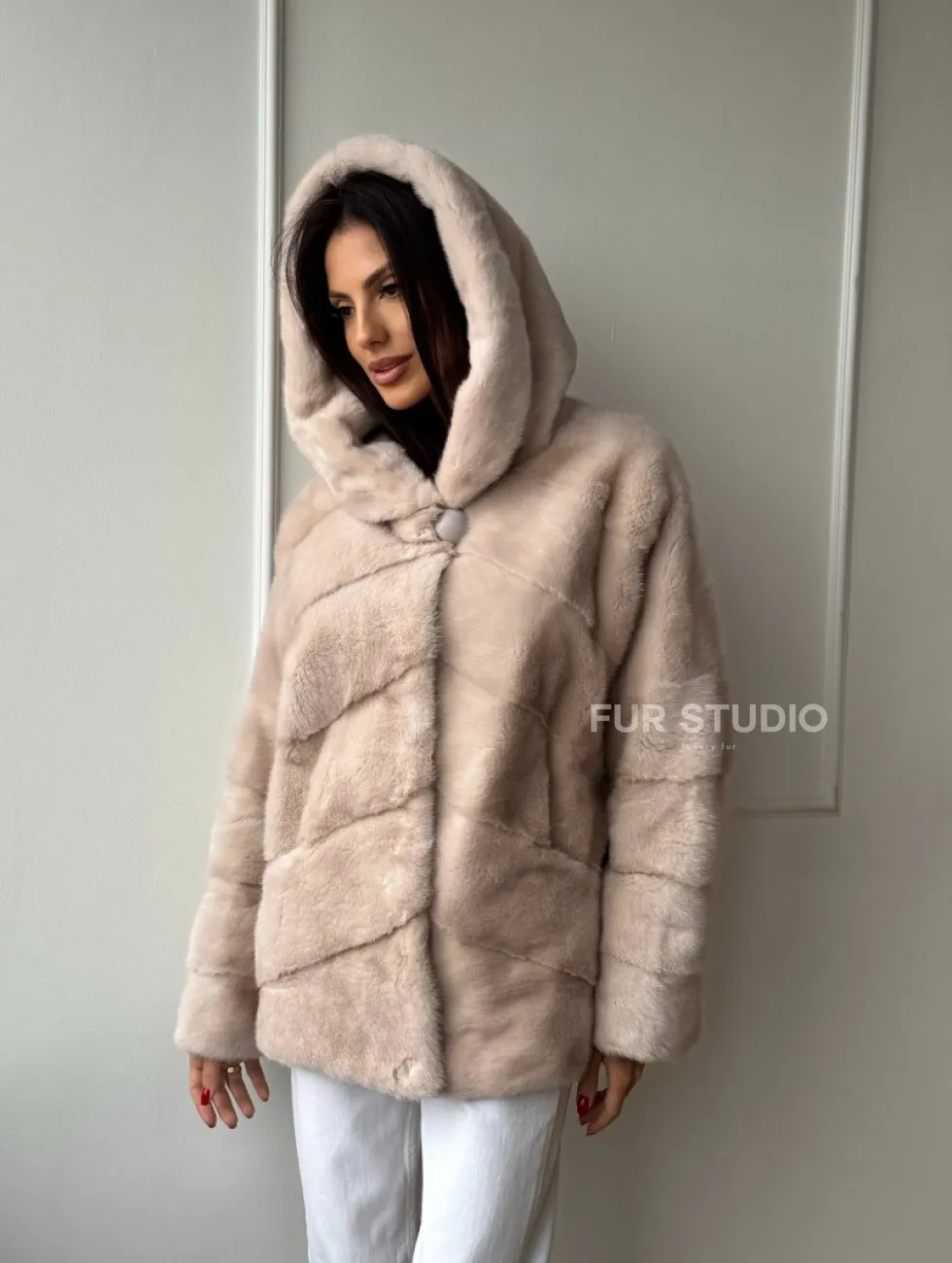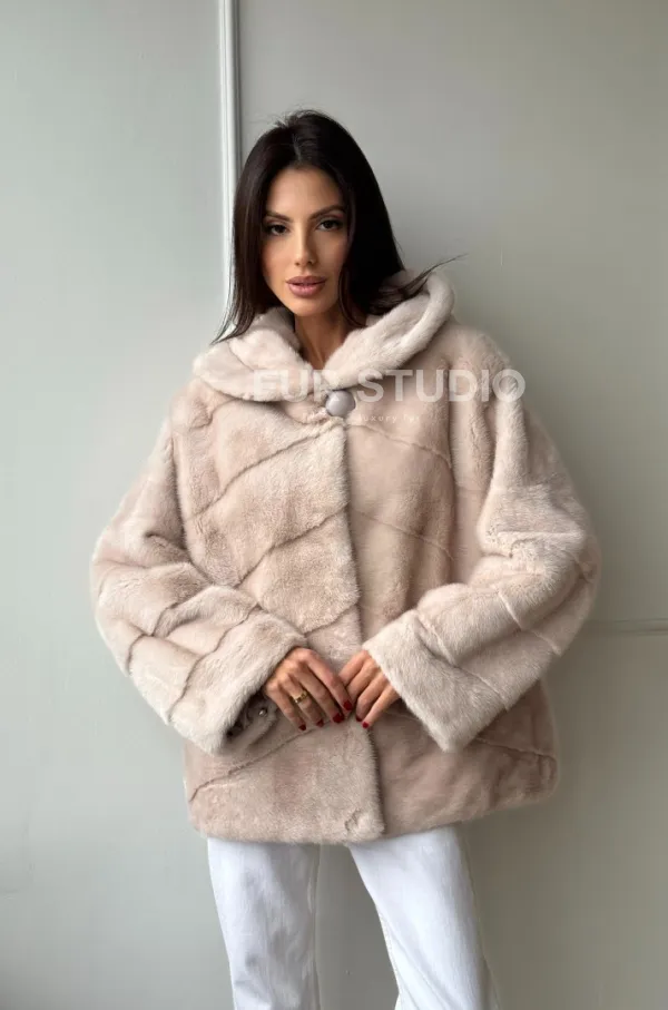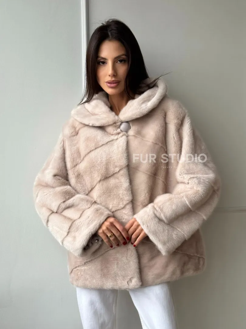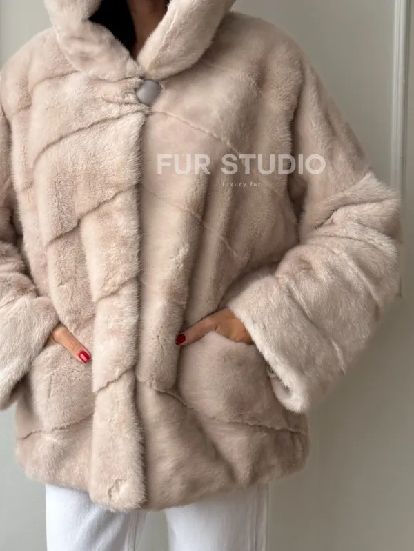 Меховая куртка - шуба из меха норки с капюшоном в цвете пудра доступна для покупки в нашем шоуруме Furs Studio в Москве. У нас так же есть доставка во все города России. Добавьте немного роскоши в свой гардероб с этой шубой, которая будет служить вам многие годы.