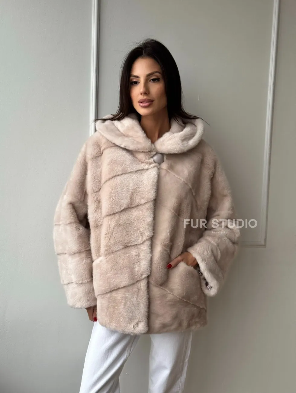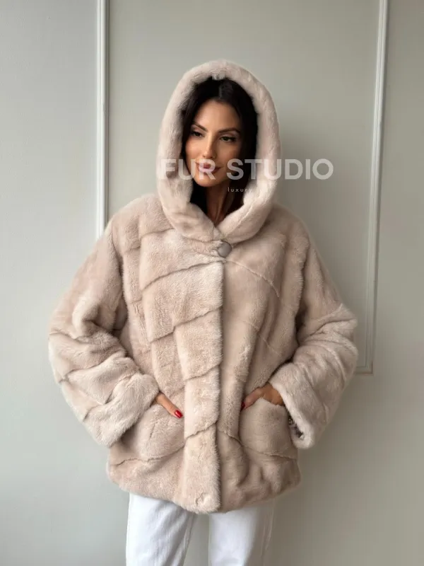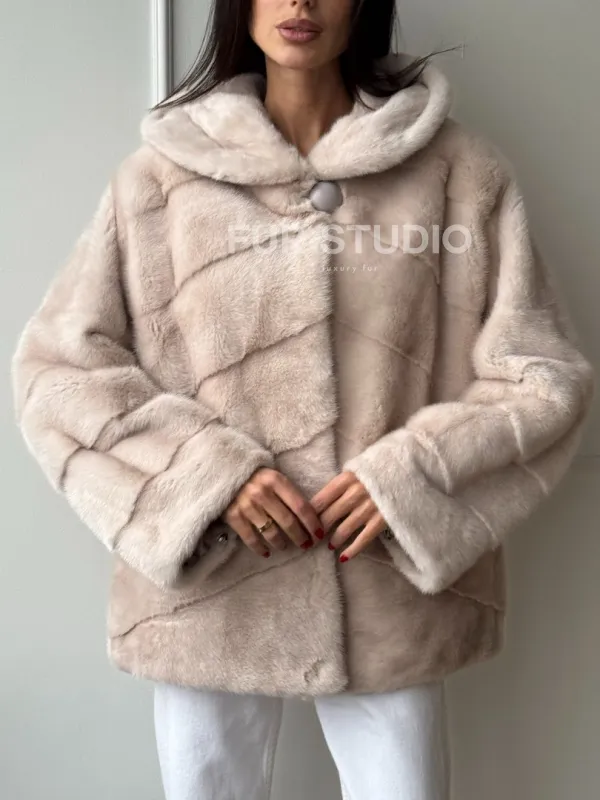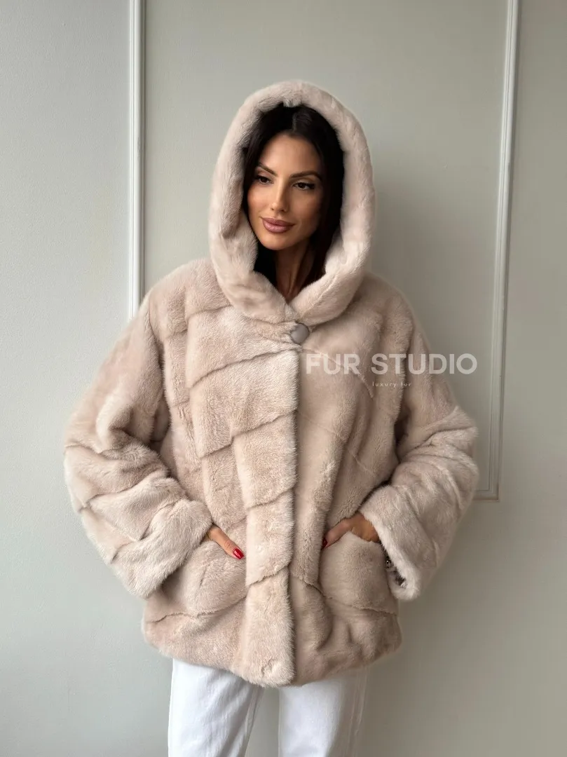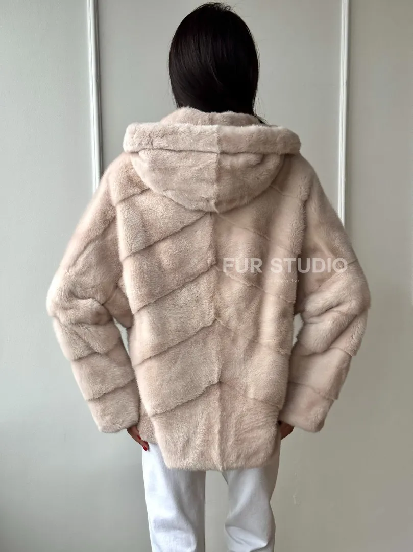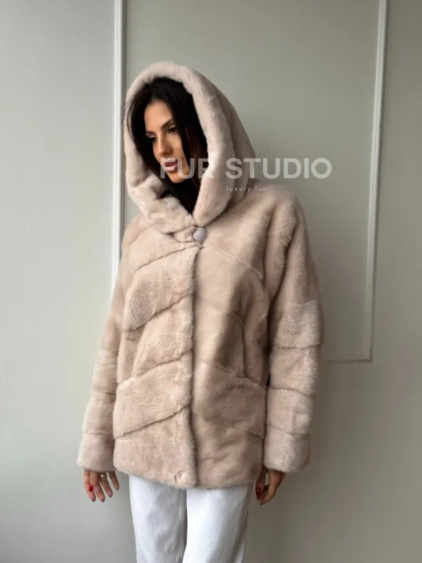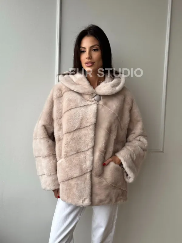 Меховая куртка - шуба из меха норки с капюшоном в цвете пудра доступна для покупки в нашем шоуруме Furs Studio в Москве. У нас так же есть доставка во все города России. Добавьте немного роскоши в свой гардероб с этой шубой, которая будет служить вам многие годы.