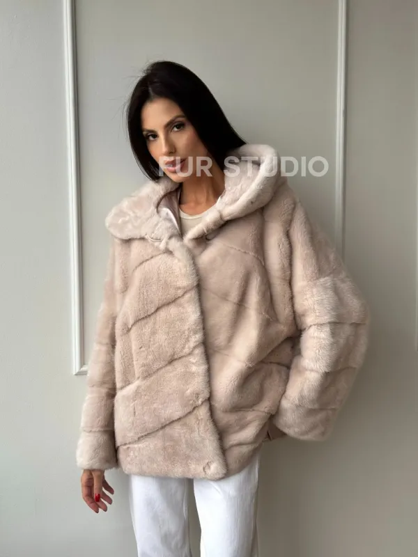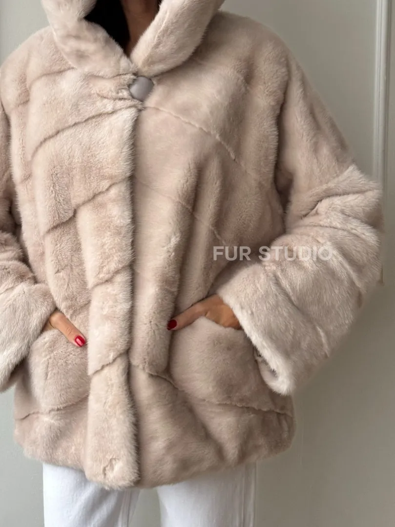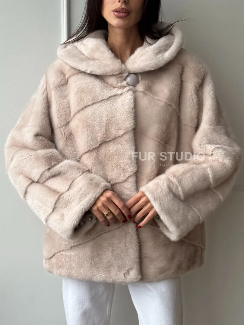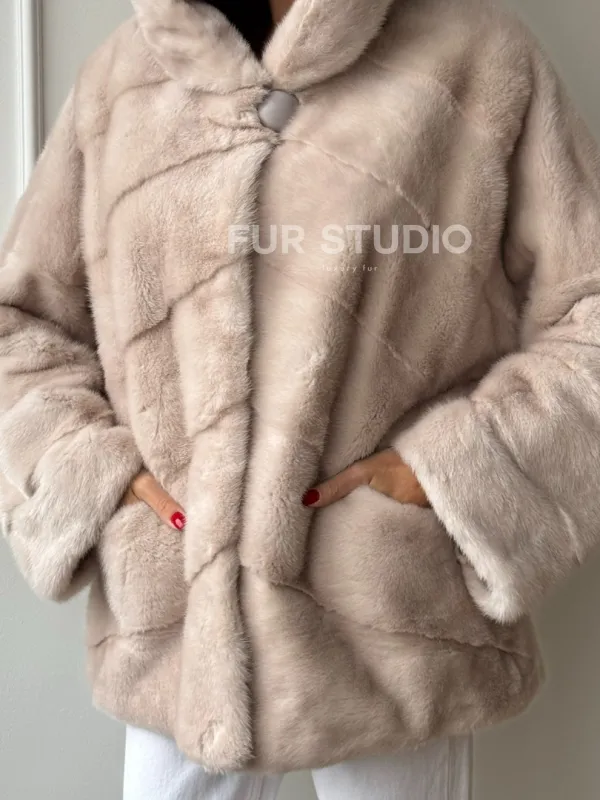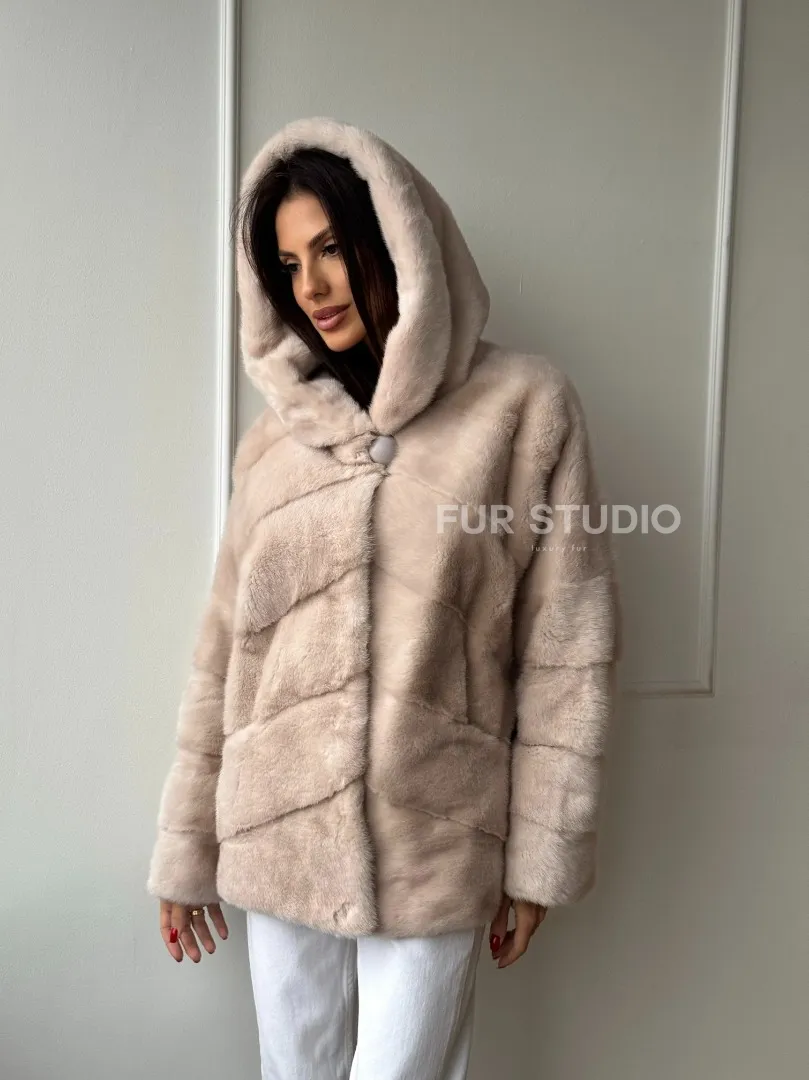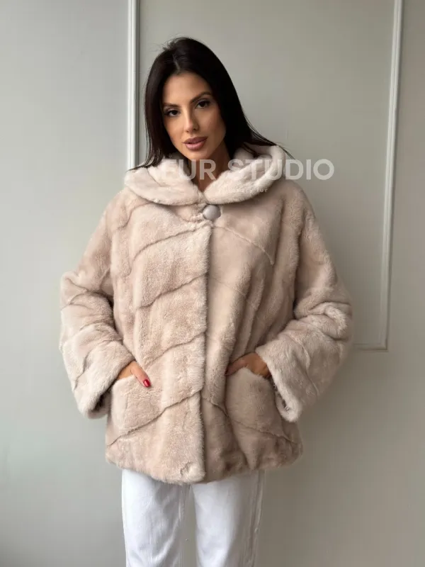 Меховая куртка - шуба из меха норки с капюшоном в цвете пудра доступна для покупки в нашем шоуруме Furs Studio в Москве. У нас так же есть доставка во все города России. Добавьте немного роскоши в свой гардероб с этой шубой, которая будет служить вам многие годы.