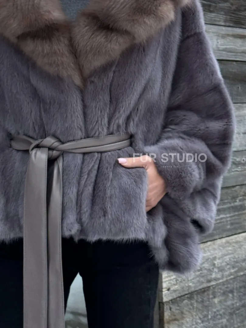 Мех данной шубы аукционная норка, цвет серый. Предлагается в размерах от 38 до 60 (oversize). Длина модели 50-55 см, что выгодно подчеркивает фигуру девушек. Эта модель идеально подойдет для девушек и женщин, предпочитающих роскошные натуральные меха.