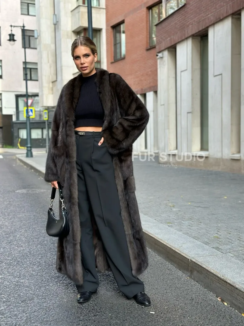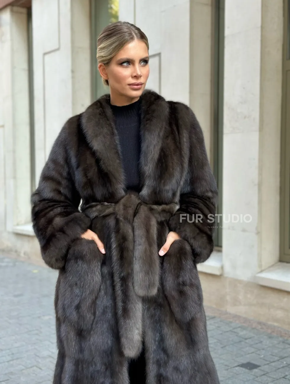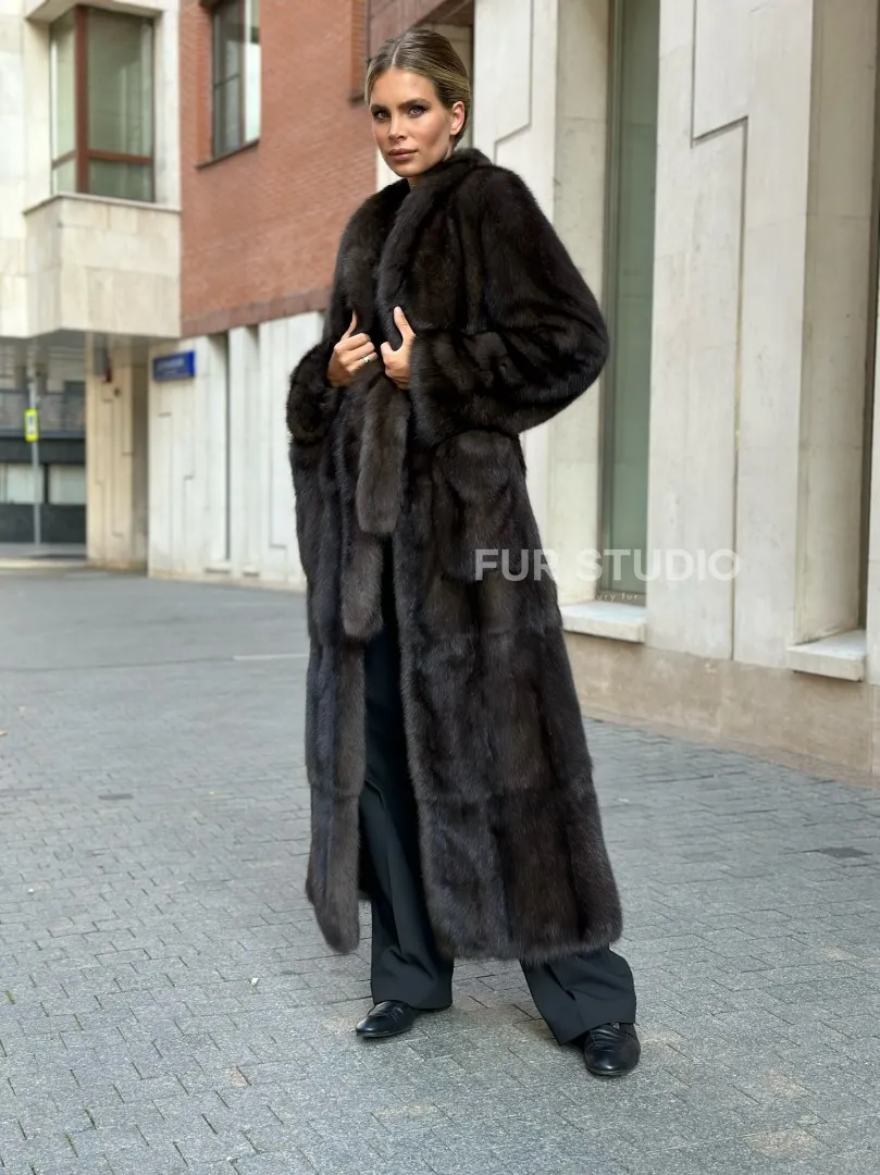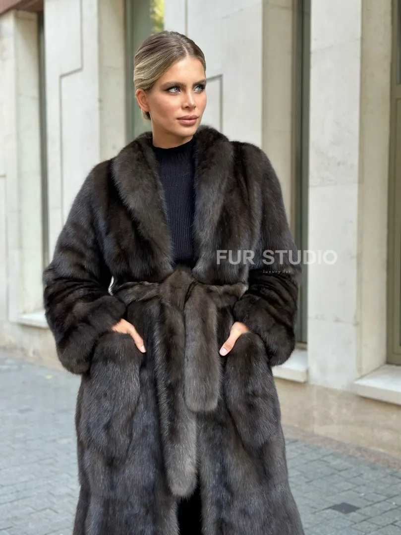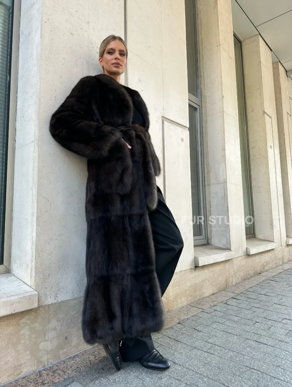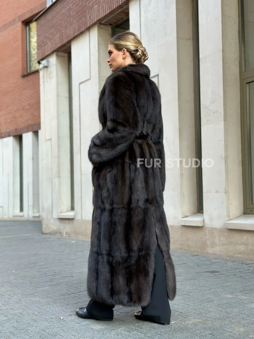 Купить длинное пальто из натурального меха баргузинского соболя с проседью с примеркой вы можете в нашем шоуруме студии меха Fur Studio в Москве. Также организовываем доставку заказов по городу, области, в другие регионы.