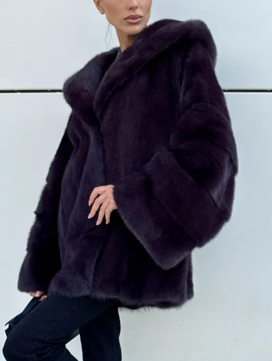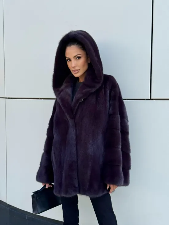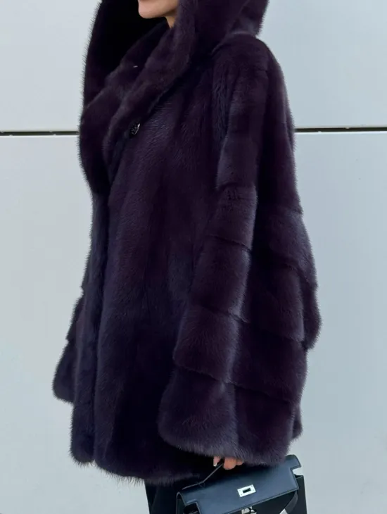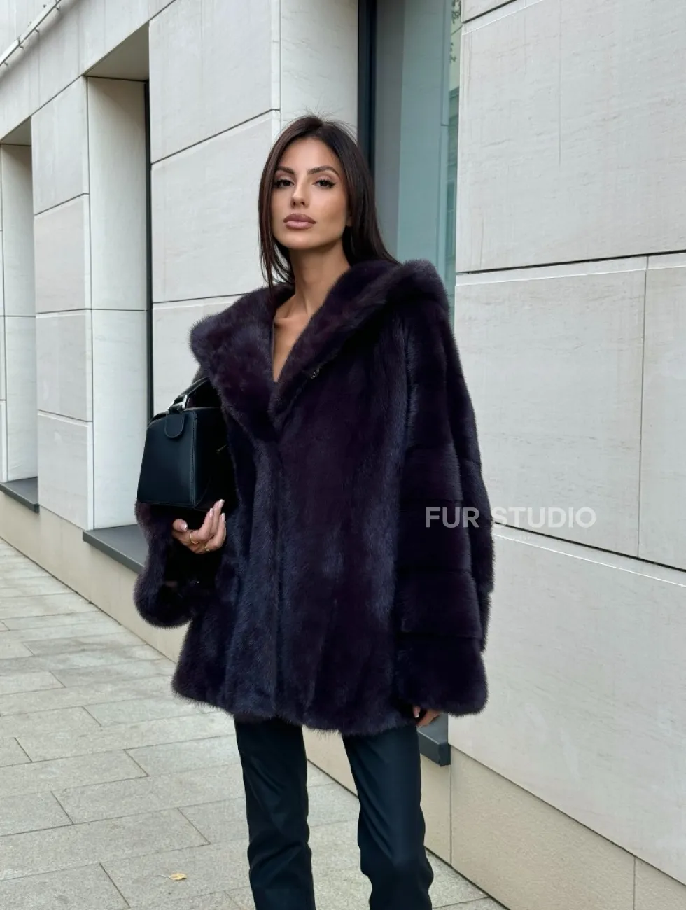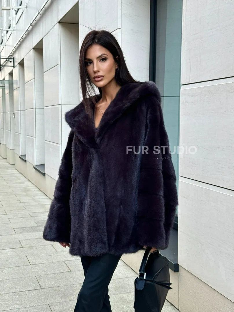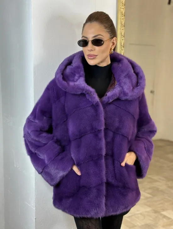 Меховое полупальто из аукционной норки с капюшоном Dark violet доступна для покупки в нашем шоуруме Furs Studio в Москве. У нас так же есть доставка во все города России. Добавьте немного роскоши в свой гардероб с этой шубой, которая будет служить вам многие годы.