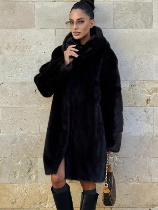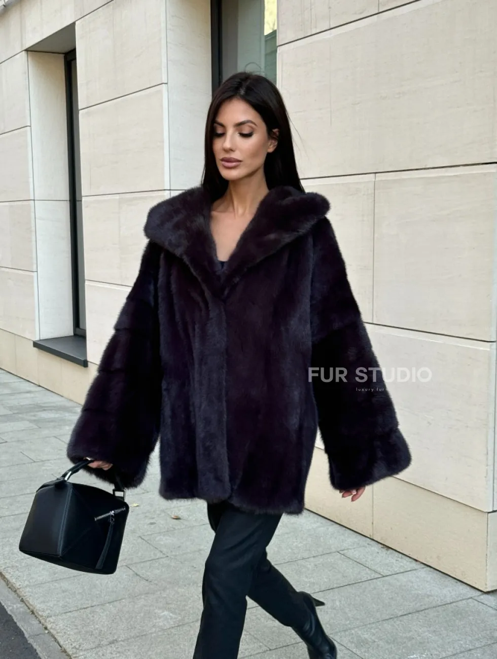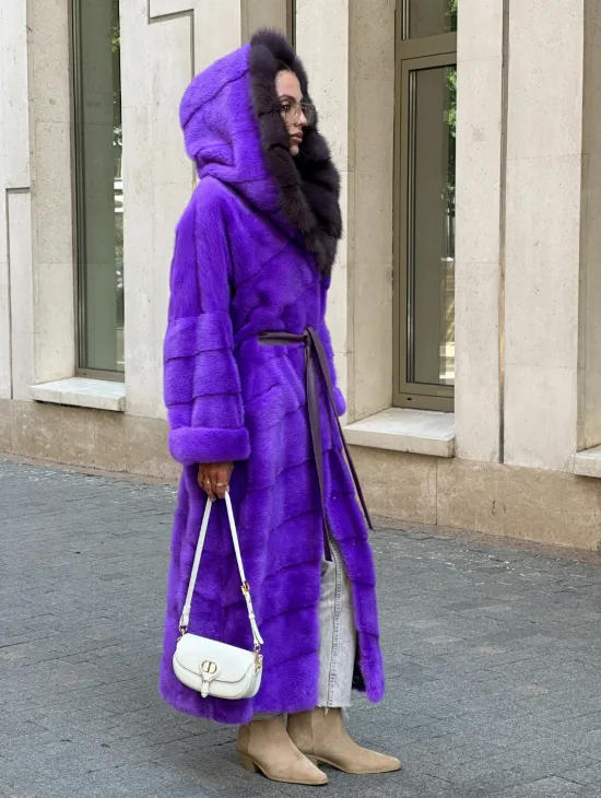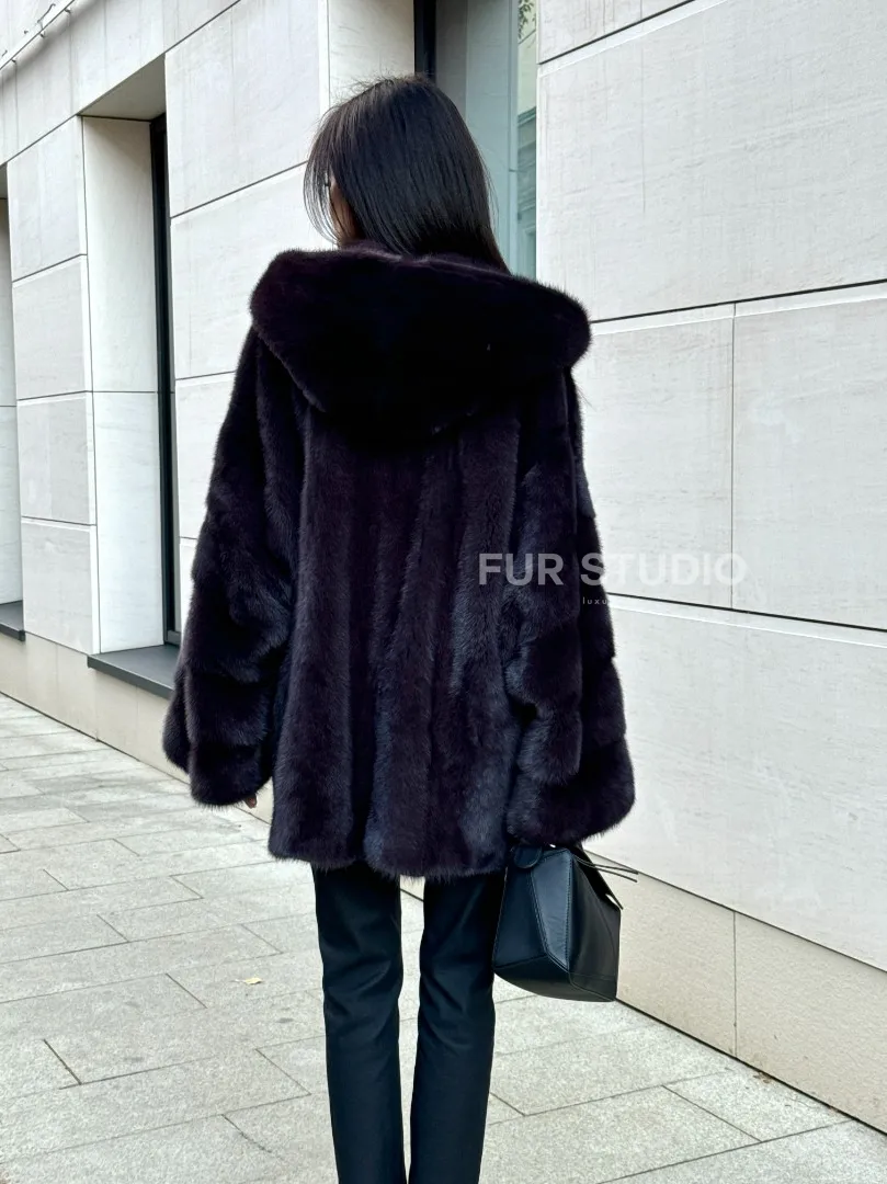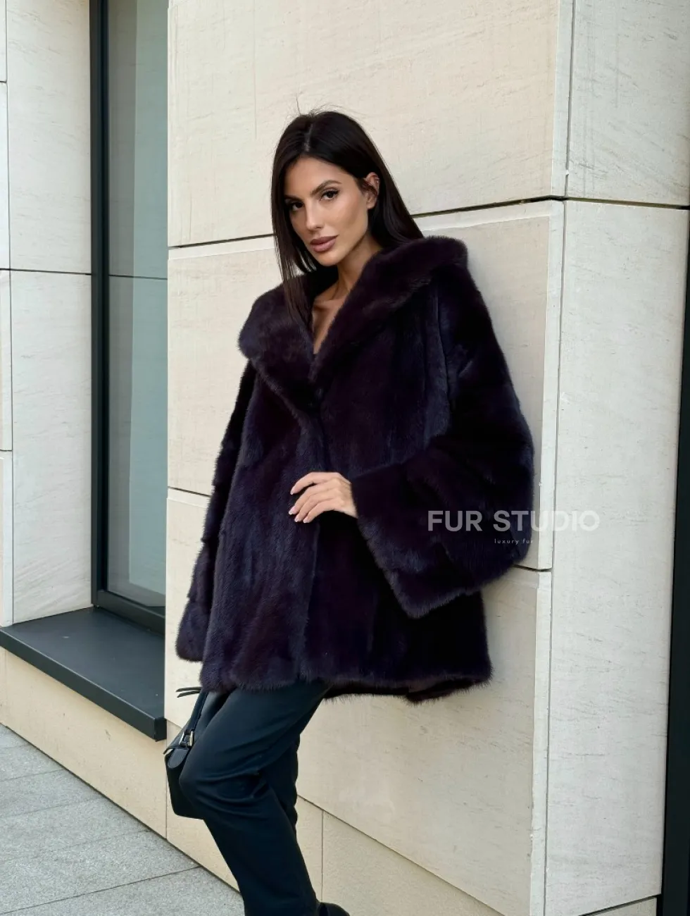 Меховое полупальто из аукционной норки с капюшоном Dark violet доступна для покупки в нашем шоуруме Furs Studio в Москве. У нас так же есть доставка во все города России. Добавьте немного роскоши в свой гардероб с этой шубой, которая будет служить вам многие годы.