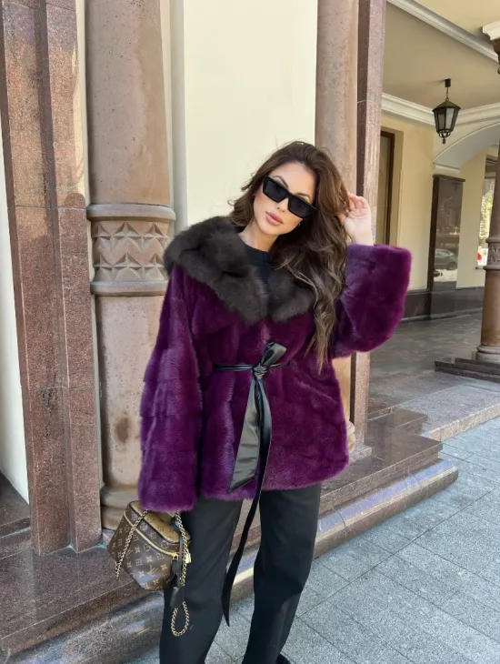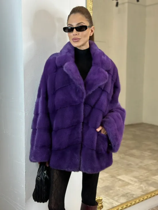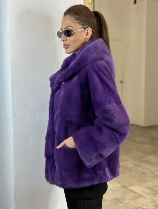 Мех данной шубы аукционная норка, цвет фиолетовый. Предлагается в размерах от 42 до 54. Длина модели 70-75 см, что выгодно подчеркивает фигуру девушек. Эта модель идеально подойдет для девушек и женщин, предпочитающих роскошные натуральные меха.