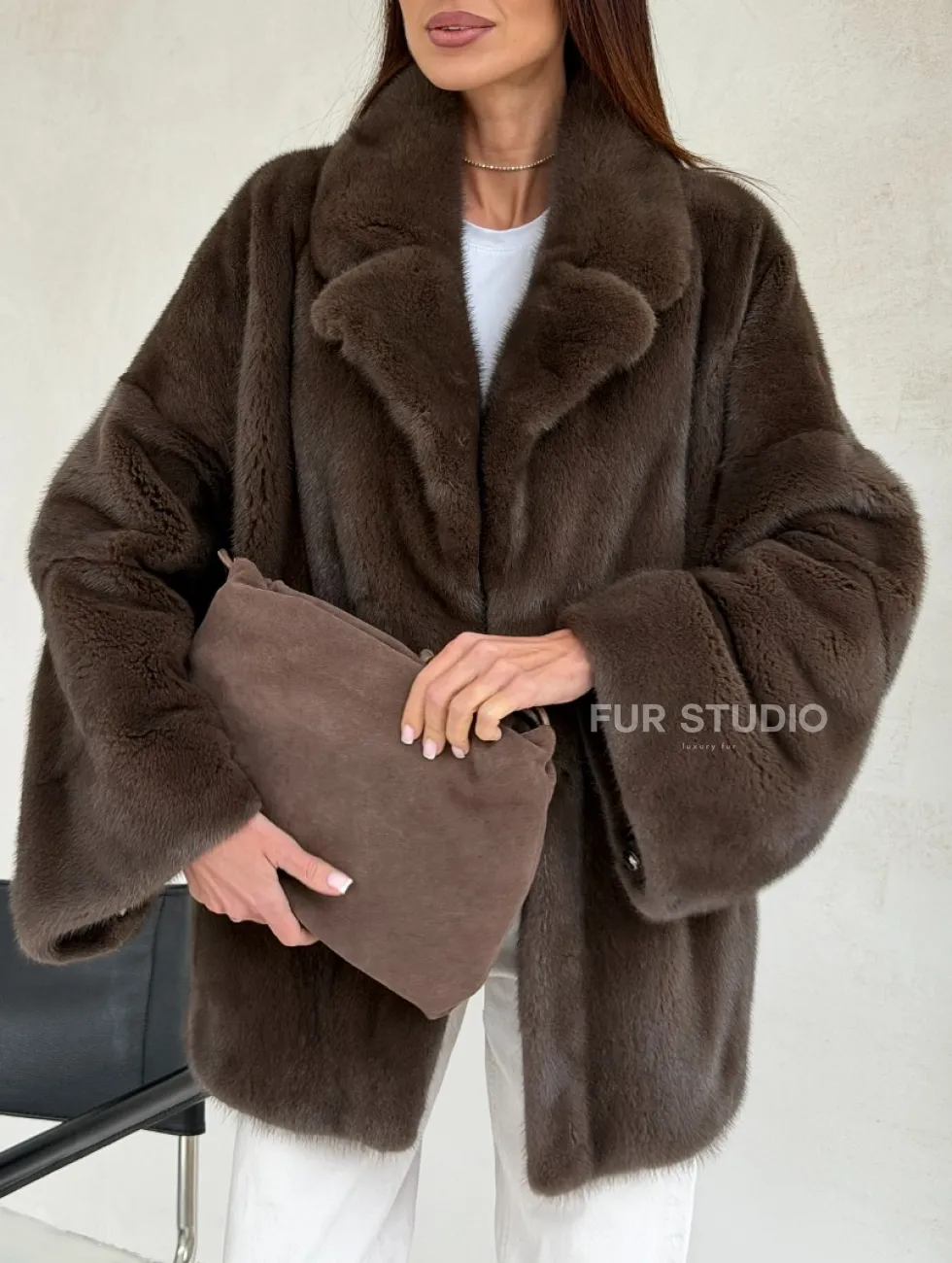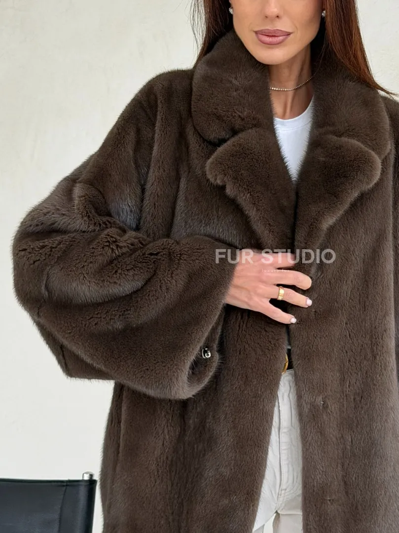 Мех данной шубы аукционная норка , цвет коричневый. Предлагается в размерах от 42 до 50. Длина модели 70-75 см, что выгодно подчеркивает фигуру девушек. Эта модель идеально подойдет для девушек и женщин, предпочитающих роскошные натуральные меха.