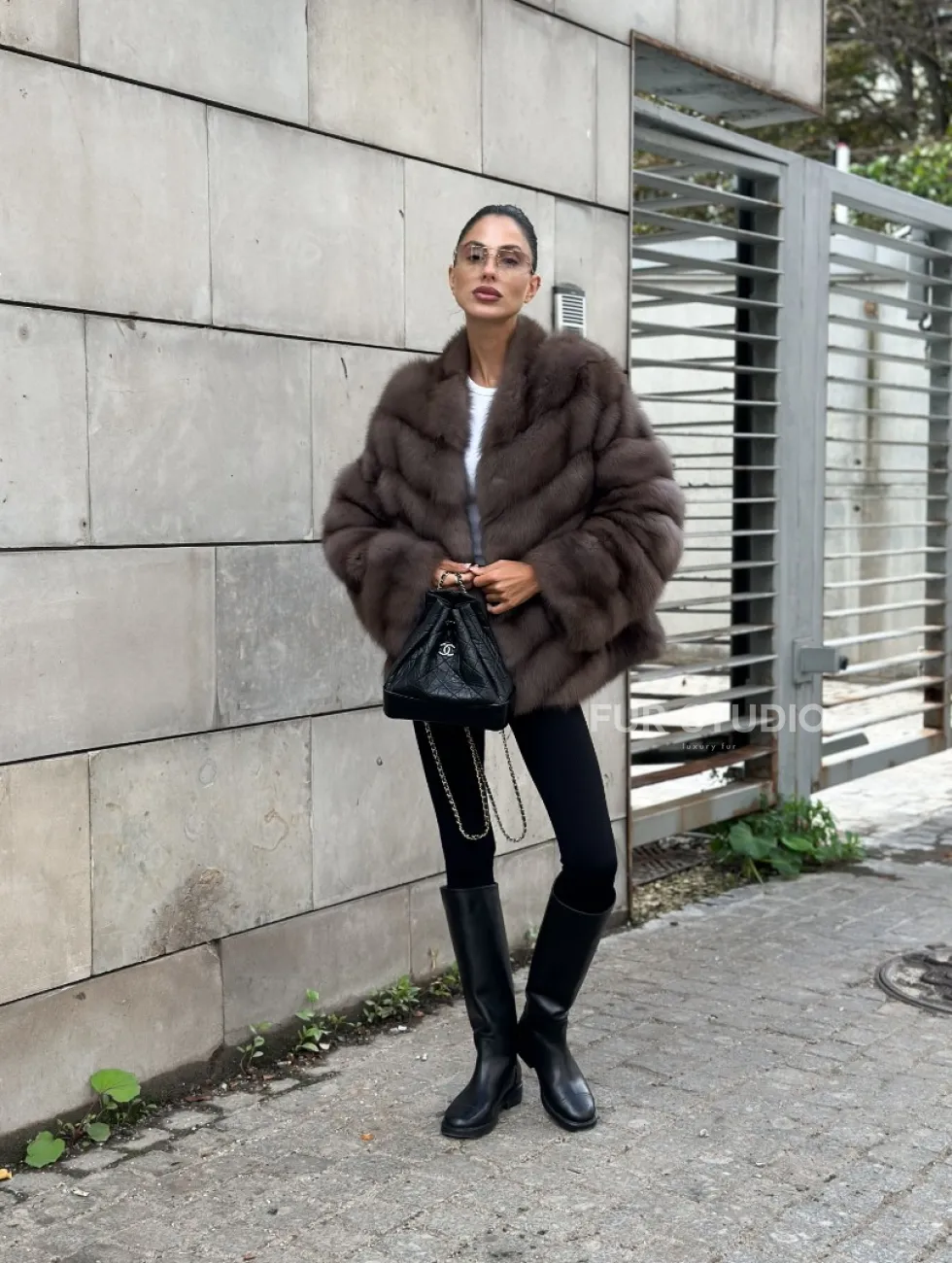 Меховой жакет - шуба из куницы цвет трюфель доступна для покупки в нашем шоуруме Furs Studio в Москве. У нас так же есть доставка во все города России. Добавьте немного роскоши в свой гардероб с этой шубой, которая будет служить вам многие годы.