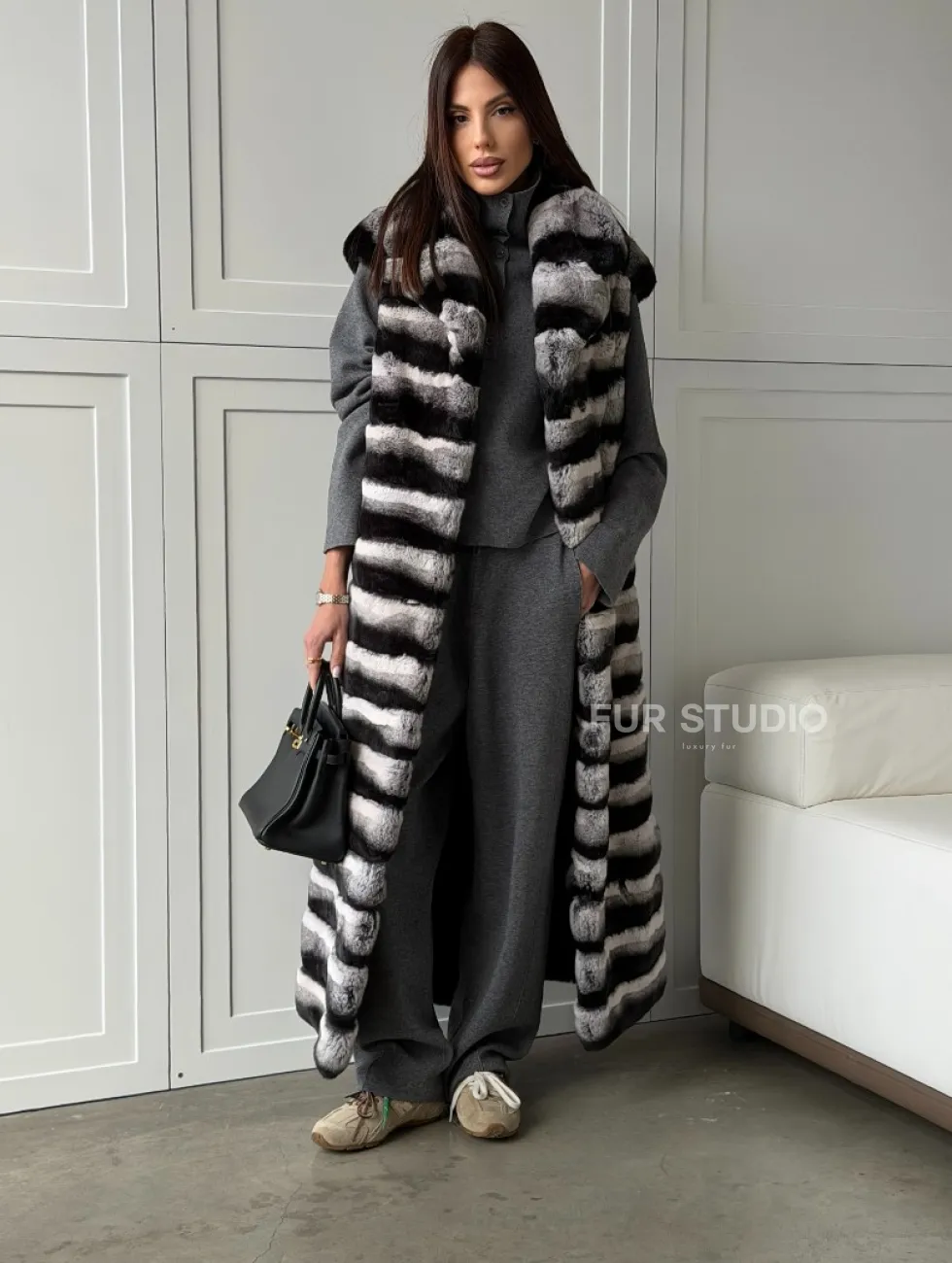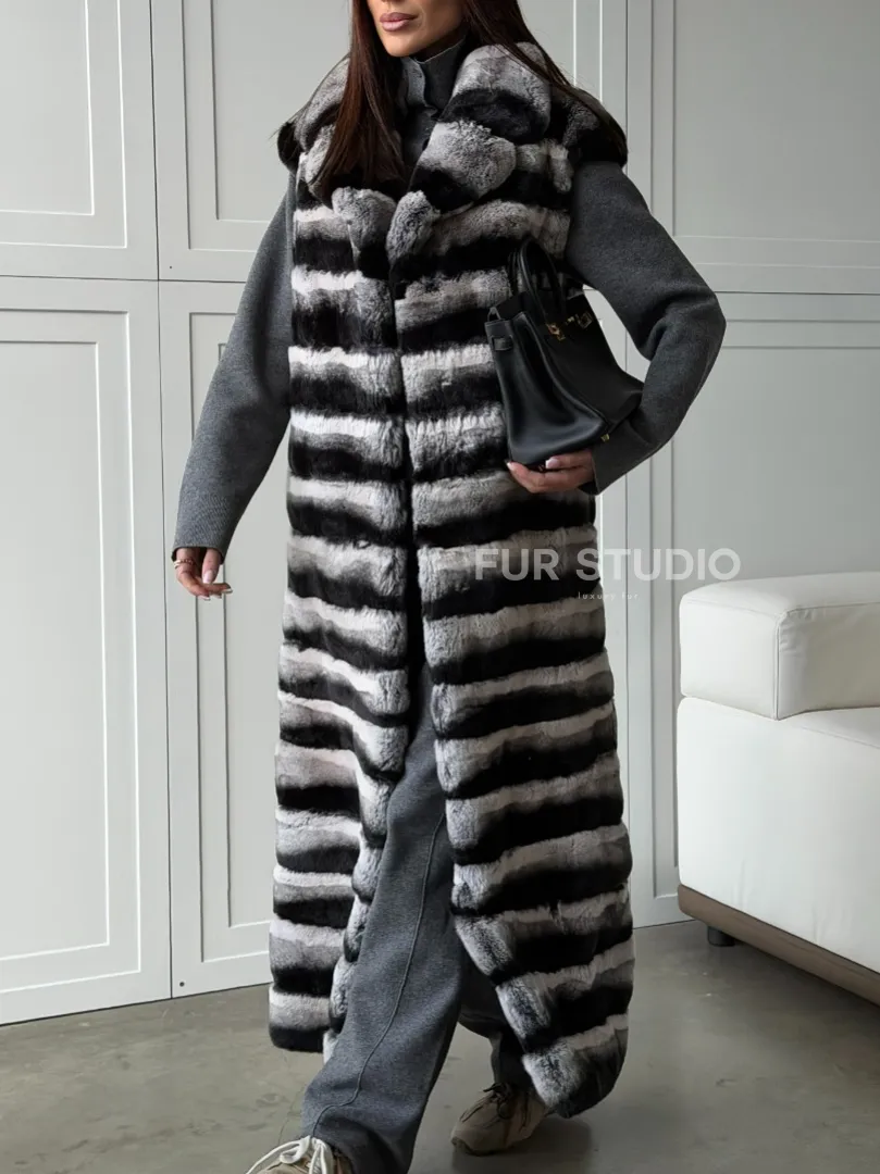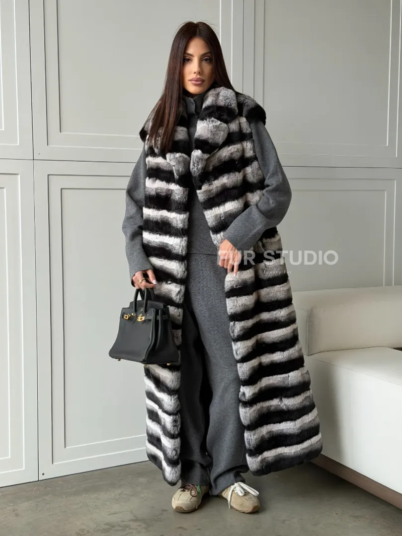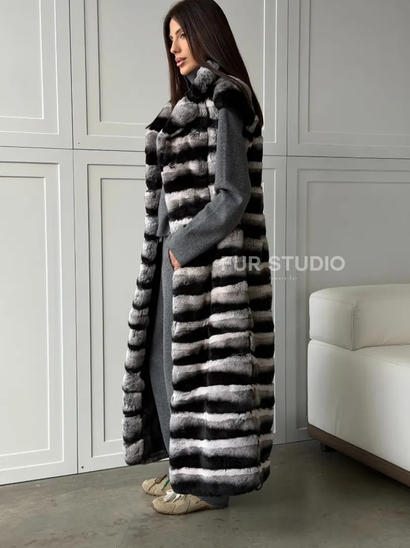 Жилет из меха орилага – отличный вариант для девушек, у кого ограничен бюджет. Изделие никогда не выйдет из моды. Удлиненный жилет зрительно увеличивает рост владелицы. Оригинальная расцветка подчеркнет роскошный оттенок волос и глаз хозяйки. Прямой крой сроет недостатки фигуры. Роскошный воротник позаботится о комфорте шеи и сделает акцент на ее грациозности.