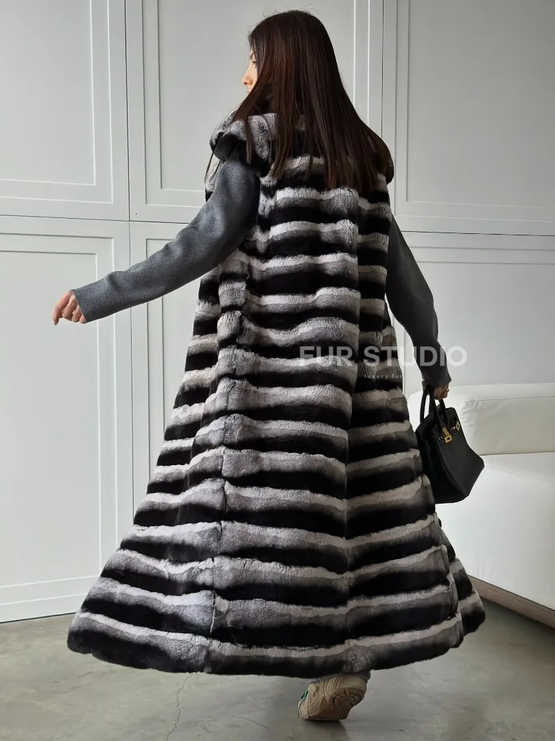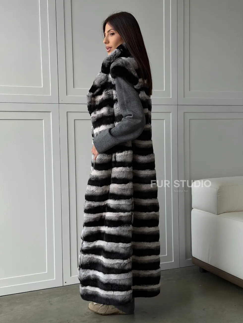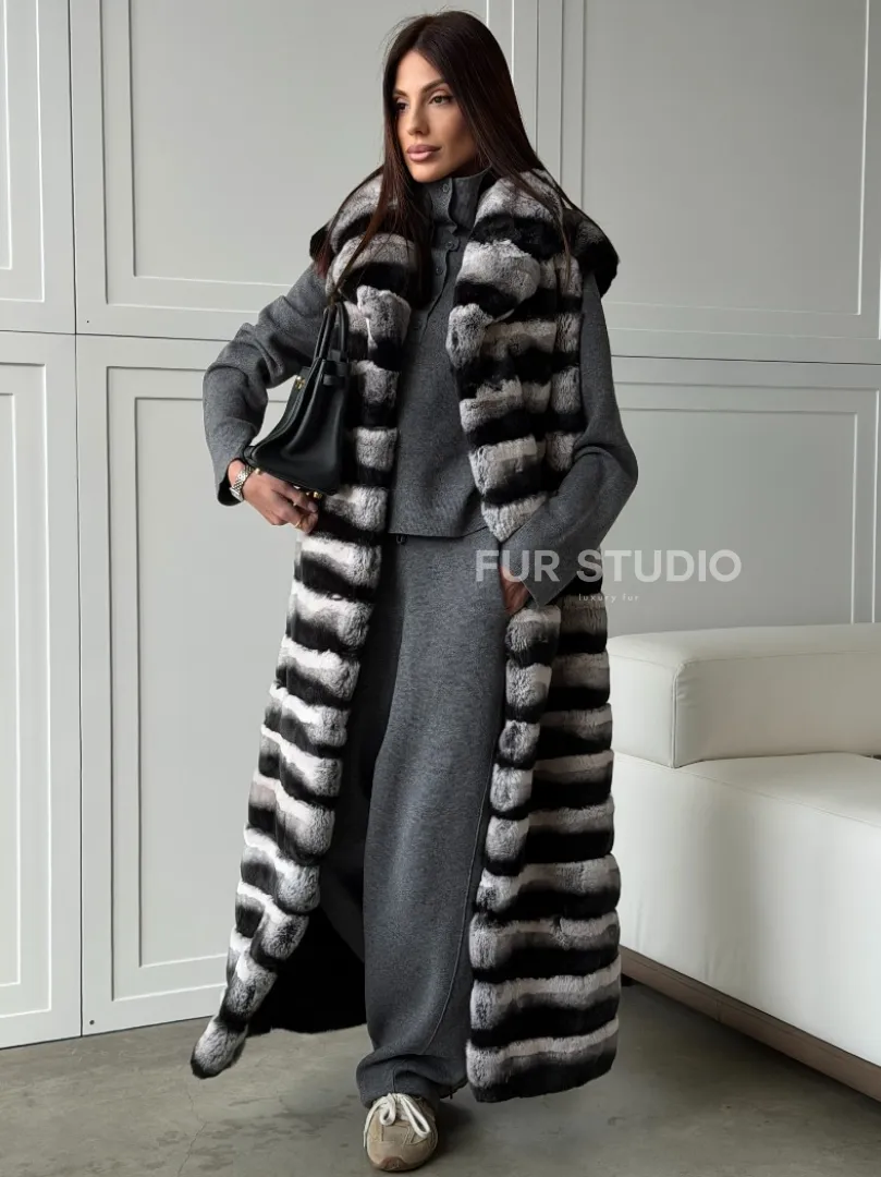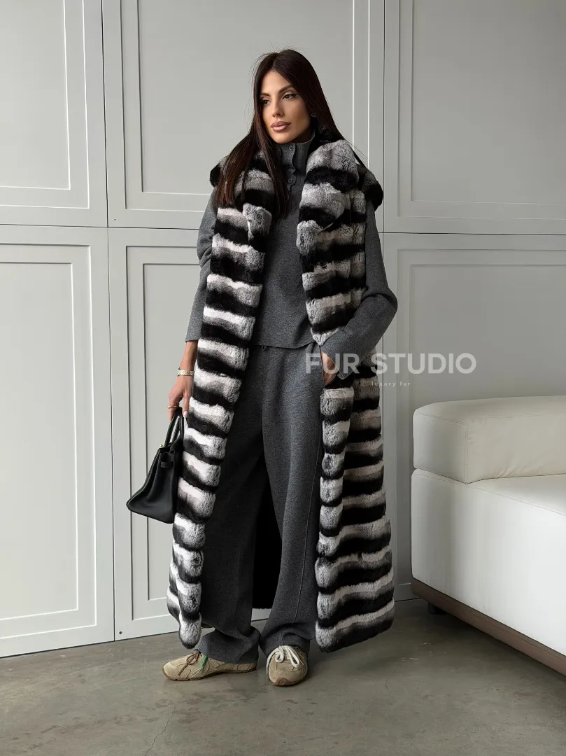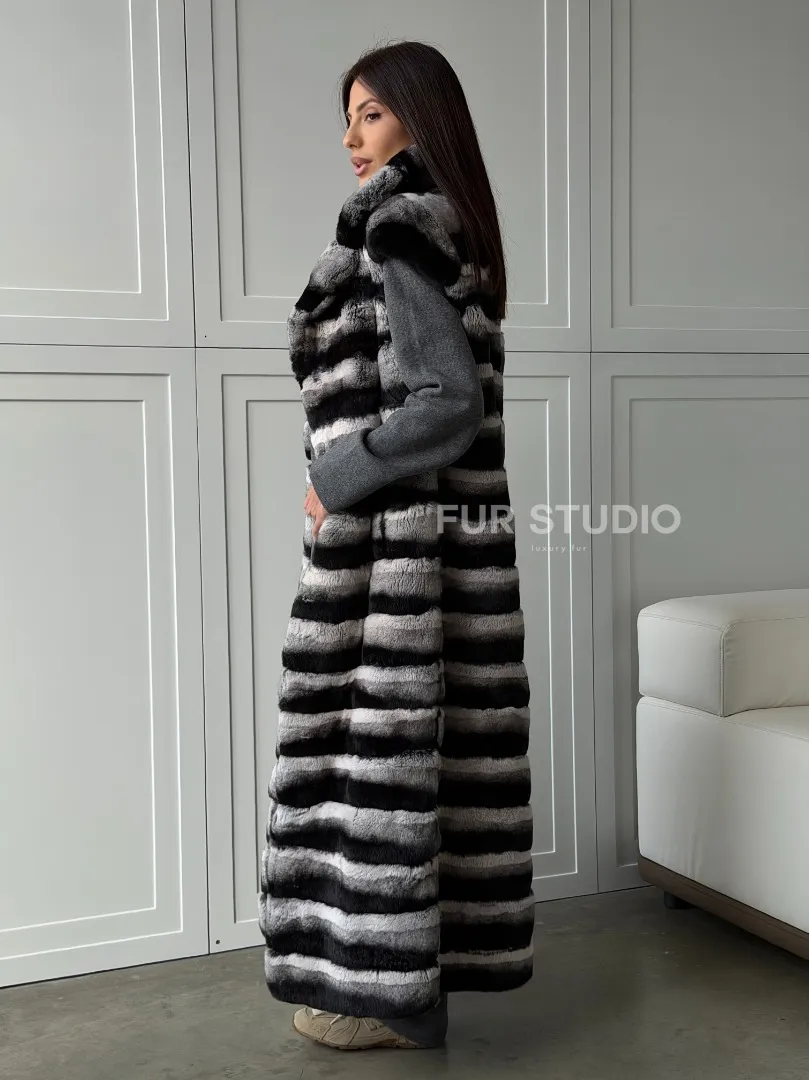 Жилет из меха орилага – отличный вариант для девушек, у кого ограничен бюджет. Изделие никогда не выйдет из моды. Удлиненный жилет зрительно увеличивает рост владелицы. Оригинальная расцветка подчеркнет роскошный оттенок волос и глаз хозяйки. Прямой крой сроет недостатки фигуры. Роскошный воротник позаботится о комфорте шеи и сделает акцент на ее грациозности.