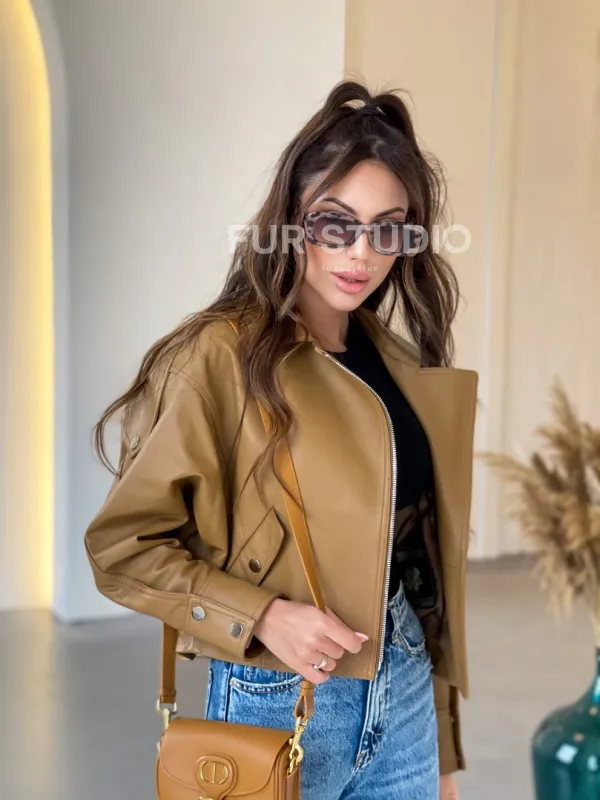Восхититесь элегантностью и несравненным комфортом с нашей эксклюзивной коллекцией кожаных изделий. Изготовленная из первоклассной натуральной кожи, Модная короткая женская курточка в цветет кэмел не только согреет вас в прохладные дни, но и подчеркнет ваш изысканный вкус. Уникальный дизайн и высокое качество делают наши представленные образцы идеальным выбором для утончённых образов.