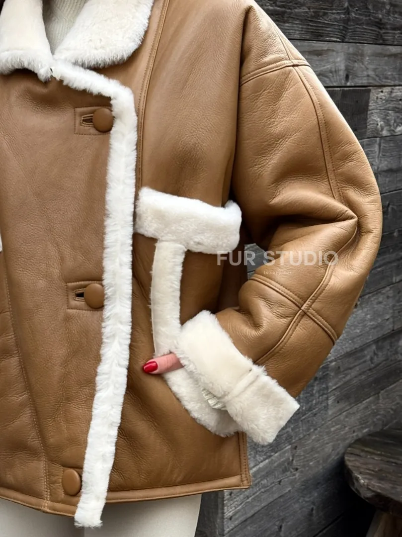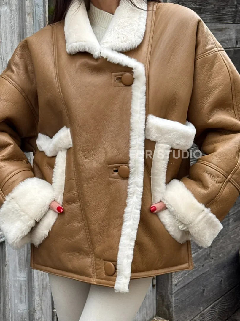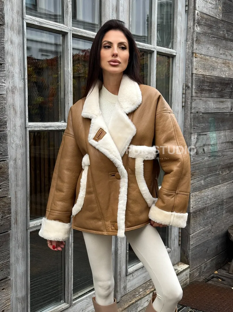 Модная куртка - дубленка в стиле «Oversize» на пуговицах и манжетами на рукавах доступна для покупки в нашем шоуруме Furs Studio в Москве, а также предлагается удобная доставка во все города России. Обогатите свой гардероб этой дубленкой, которая прослужит вам многие годы, добавив немного роскоши в ваш повседневный образ.